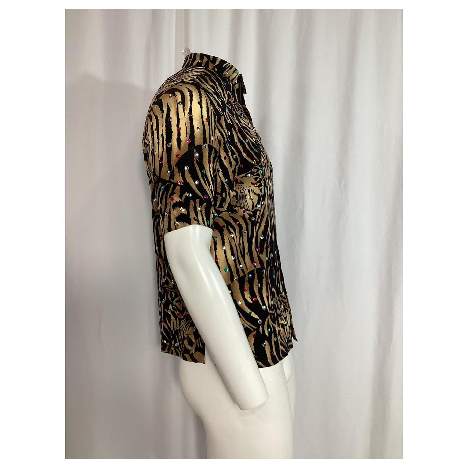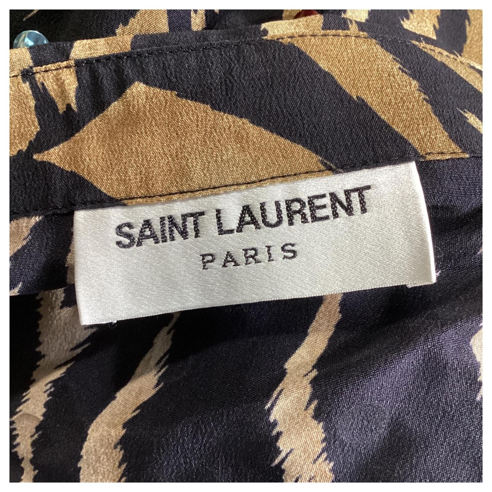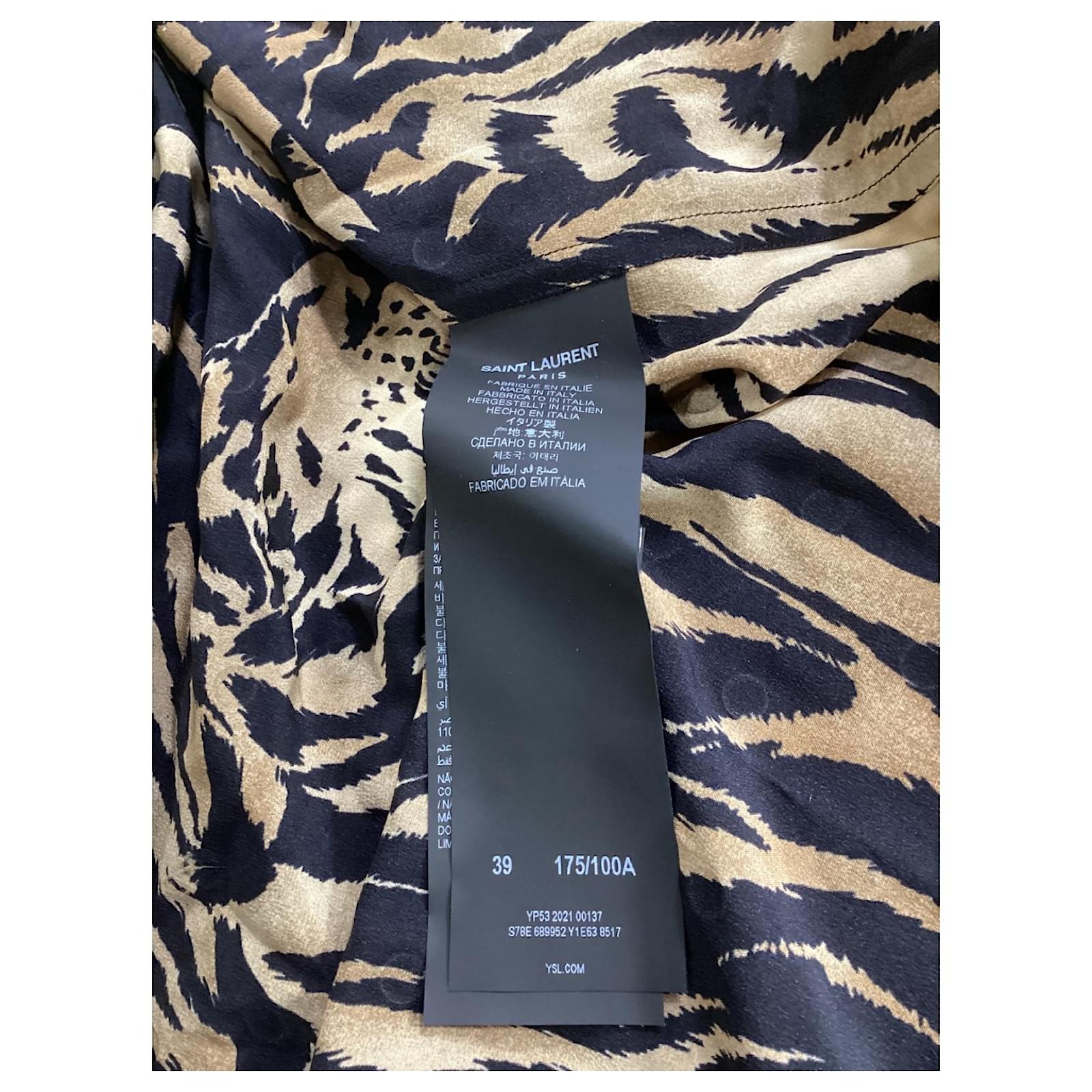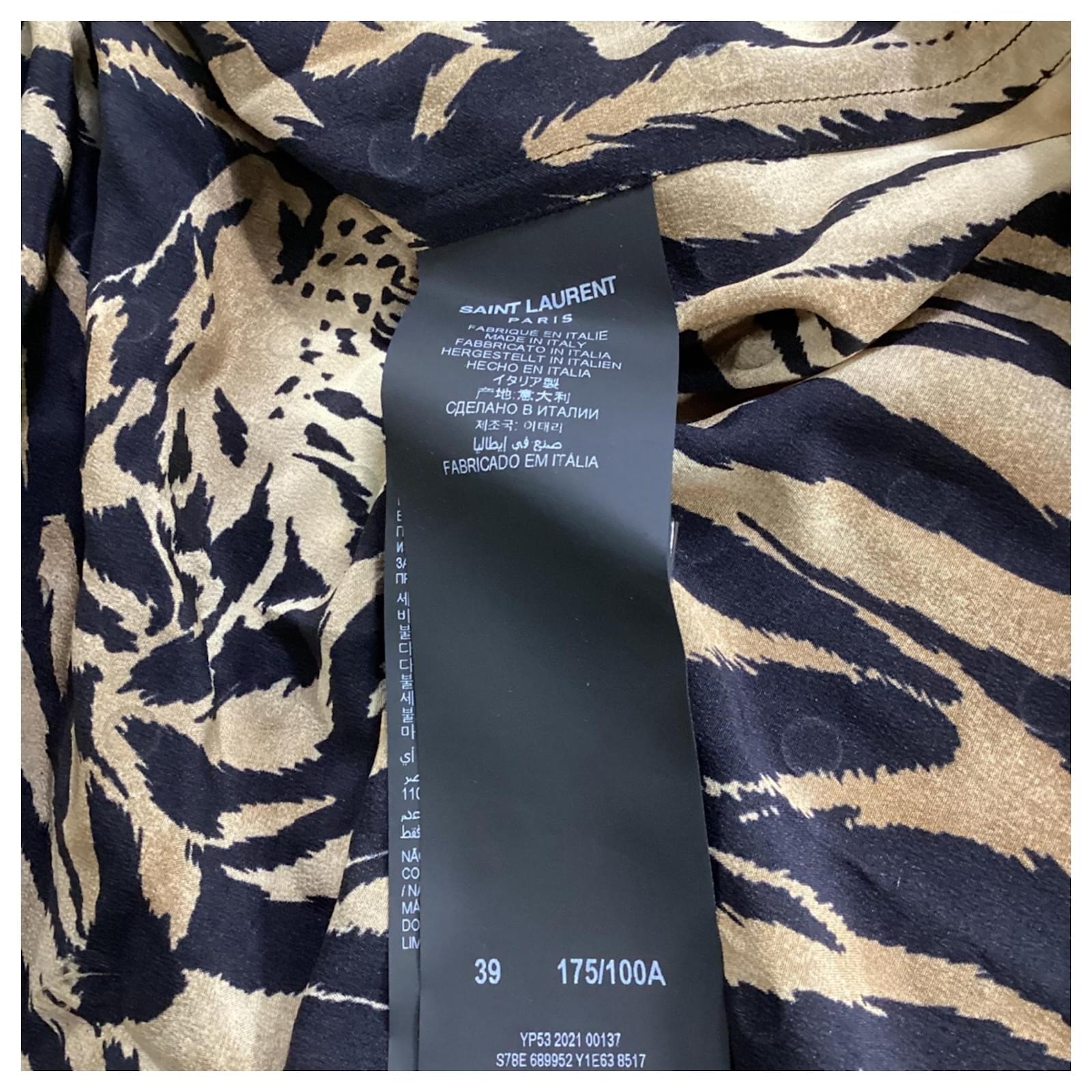Saint Laurent Tiger Print Embellished Shirt in Multicolor Silk Multiple colors