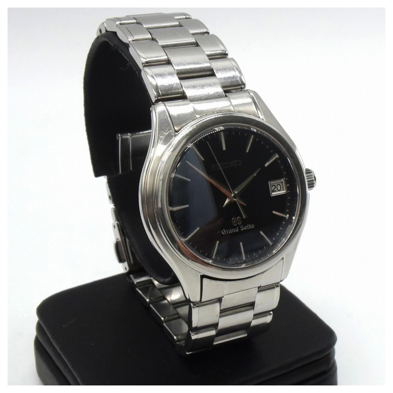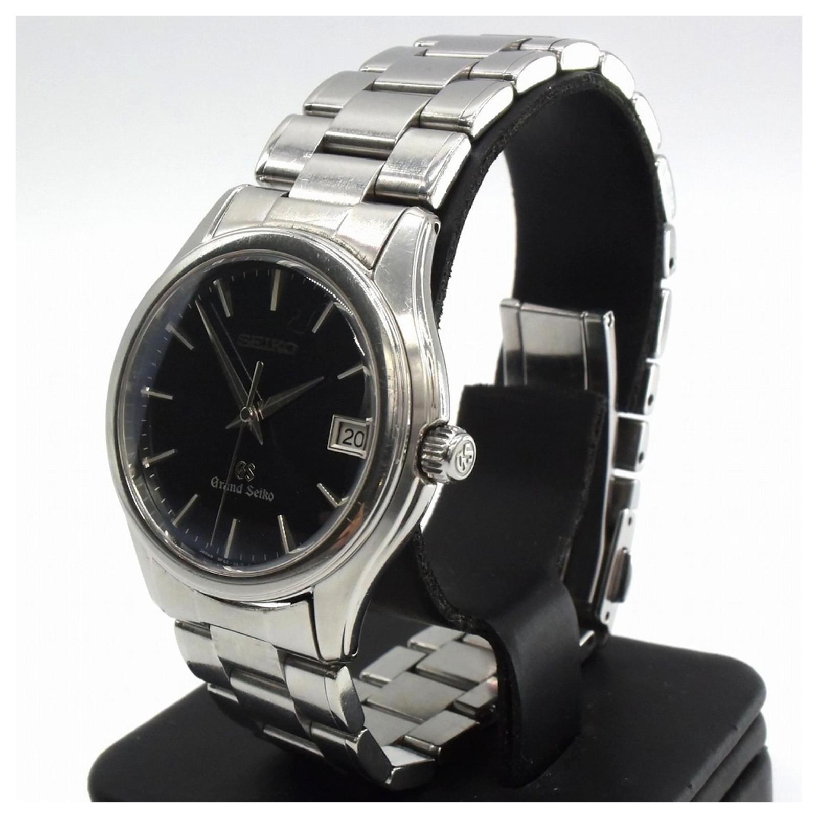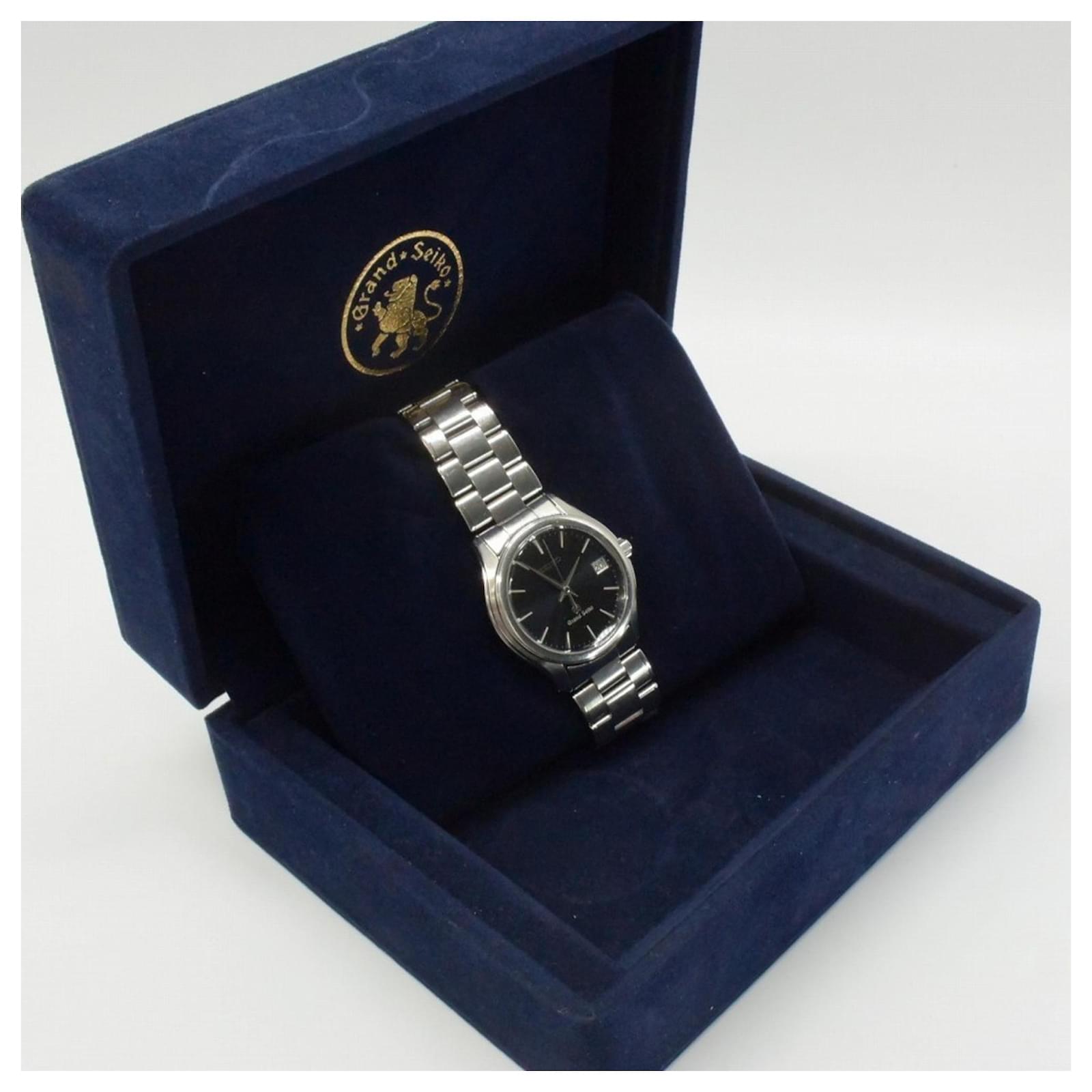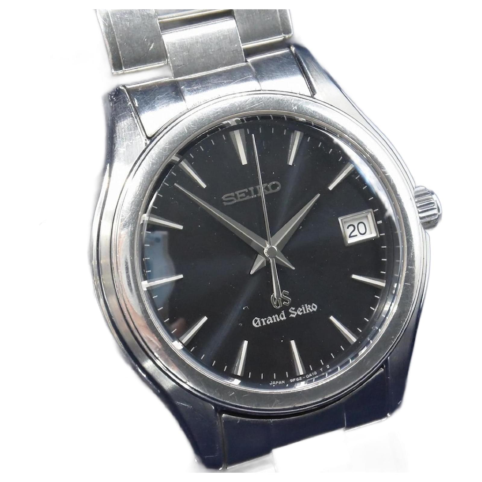 The Seiko Grand Seiko SBGX007/9F62-0A10 is a men's wristwatch crafted from stainless steel, featuring a silver case and an analog display with a black dial. This watch uses a quartz movement and includes a date function for added convenience.
