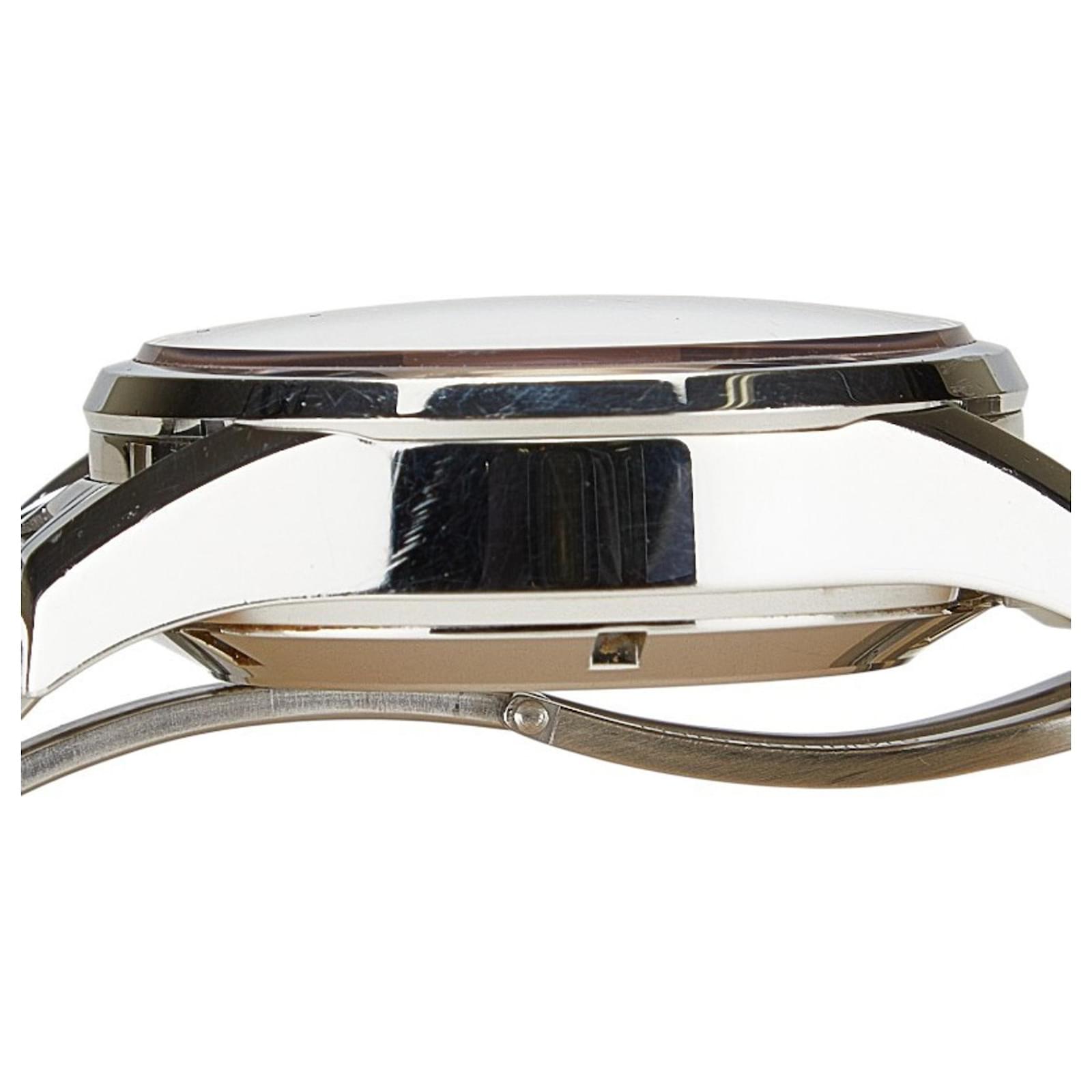 This watch is water-resistant up to 100 meters (328.08 feet) and includes functions such as a chronograph and date display. The item is classified as used but is in good condition, showing traces of usage with some scratches and dirt. It comes with a guarantee card, inner box, manual, and outer box. Potential buyers are encouraged to review the images for a clear understanding of the item's condition and included accessories.