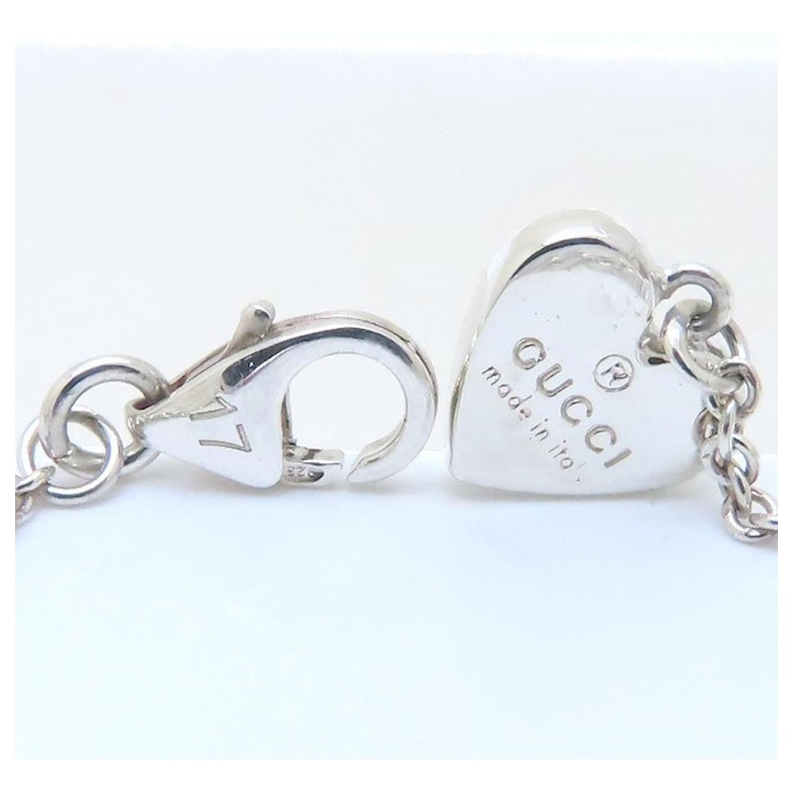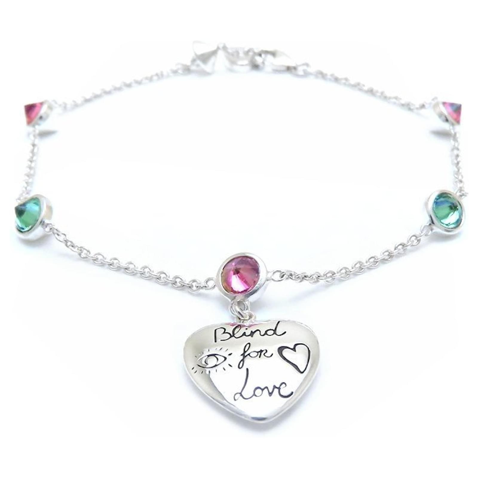 This GUCCI Blind for Love bracelet features a charm design crafted from Silver 925 and adorned with cubic zirconia stones. The bracelet measures between 18cm to 19.5cm (7.08'' to 7.67'') in length and weighs 7.2g (0.25oz).