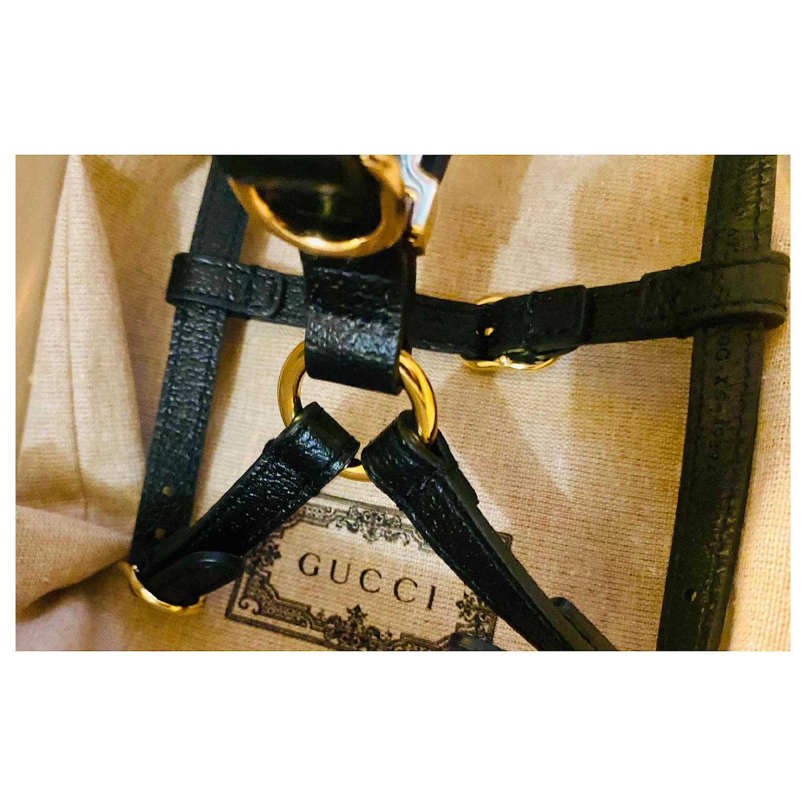 Magnificent Gucci HarnessMade in Italy100% Black GG LeatherSize XSDimensions: 14cm x 28cm AdjustableLike new as used only onceSold with its dust bag, as well as its original Gucci boxVery careful packagingFast and secure shipping
