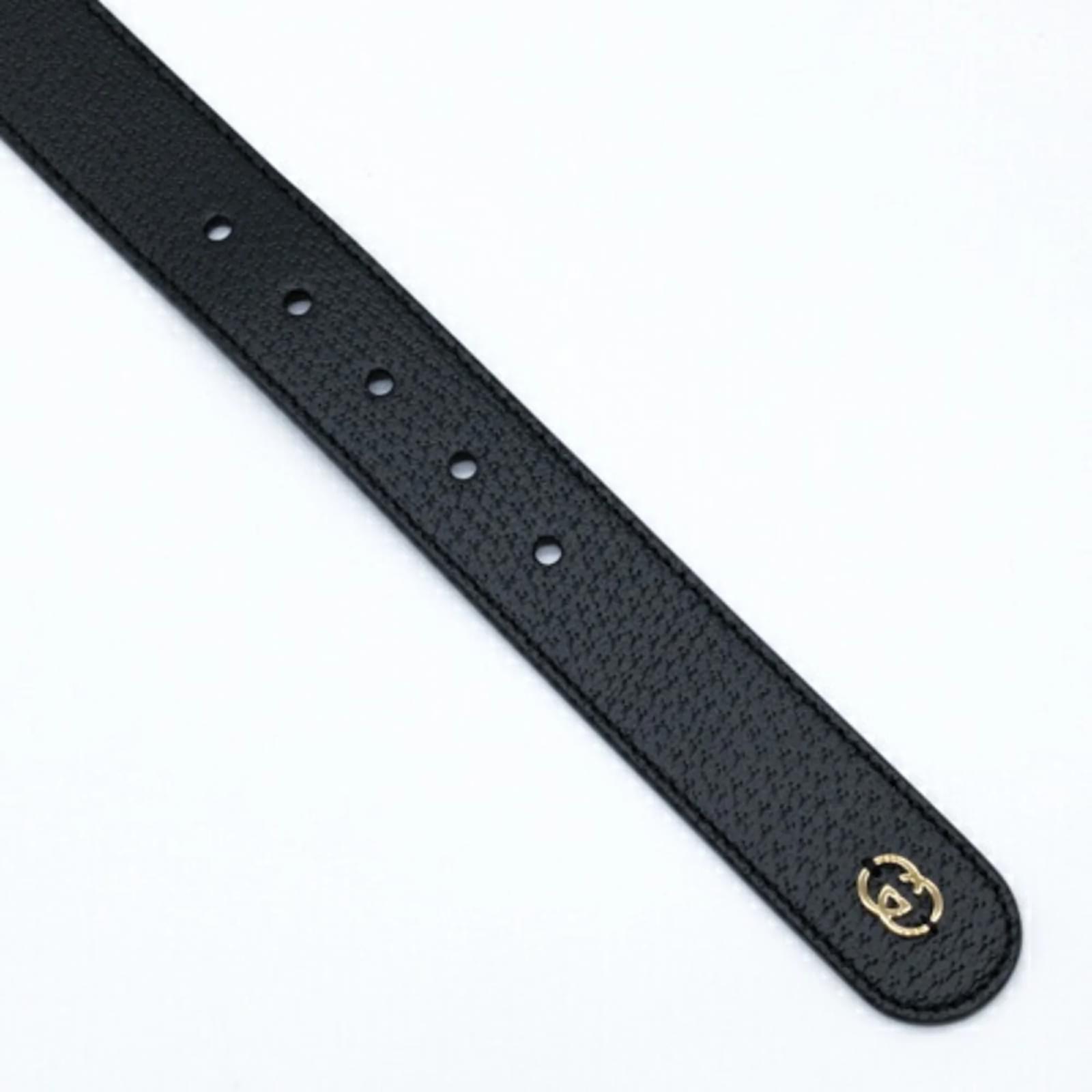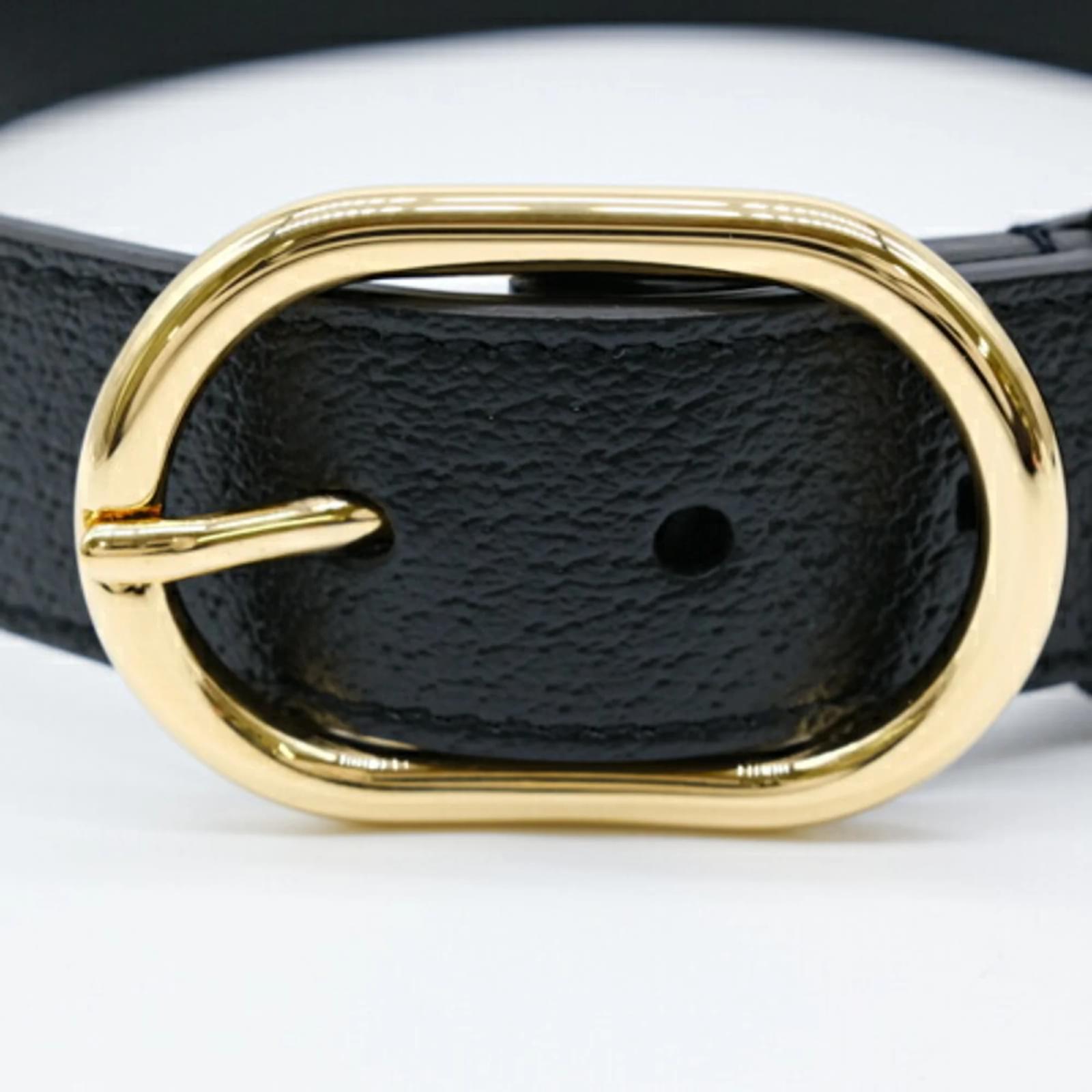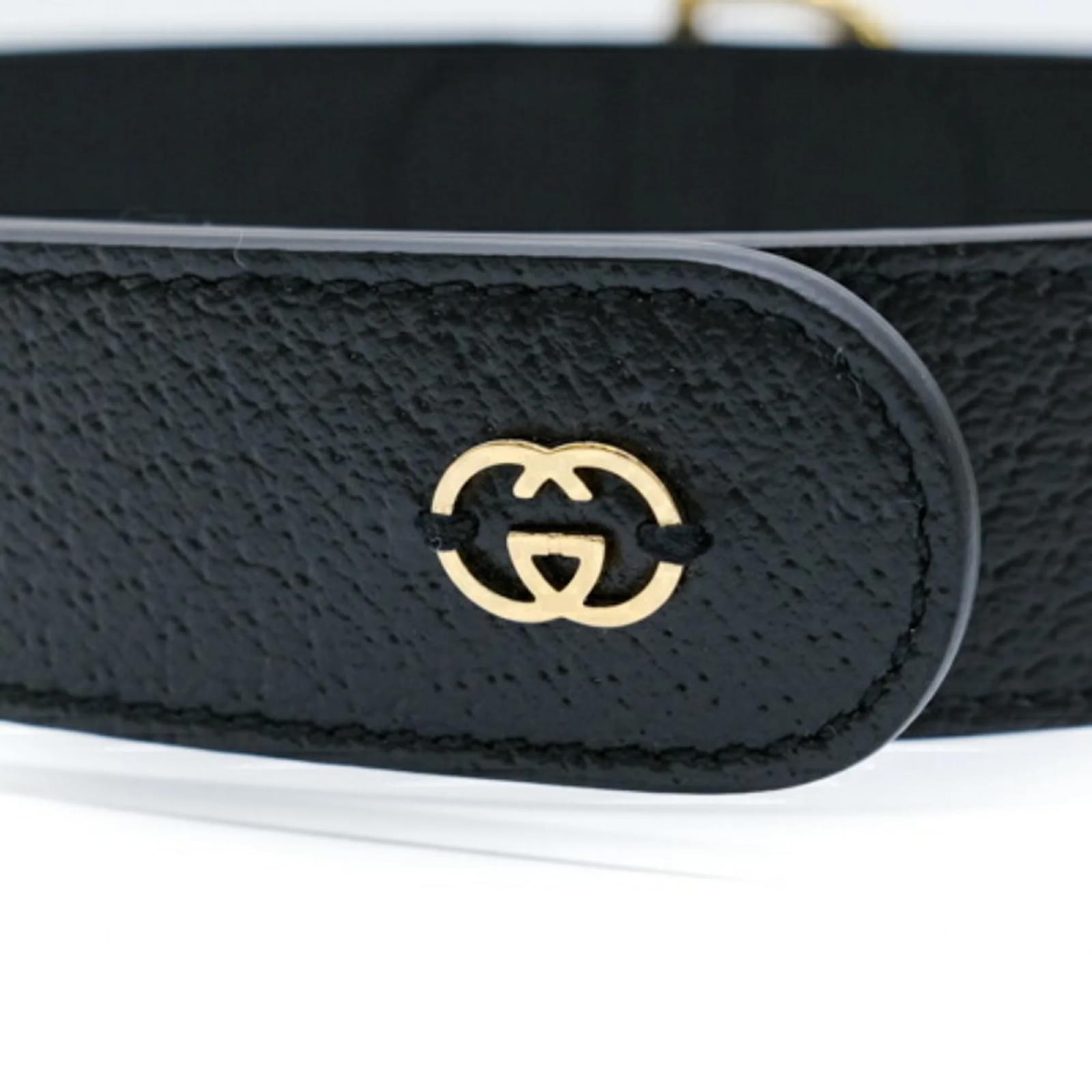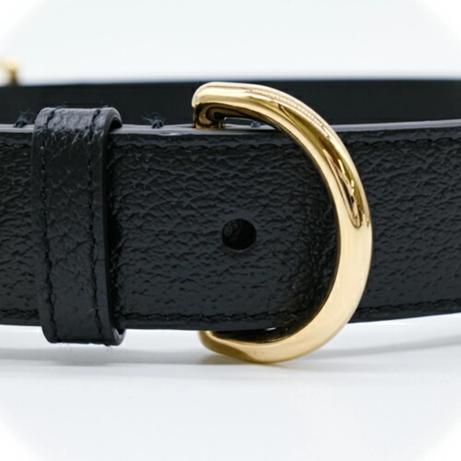 This Gucci Interlocking G Large Pet Dog Collar is designed for dogs and features a stylish black and gold color scheme. Made from leather, the collar measures between 48cm and 56cm (18.89'' - 22.04'') in length, making it suitable for various dog sizes. The item is in opened but never used condition, with insignificant traces of use, scratches, and dirt. It comes with a box and dust bag for storage. Before purchasing, it is recommended to refer to the images for the exact condition and included accessories.