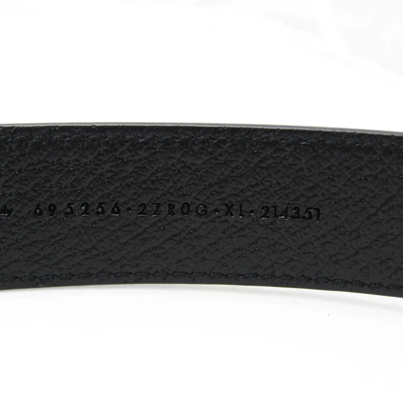 The Gucci Interlocking G 695256 dog collar is crafted from black leather, designed specifically for dogs. This collar features a width of 3 cm (1.18 inches) and is available in an XL size, with an adjustable length ranging from 56 cm to 64 cm (22.04 inches to 25.19 inches).