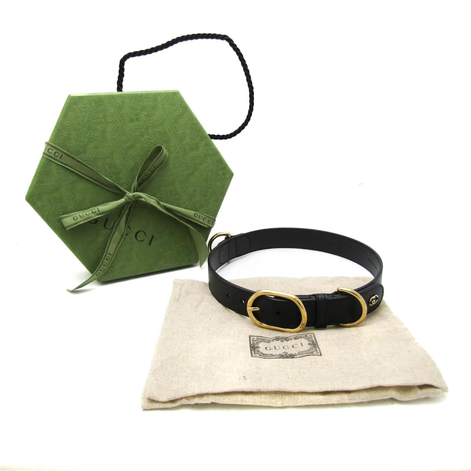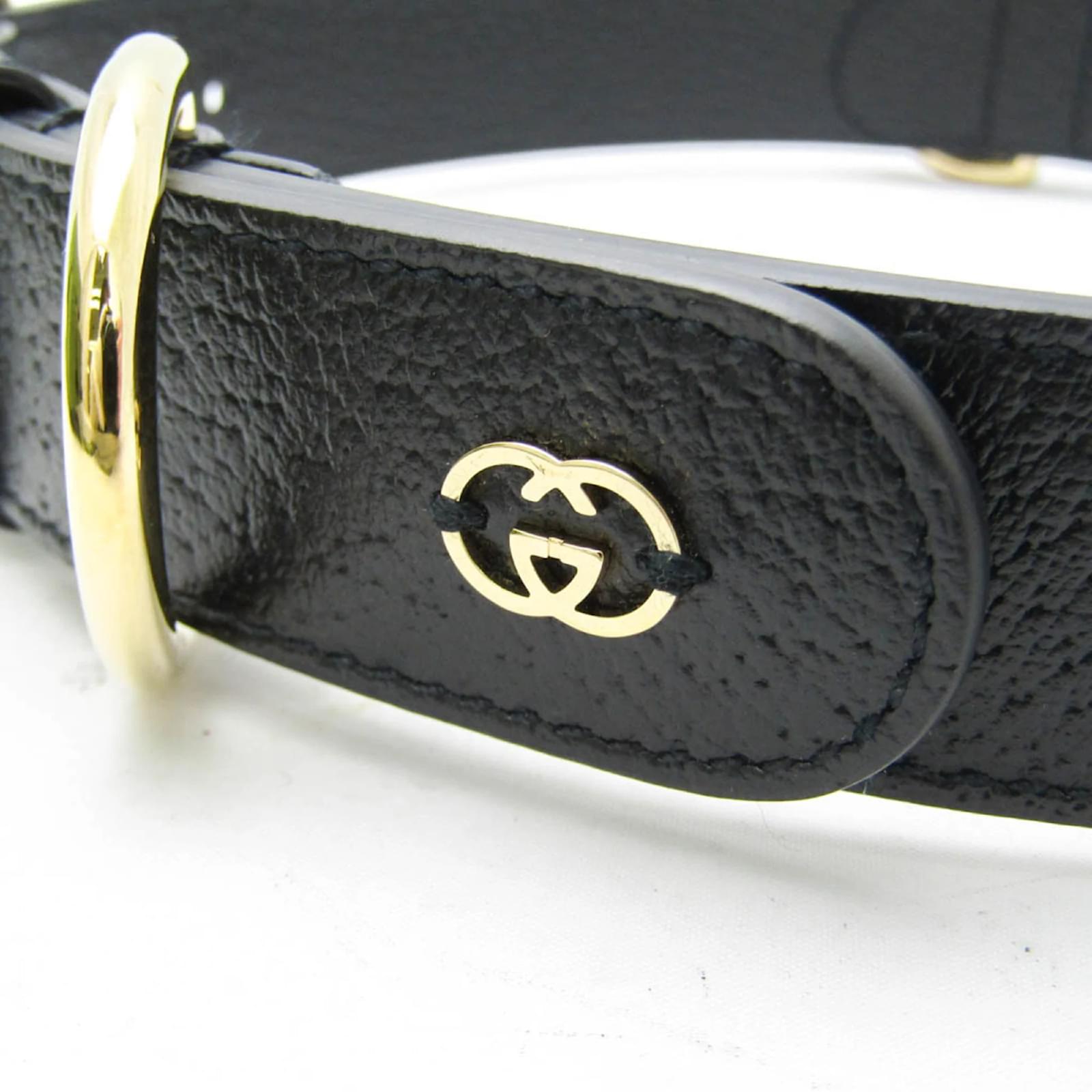Gucci Interlocking G Leather Dog Collar Black