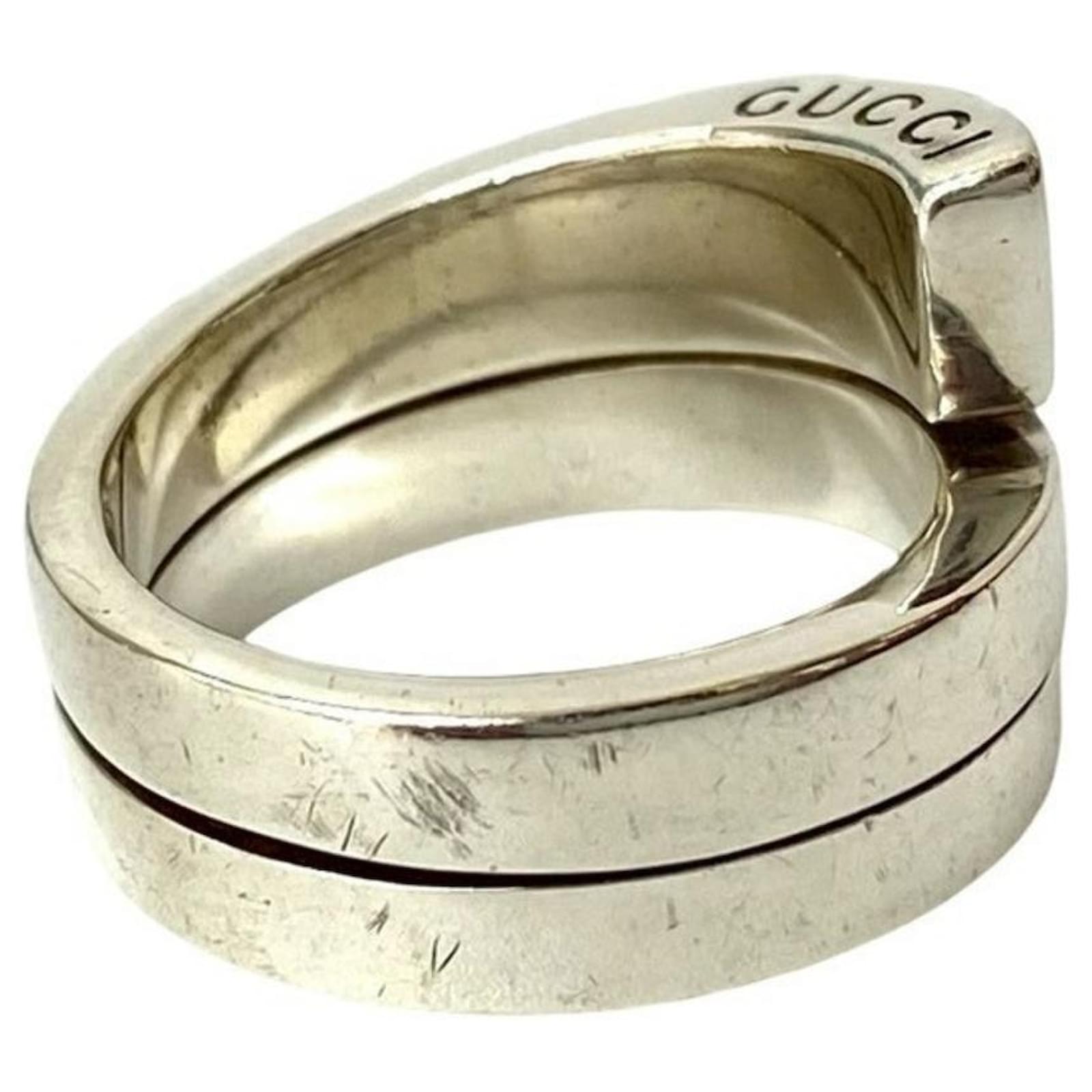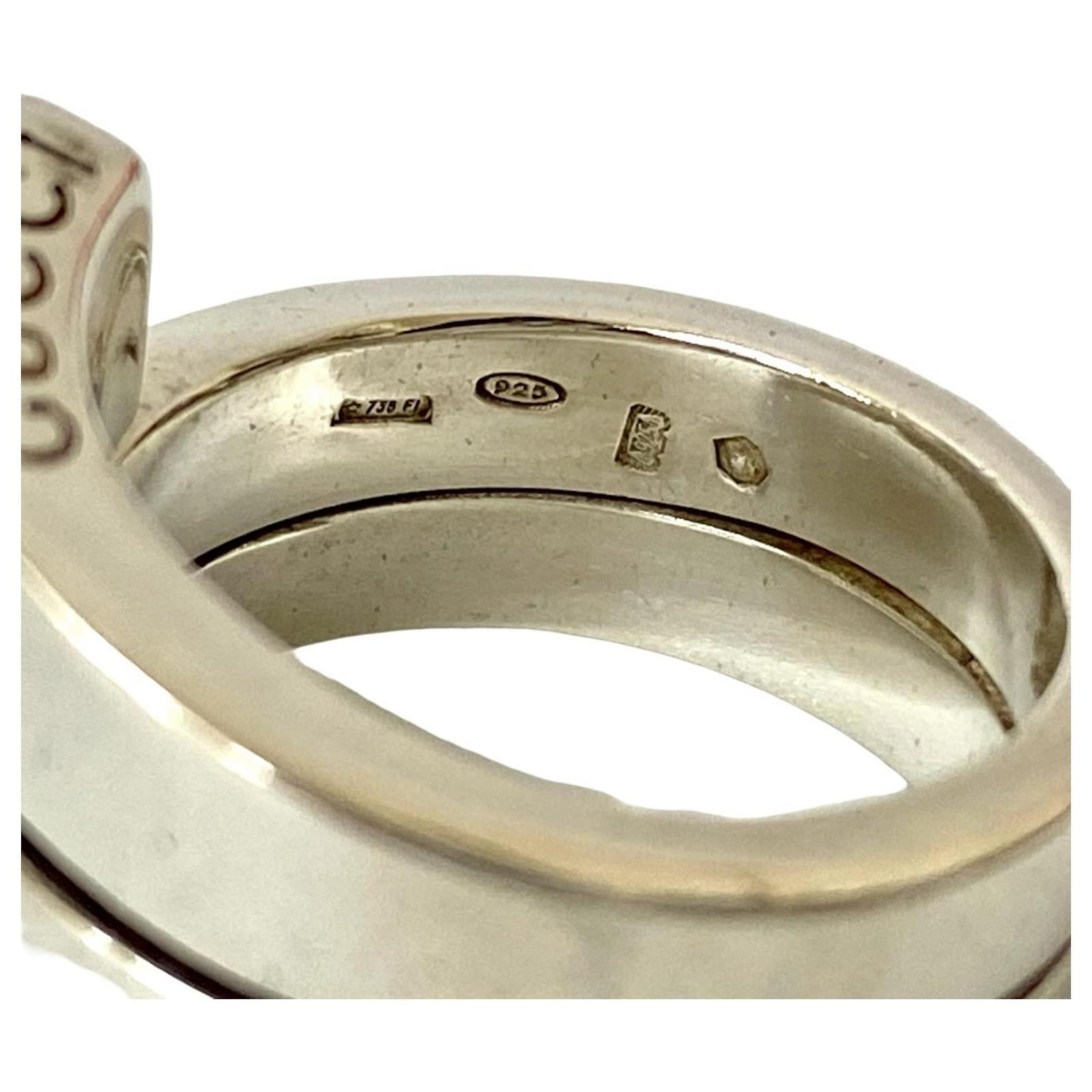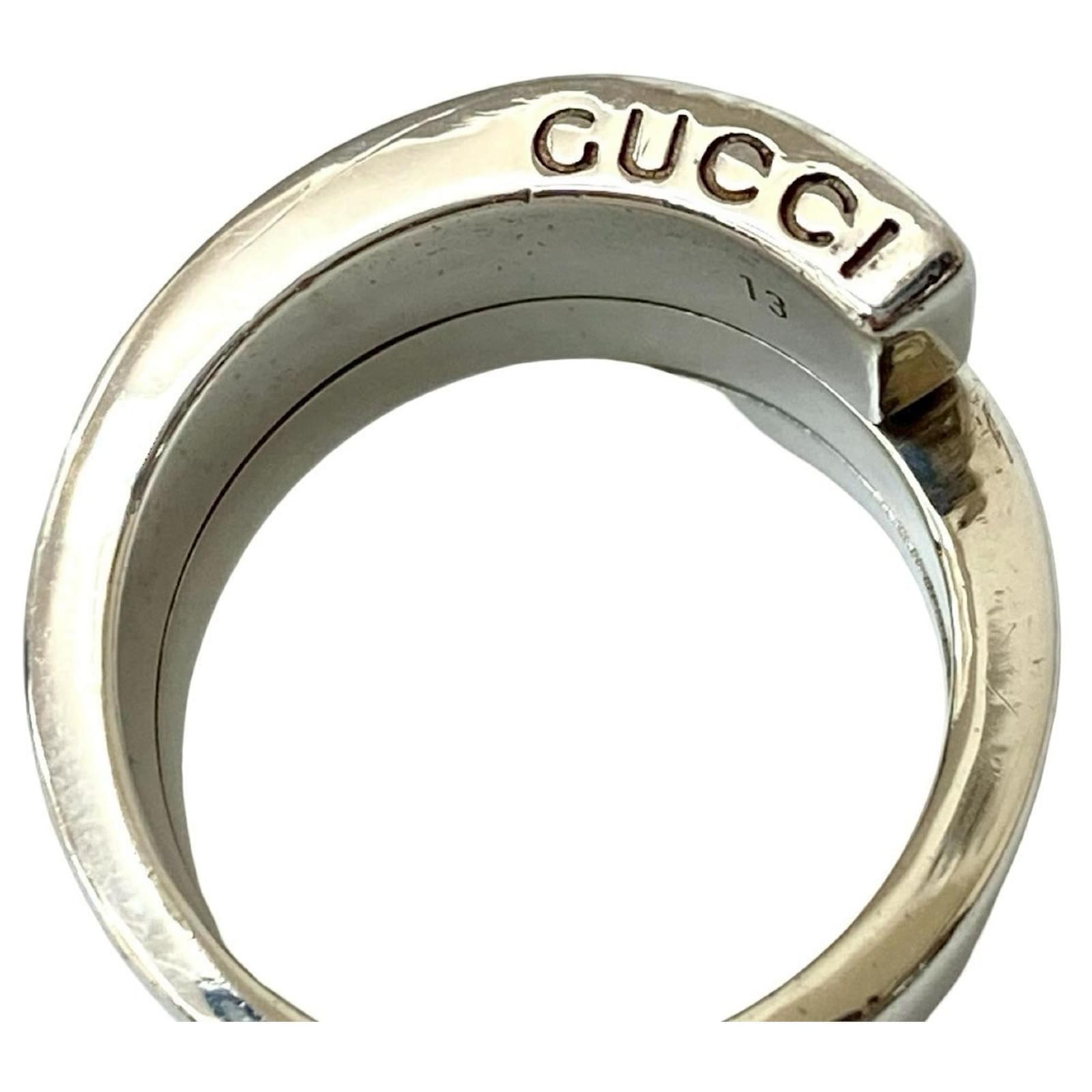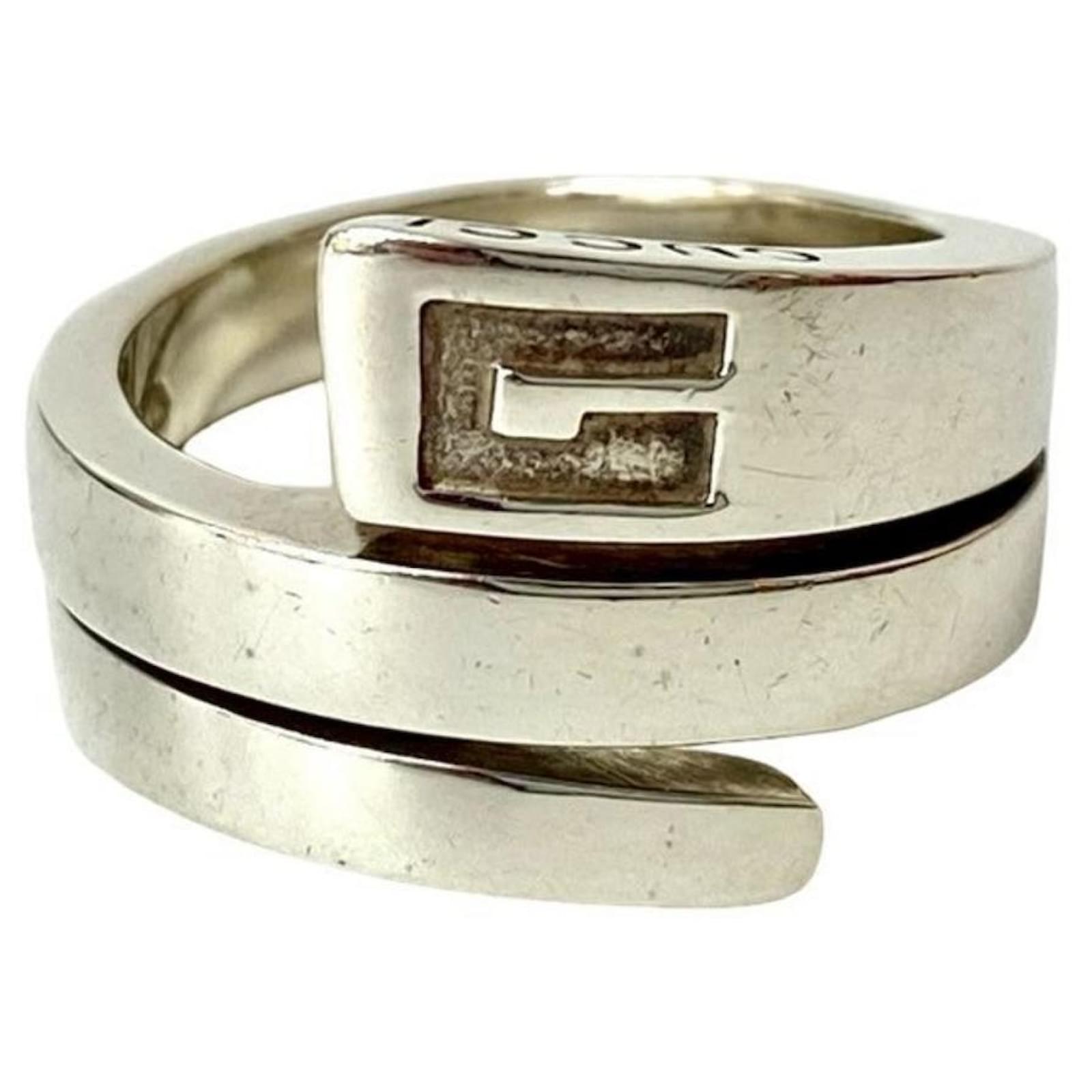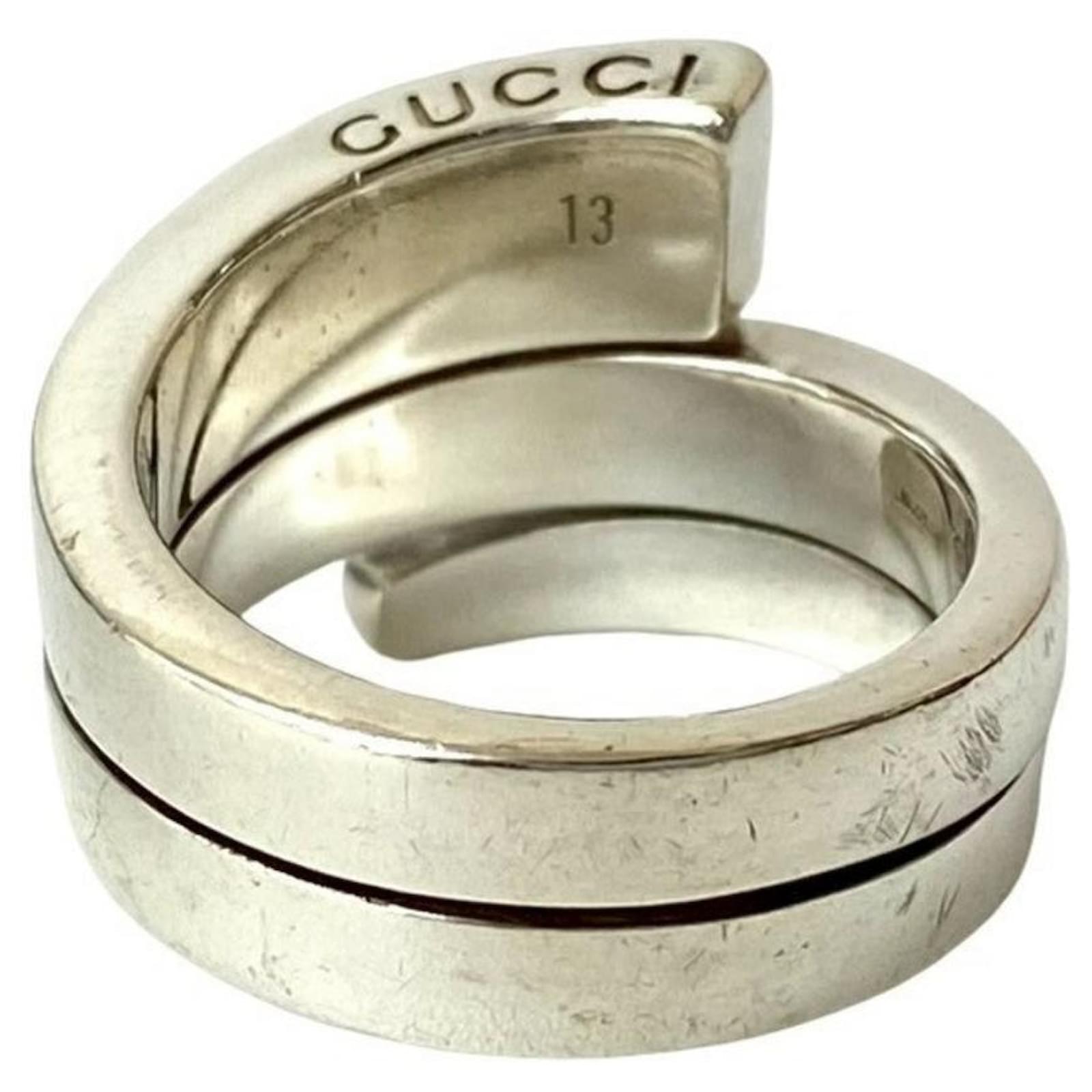 This Gucci Spiral Ring is crafted from 925 sterling silver, presenting a sleek and modern design suitable for men's fashion. The ring is available in a Japanese size 12, which corresponds to a US size 6.5.