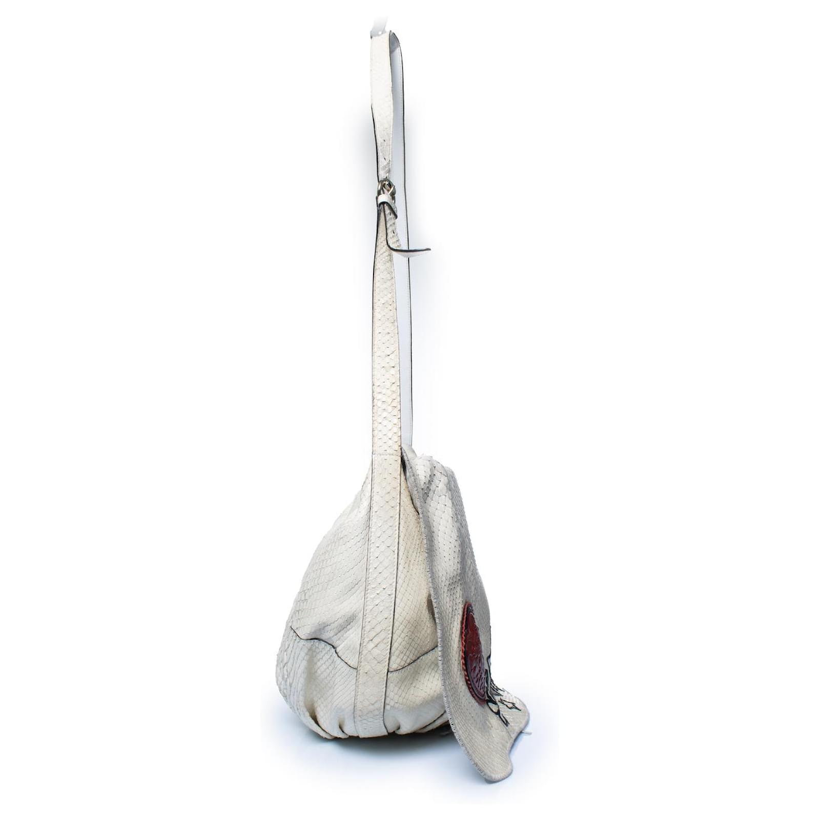 CONDITION: signs of wearMEASUREMENTS: height 27 cm, width 35 cm, depth 11 cm, length strap 90 - 120 cmMATERIAL: python leatherCOLOR: ecruPRODUCT LOCATION: the NetherlandsPRODUCT NUMBER: 9698
