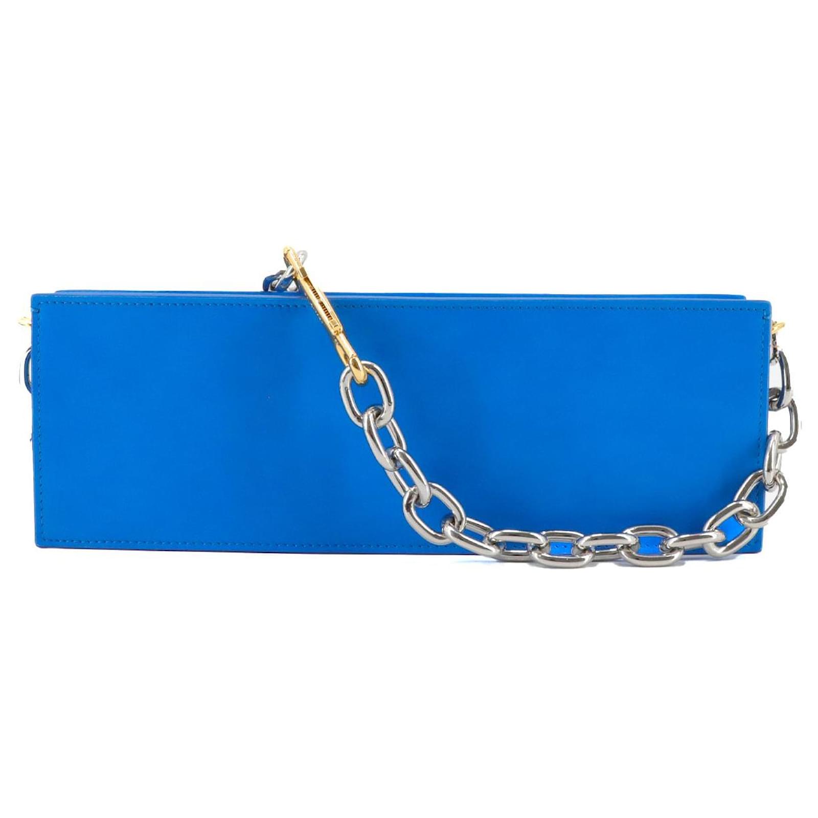 Model: CiuciuMaterial: LeatherColor: BlueJewelry Color: Silver | GoldDimensions: 30cm x 10cm x 4cmBeige canvas liningRemovable shoulder strap
