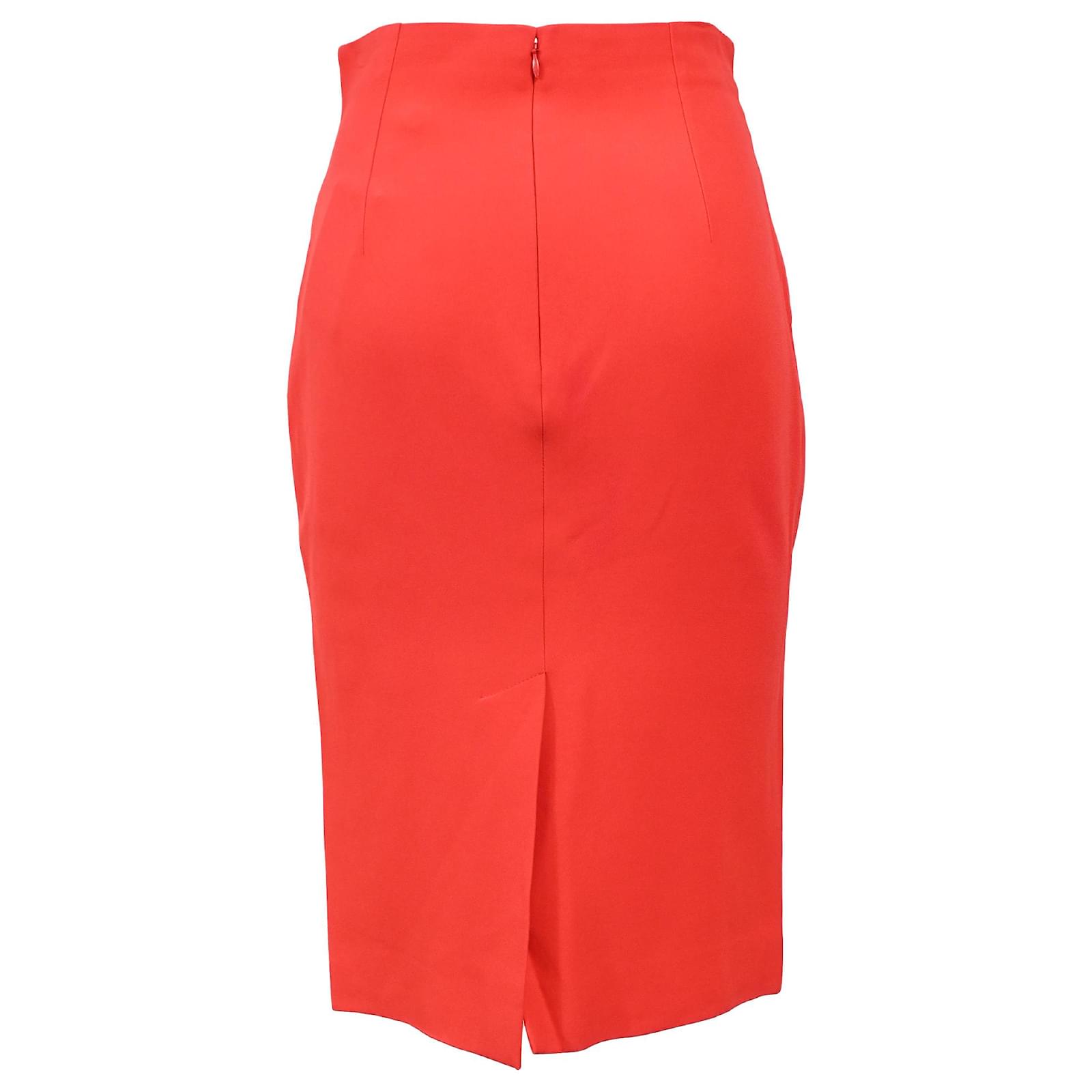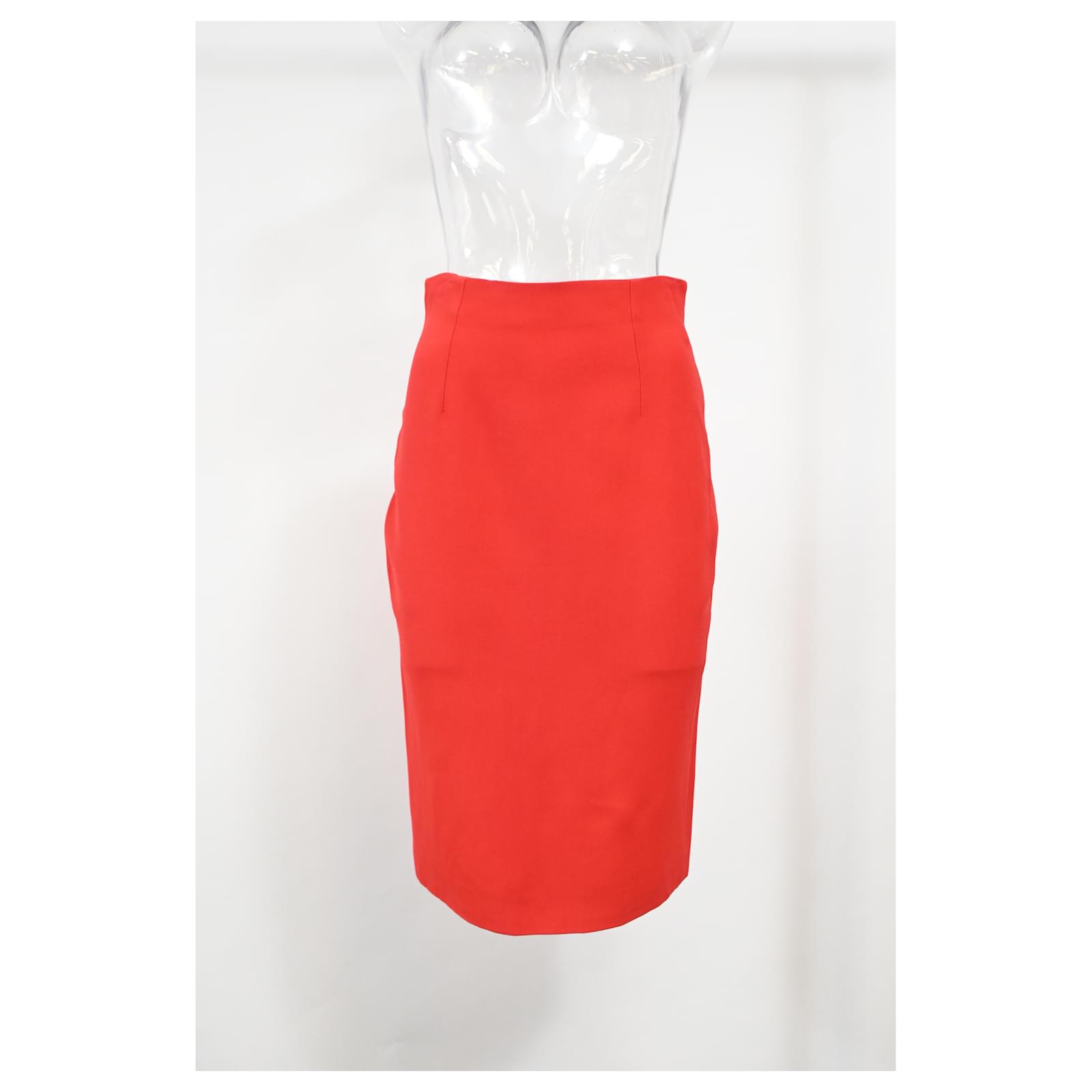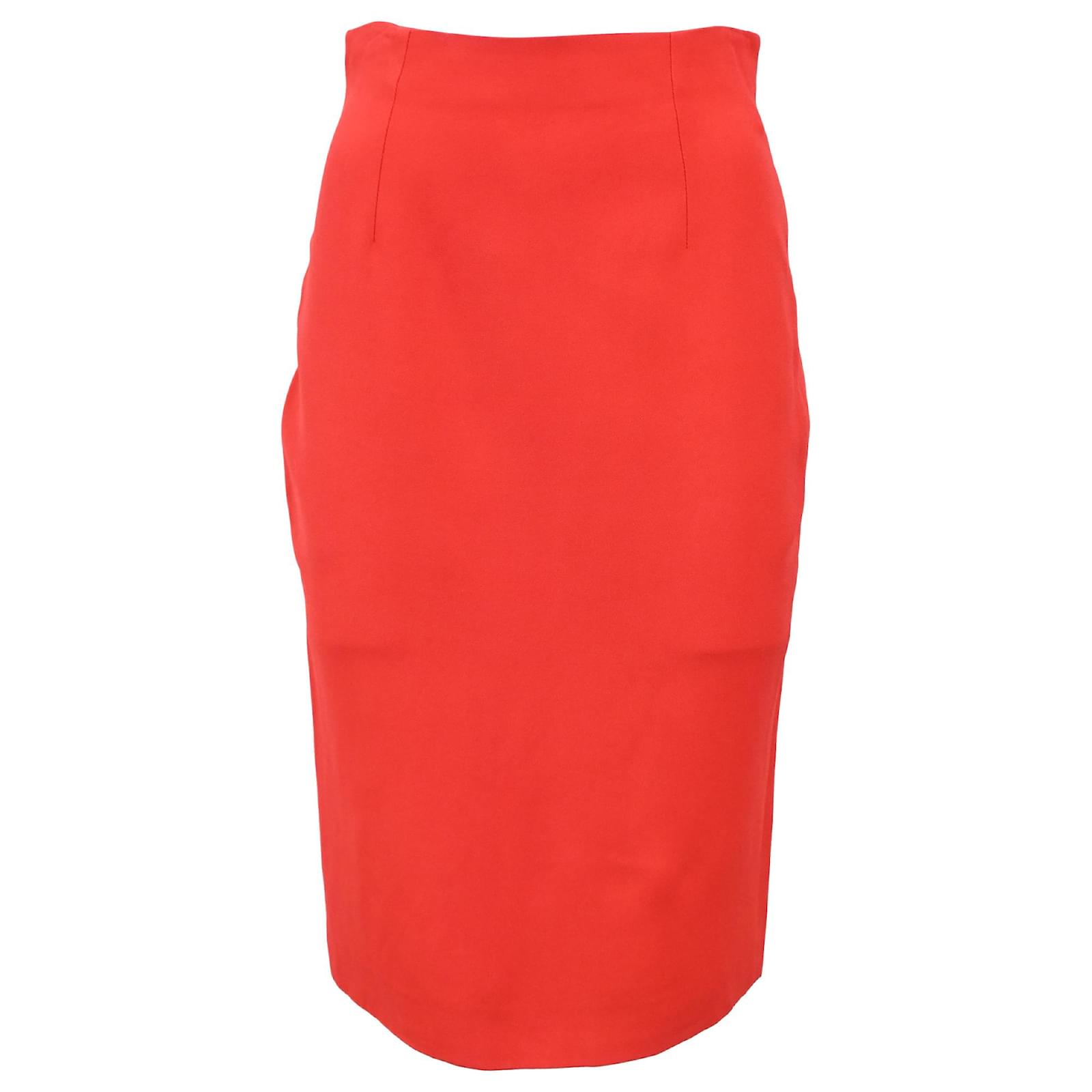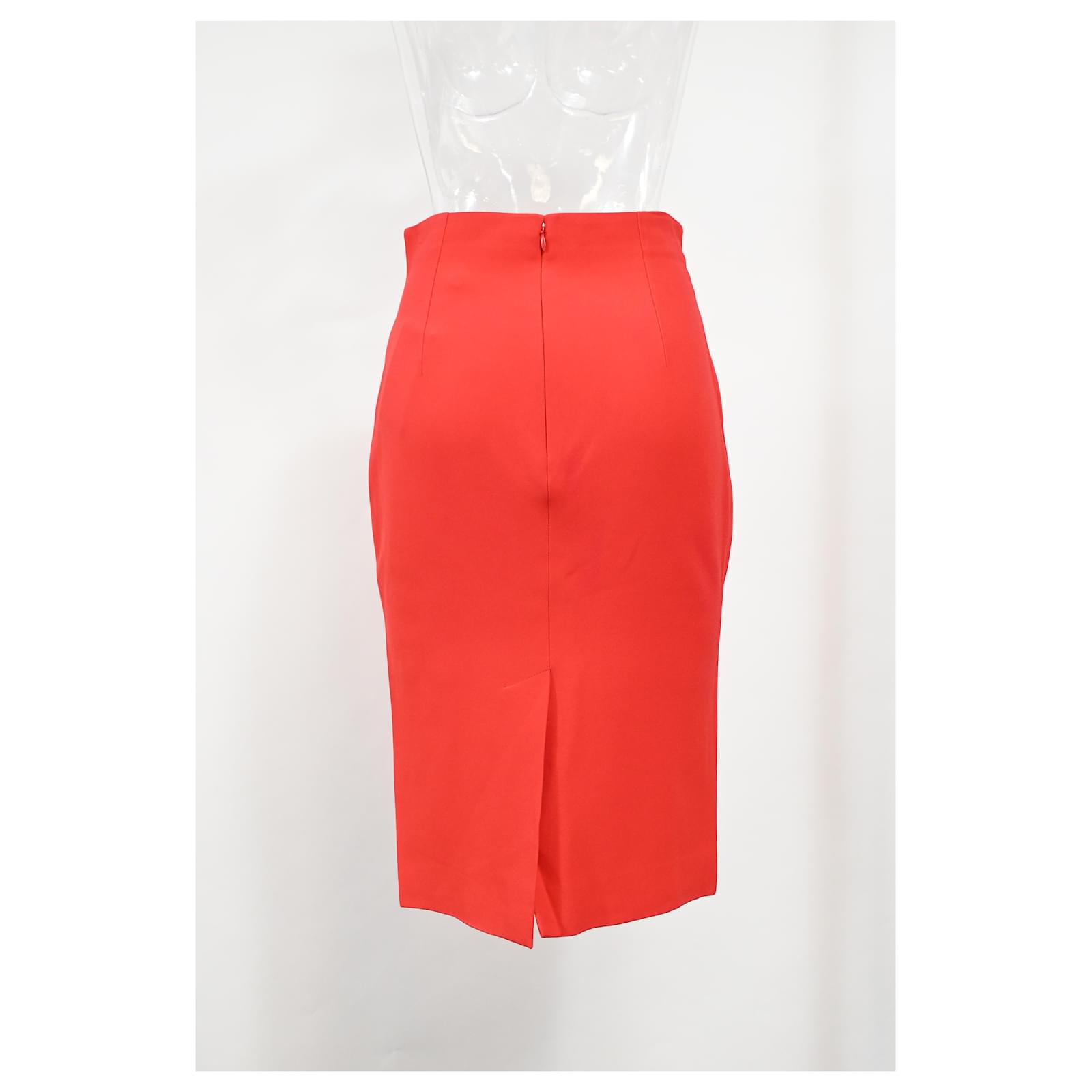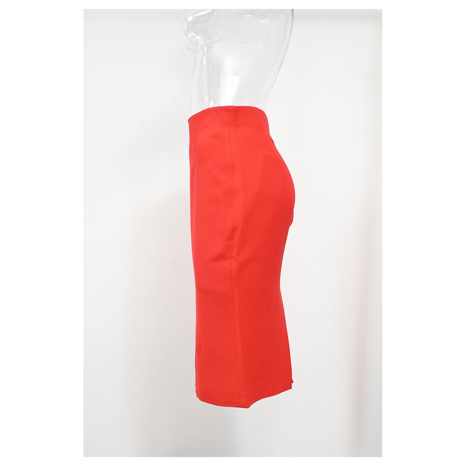 Exude bold sophistication with the Alexander McQueen Midi Pencil Skirt in red wool. This stunning skirt is crafted from high-quality wool, offering both comfort and a structured fit that enhances your natural shape. The pencil silhouette hugs the body, creating a sleek and streamlined profile, while the midi length adds a timeless elegance. The striking red hue adds a vibrant pop of color, making it a standout piece for any occasion. Perfect for both office and evening wear, this skirt can be paired with a tailored blouse, a fitted sweater, or a chic jacket for a sophisticated look that commands attention.
