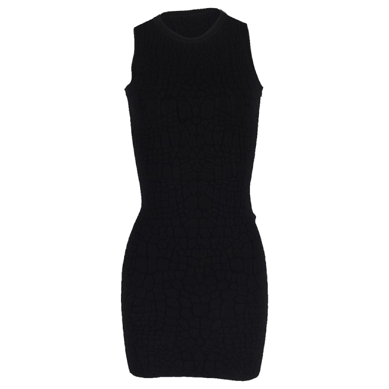 Elevate your evening ensemble with the Alexander McQueen Mini Dress in Black Rayon, a flawless embodiment of modern sophistication and timeless allure. The sleeveless, bodycon design exudes confidence and grace, while the luxurious black textured material lends an air of understated elegance to this iconic piece, making it a must-have for any fashion aficionado.