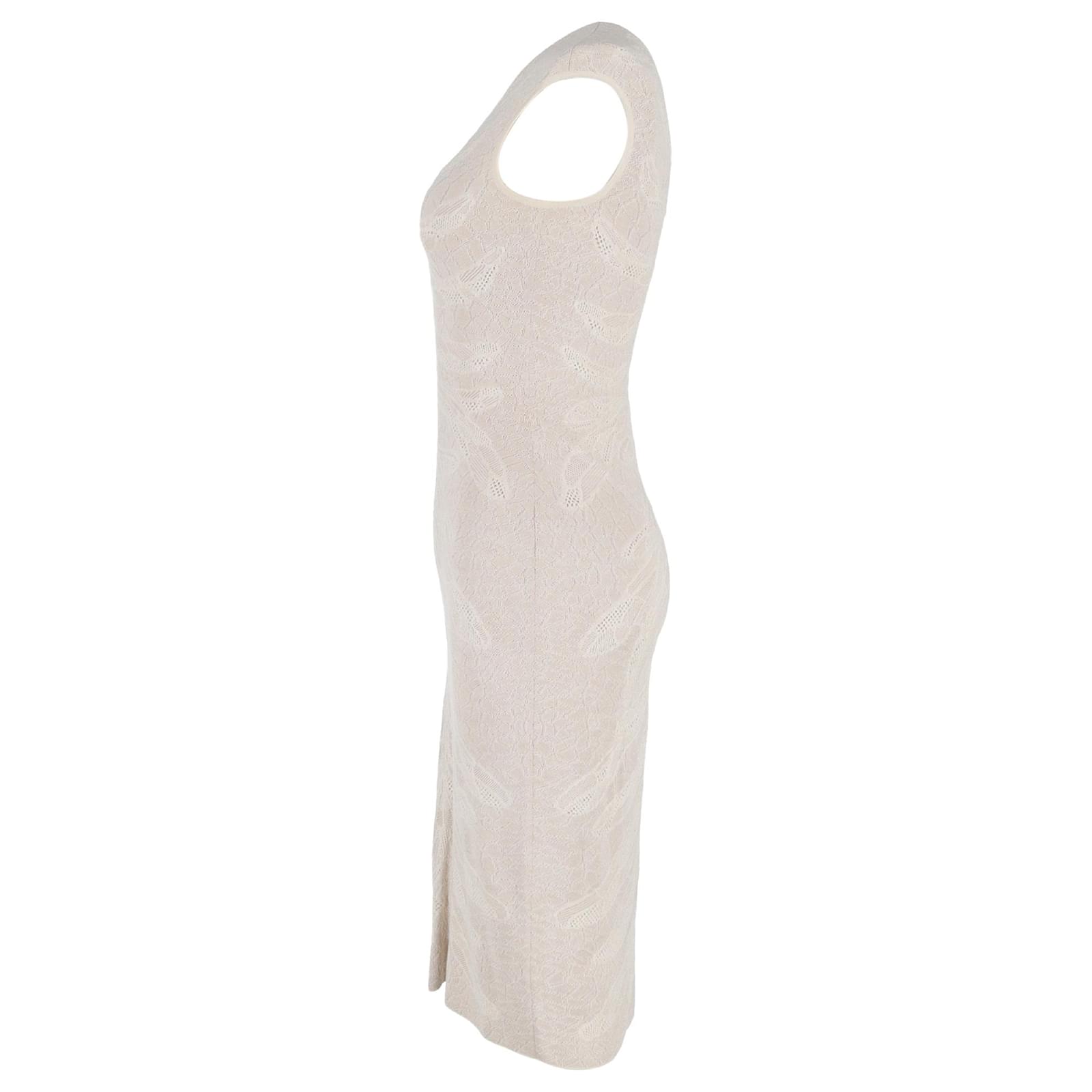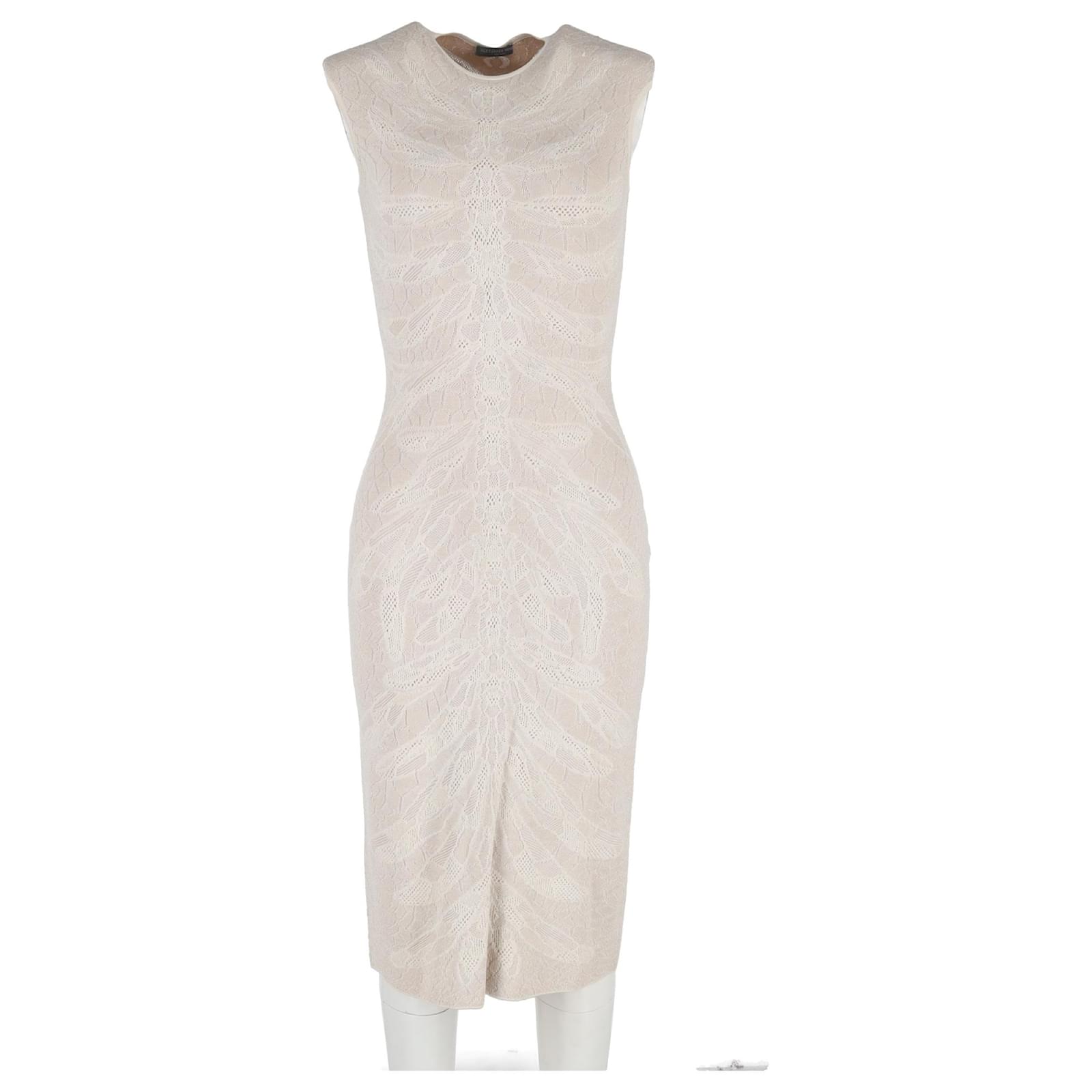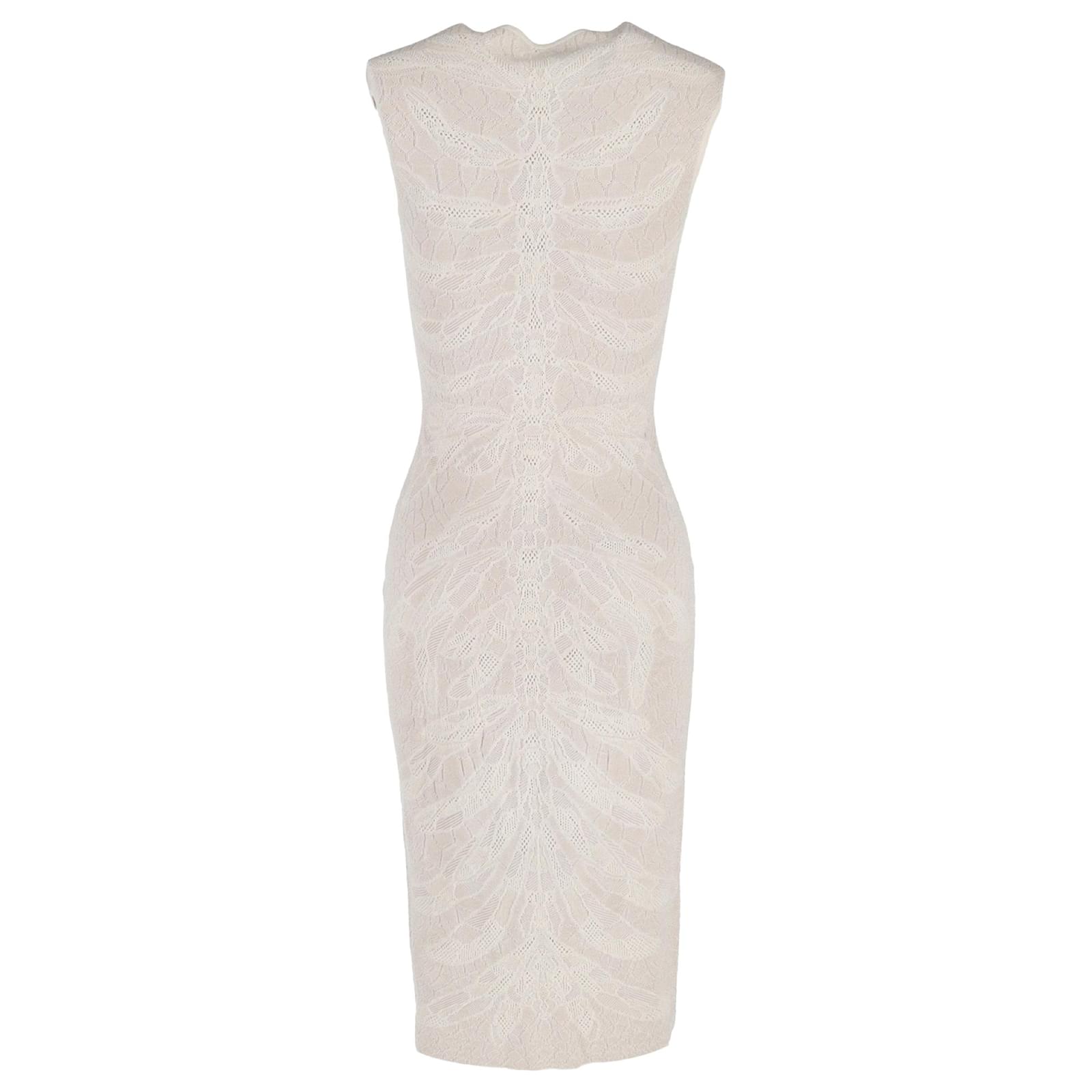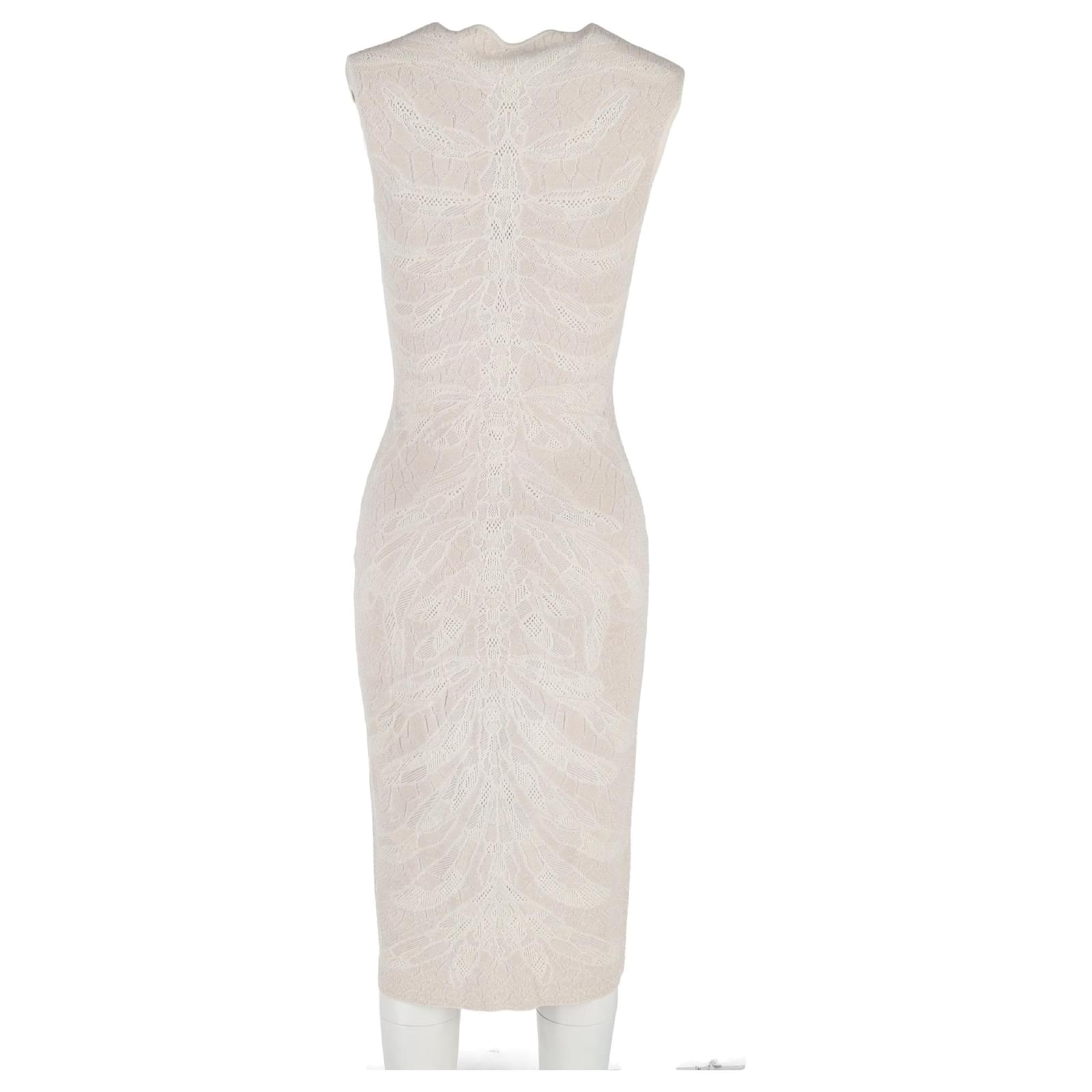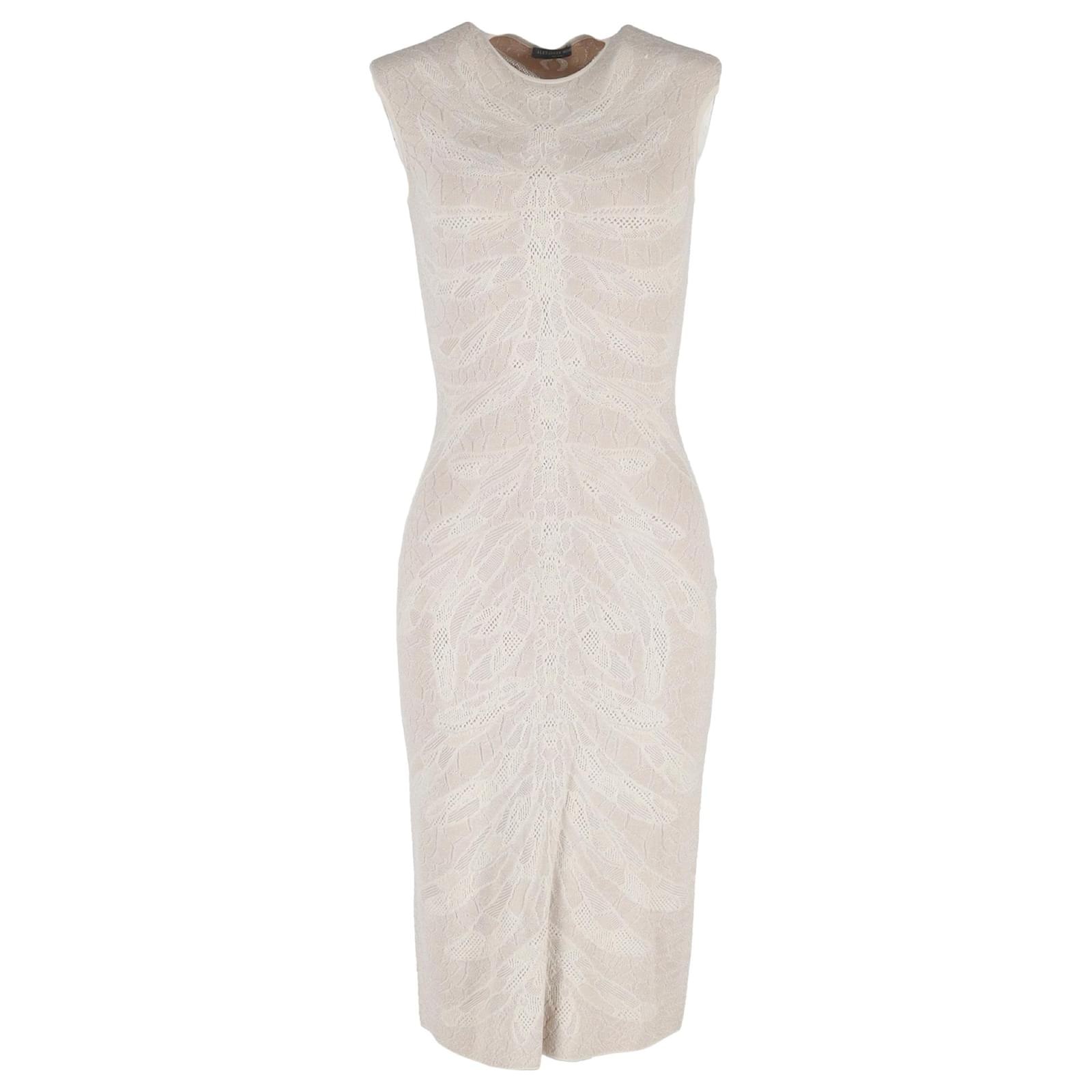 Alexander McQueen Patterned Knit Midi Dress in Ivory Wool