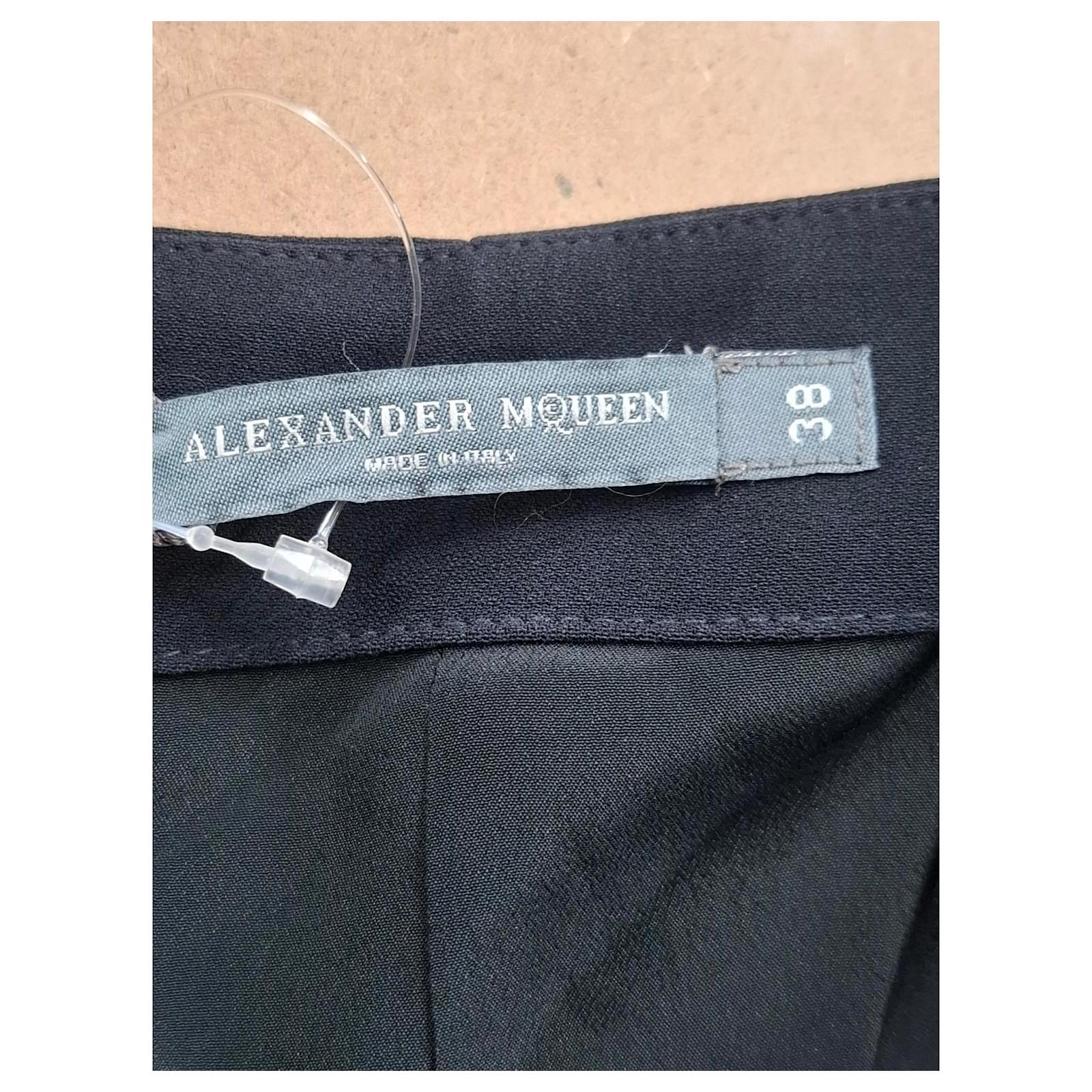 The Alexander McQueen Pencil Skirt in black polyester combines sharp tailoring with modern ease. Designed to flatter, it features a streamlined silhouette with a back slit for ease of movement and subtle allure. This timeless piece is perfect for elevating your workwear or evening look with a touch of refined edge.