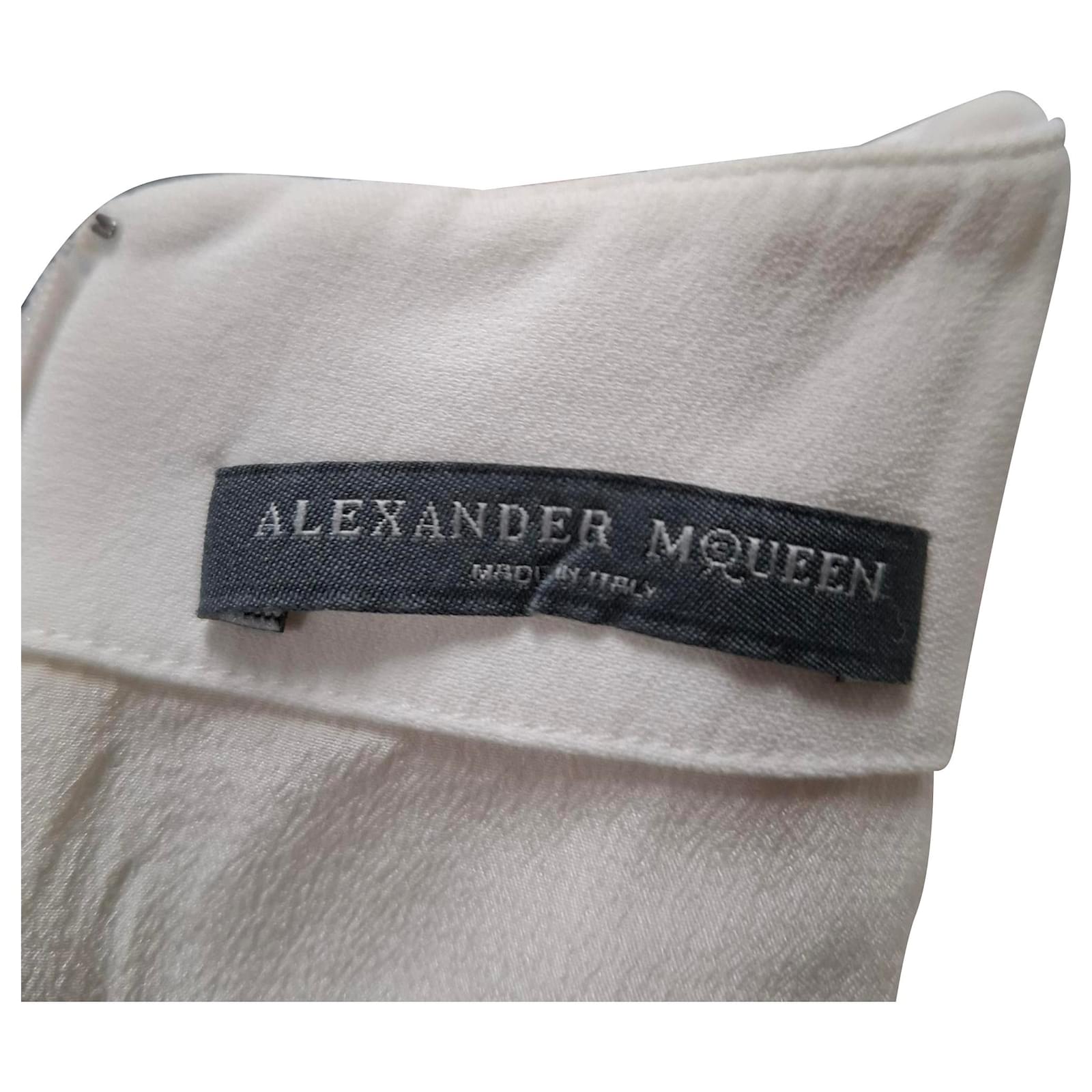 Alexander McQueen Sleeveless Mini Dress in Cream Polyester White