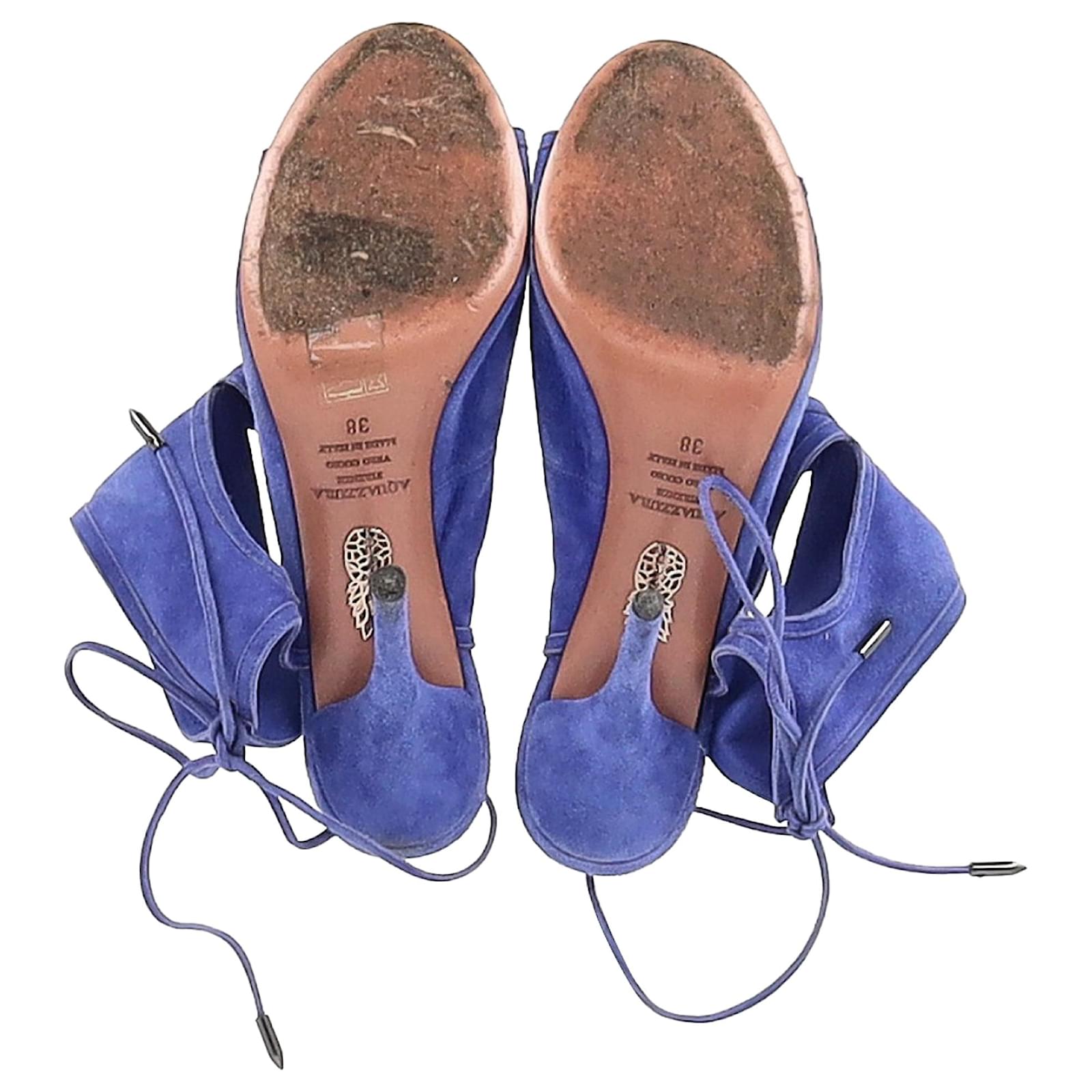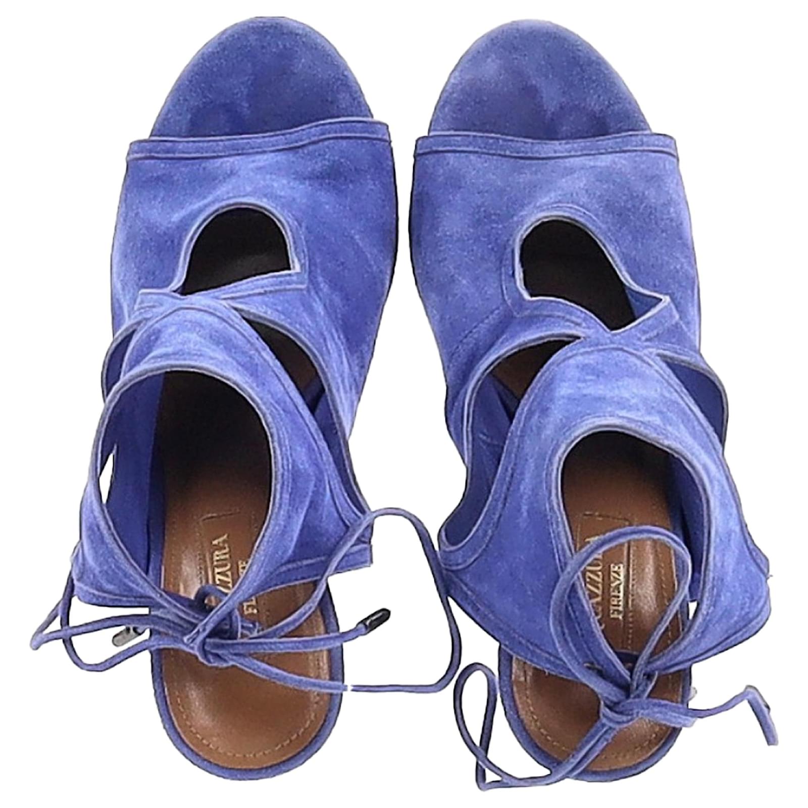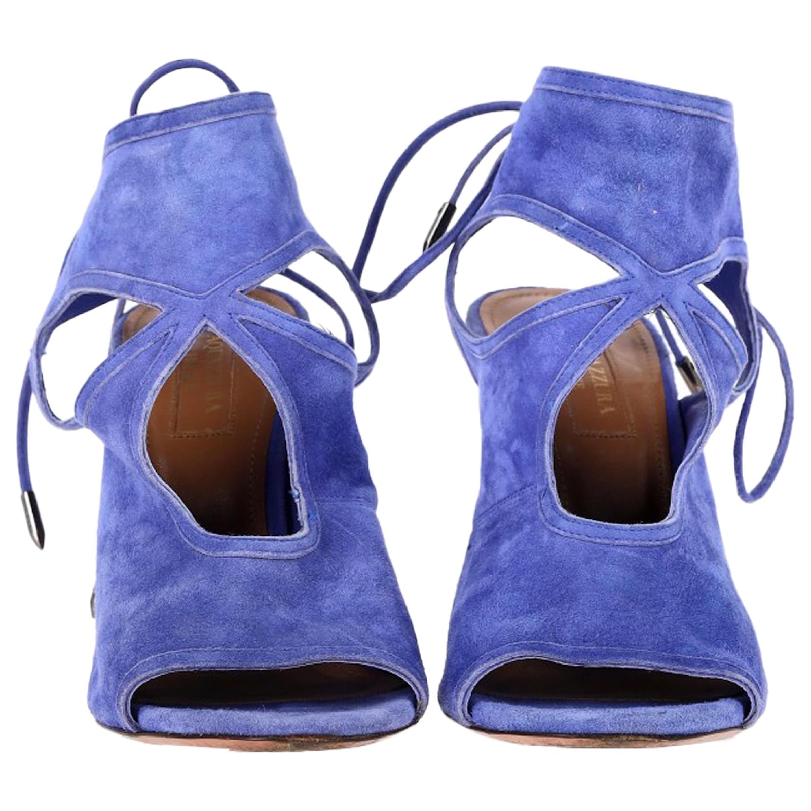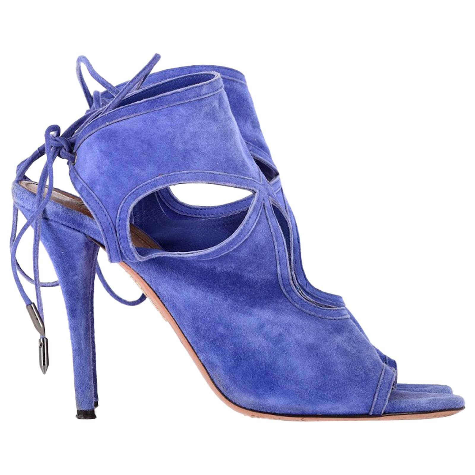 Aquazzura Sexy Thing Cutout Sandal Heels in Blue Suede