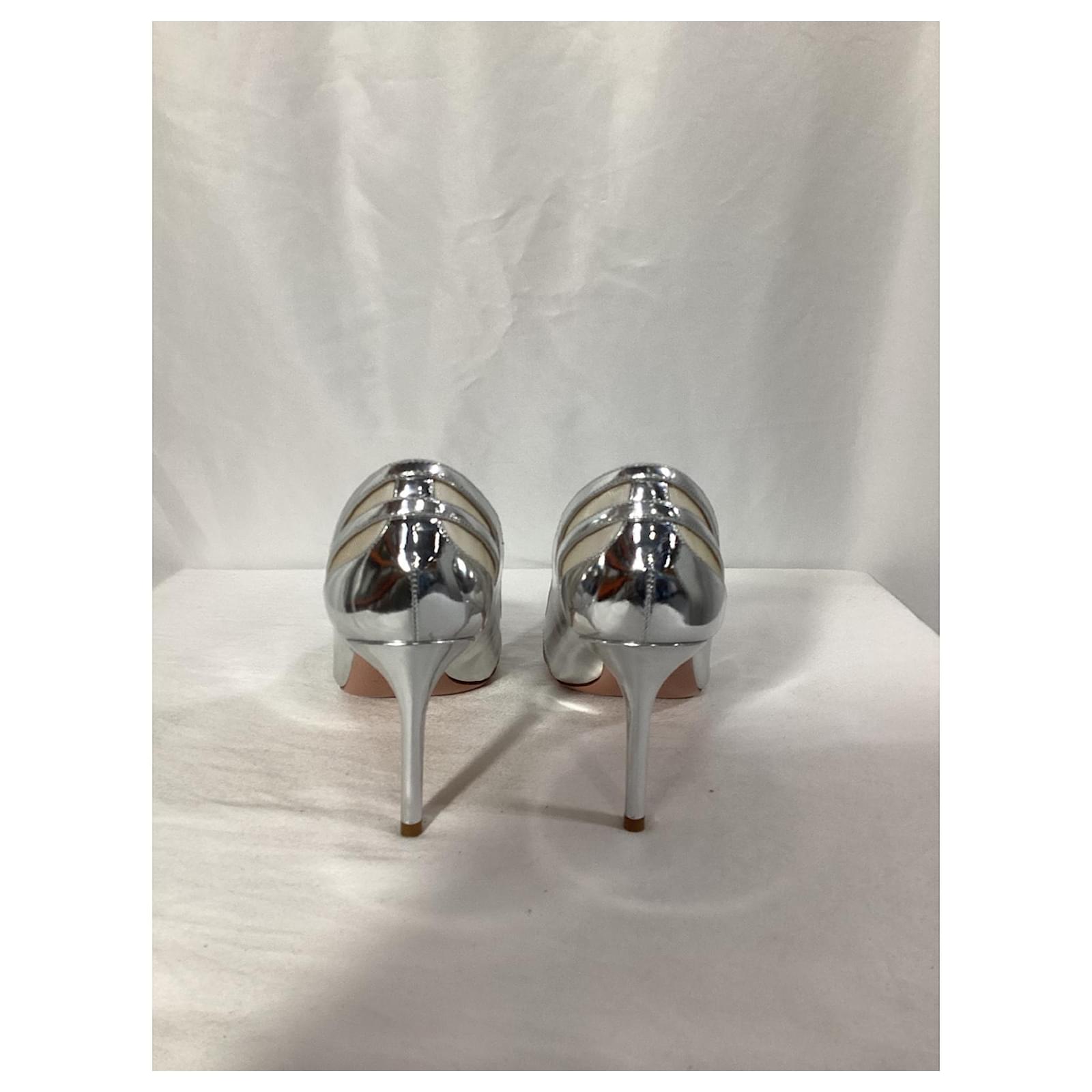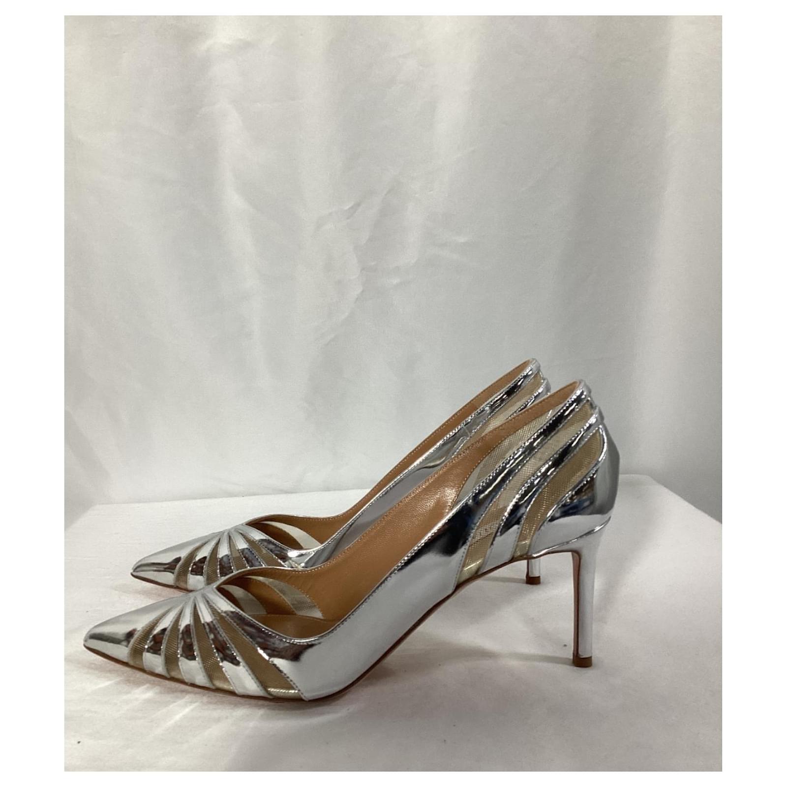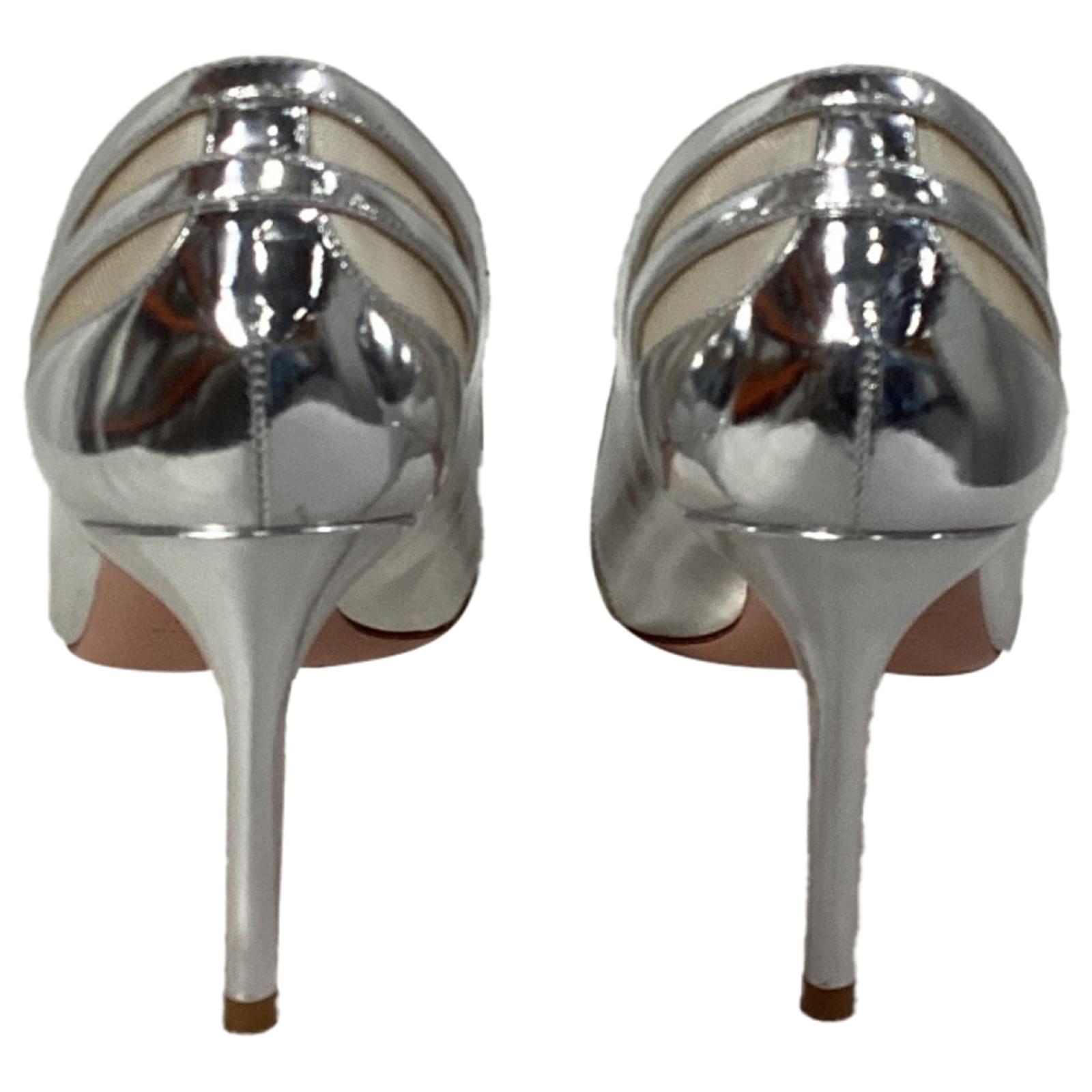 Styling Tip: Pair these silver pumps with a little black dress for an instant dose of glamour, or add them to a tailored suit for a chic, power look. For a more casual yet stylish outfit, wear them with a slip dress and a leather jacket. These pumps are the perfect addition to any evening event or special occasion, ensuring you shine with confidence and style.