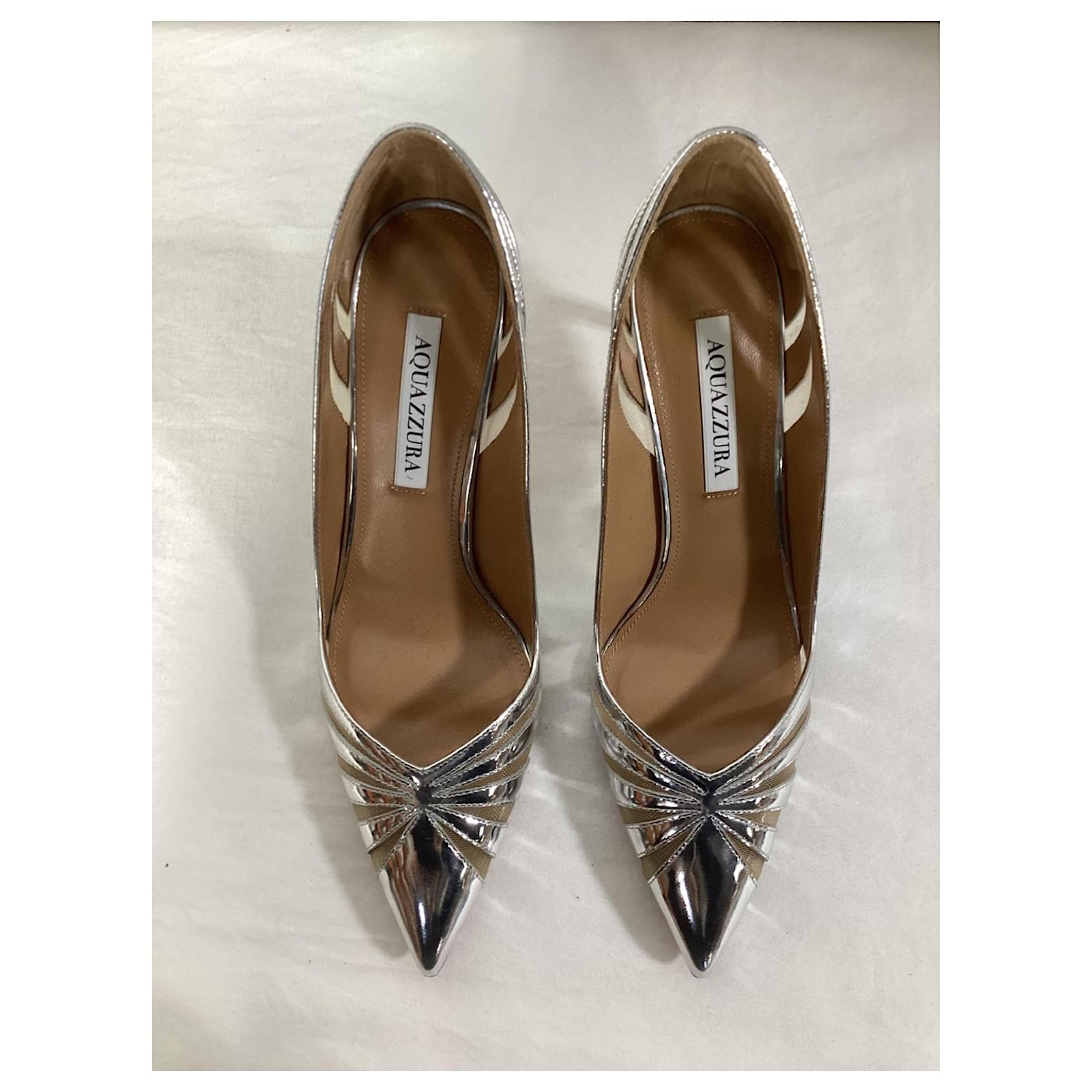 Aquazzura The Spy 90mm Pumps In Silver Patent Leather Silvery