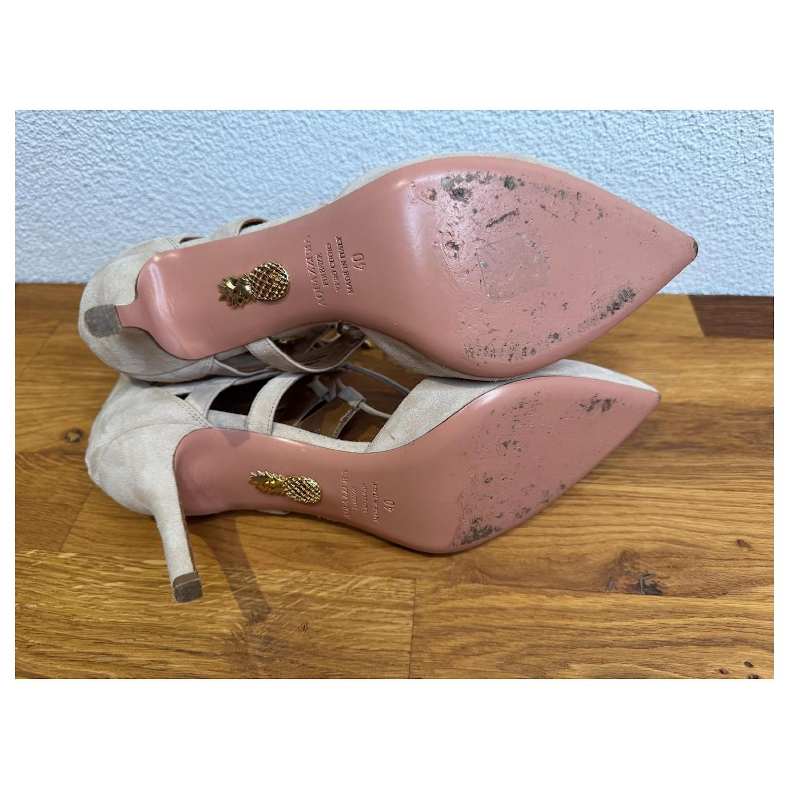 Aquazzura Belgravia Pumps 85 Strappy High Heels Beige Size 40