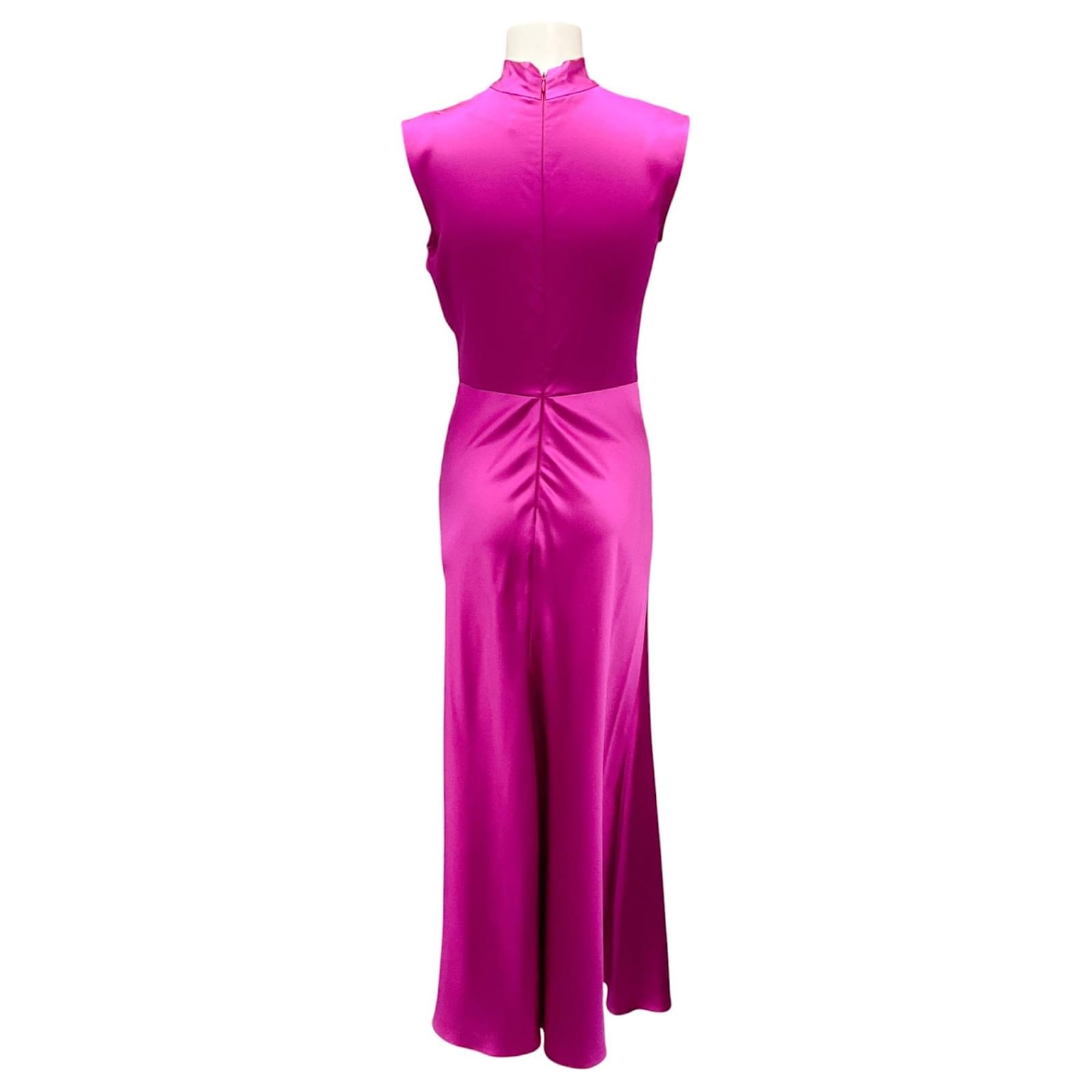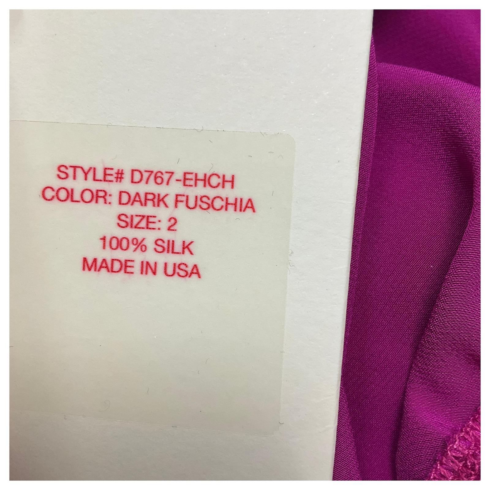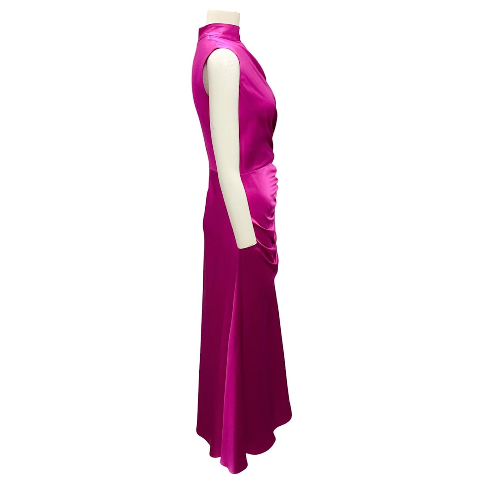 Autre Marque Alejandra Alonso Rojas Dark Fuchsia Ruched Silk Cocktail Dress Pink