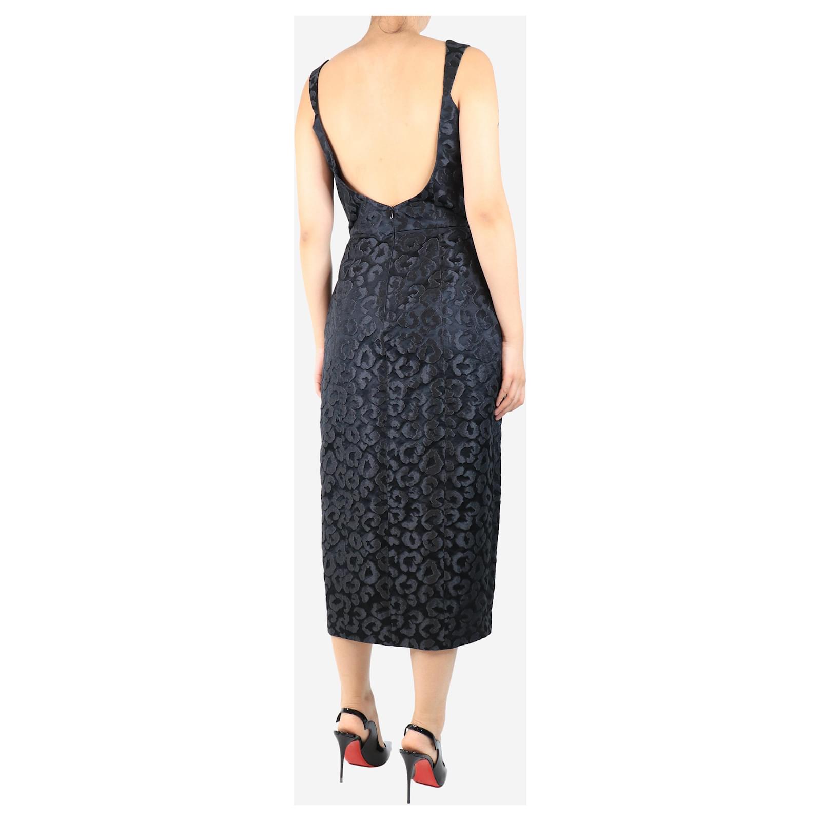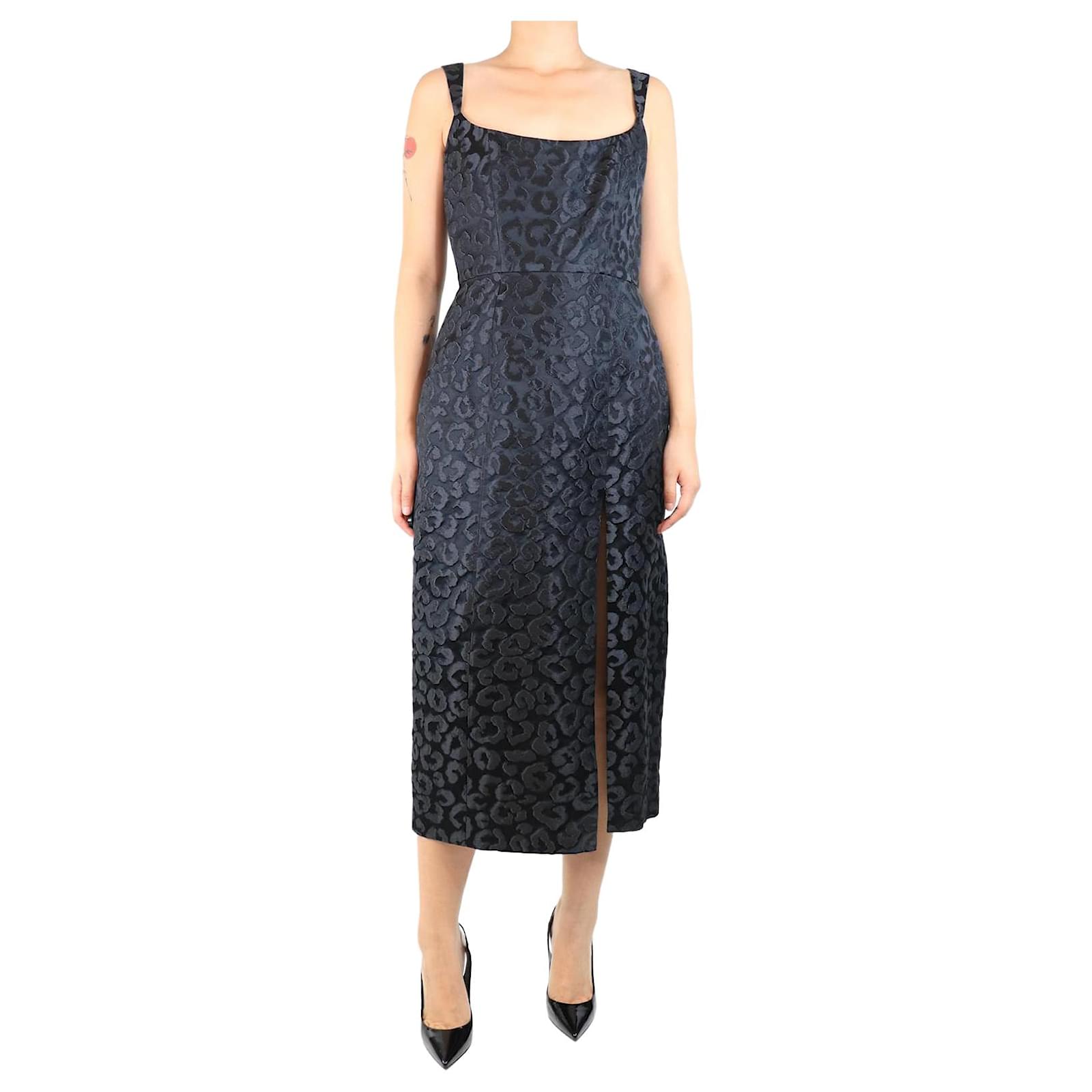 Autre Marque Black leopard jacquard midi dress - size UK 14
