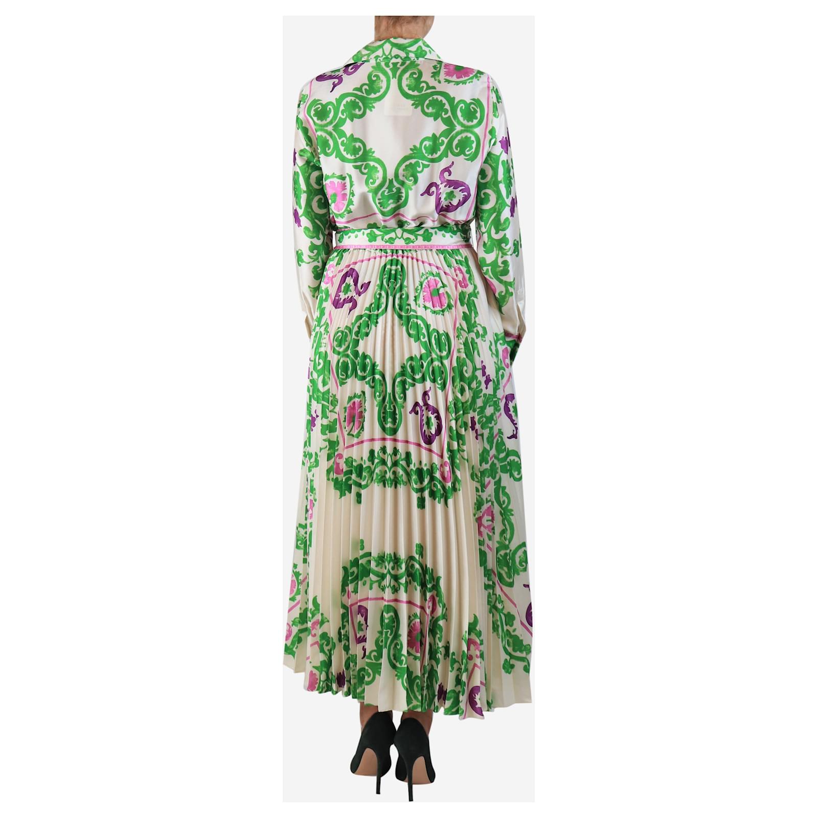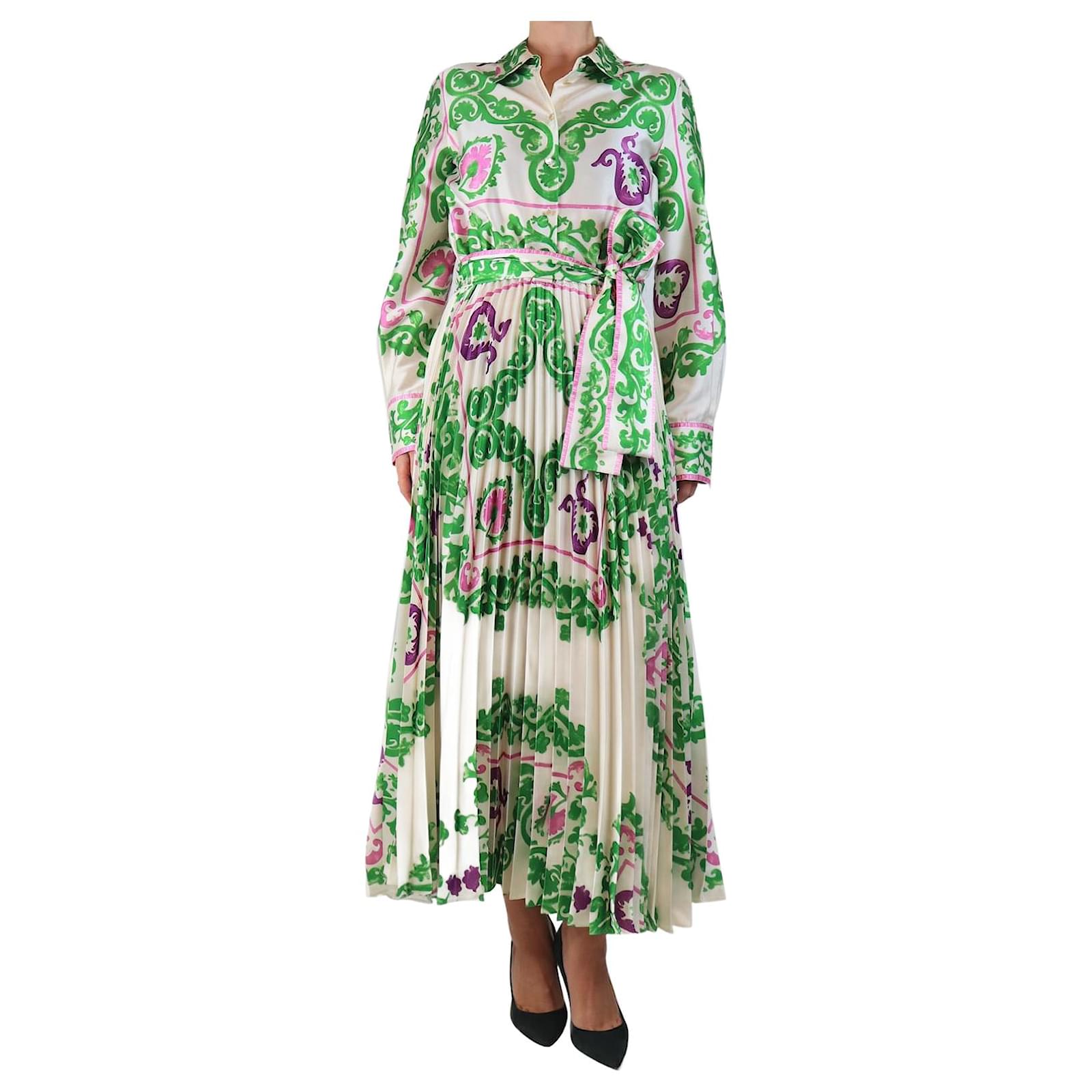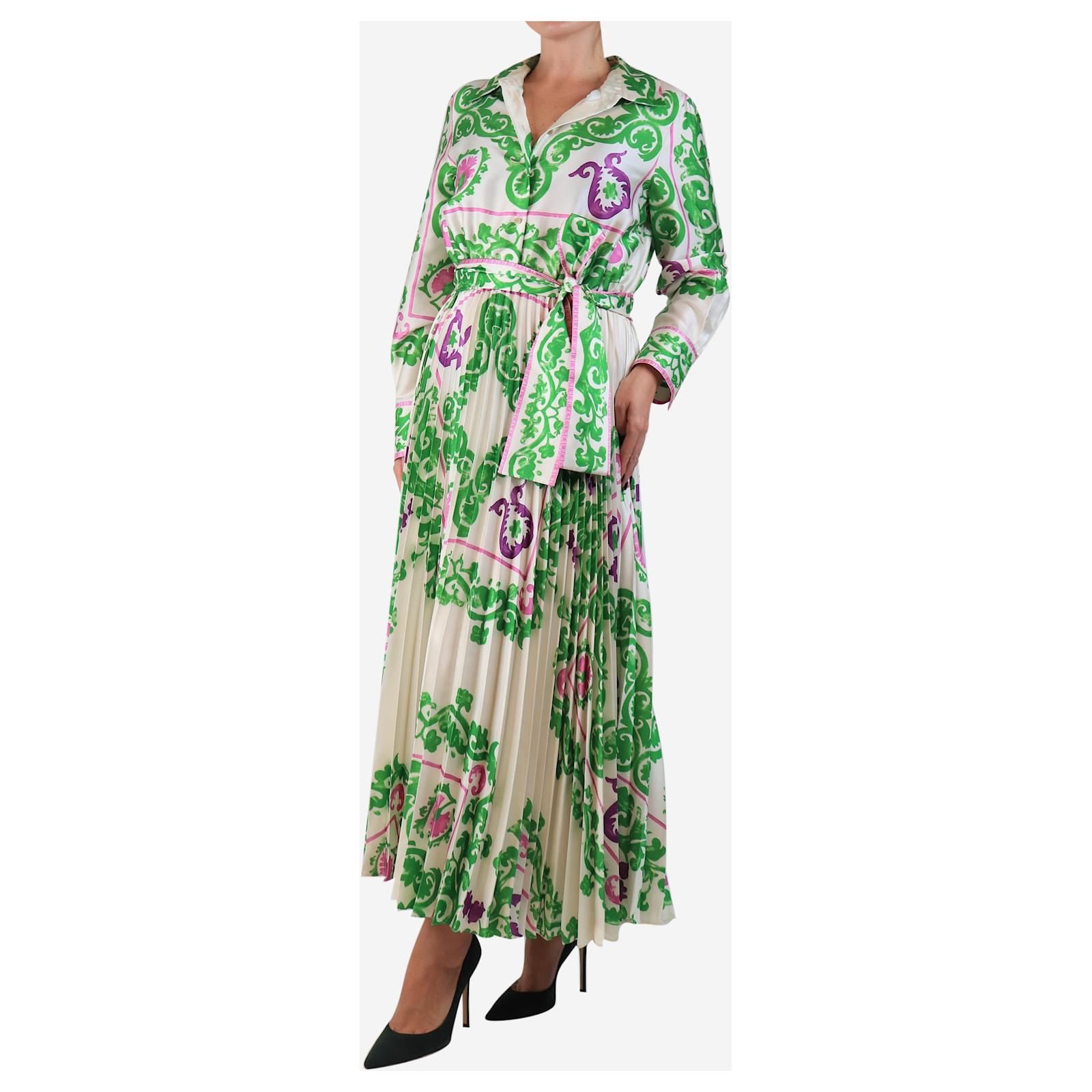Autre Marque Green and ecru pleated maxi dress - size M Cream