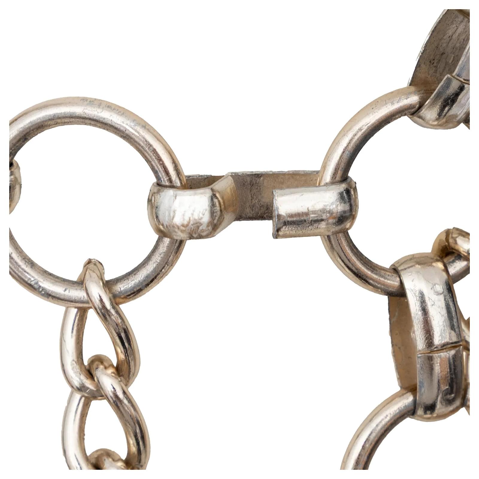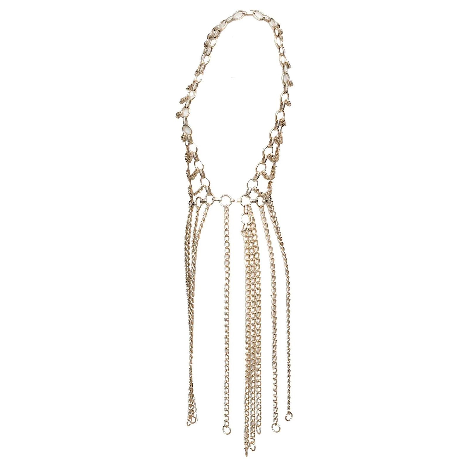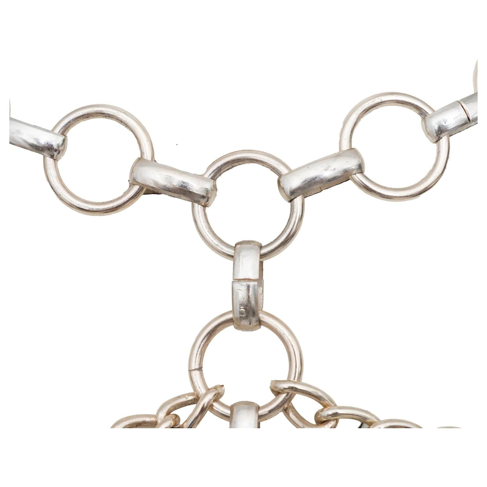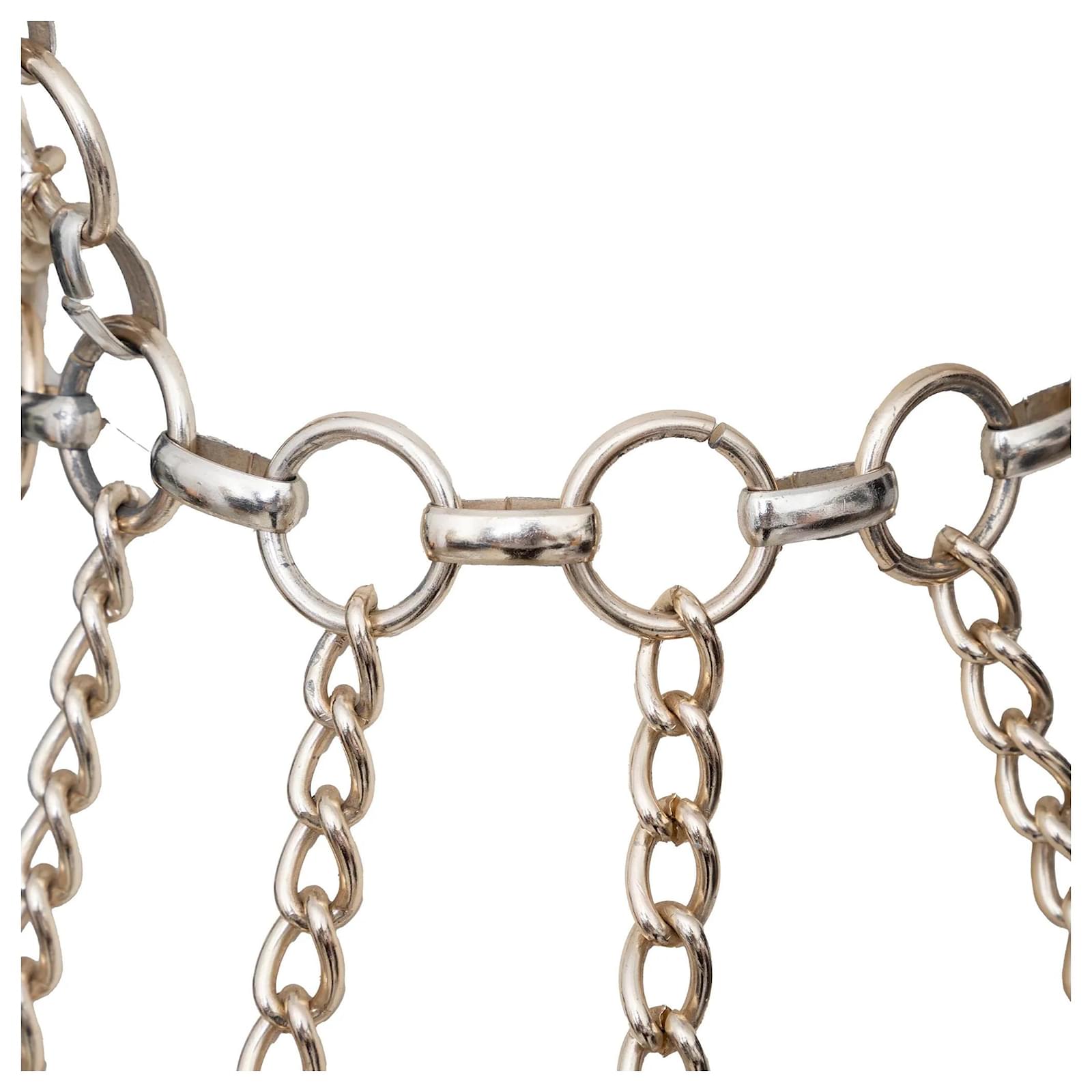 Rare 1960s metal shield dress made of interlinked chain, horizontal over the top and cascading vertically from the waist. A striking collectible piece of body art.Shoulder:26Width:22Waist:32Length:98Metal