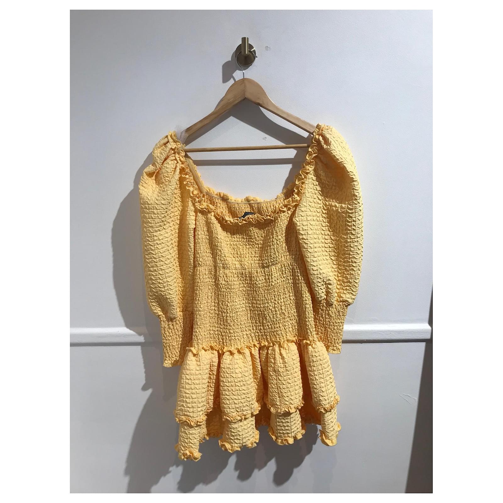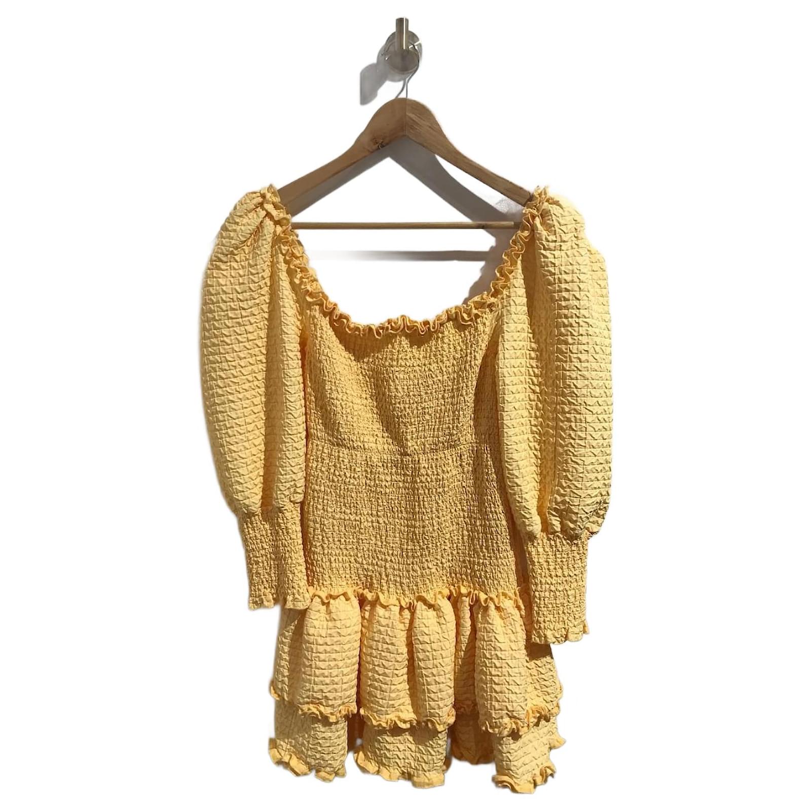 Raisa Vanessa x Trendyol dress, Size 38.Short smocked dress in yellow cotton gas. Mid-length puffed sleeves. Close-fitting cut.Very good condition, composition label missing.