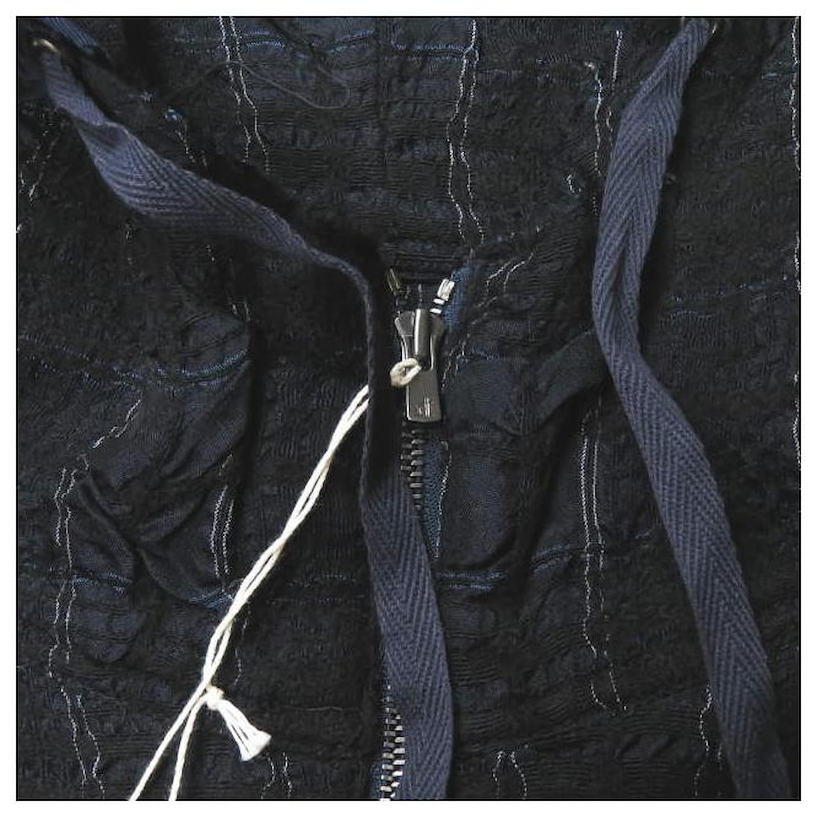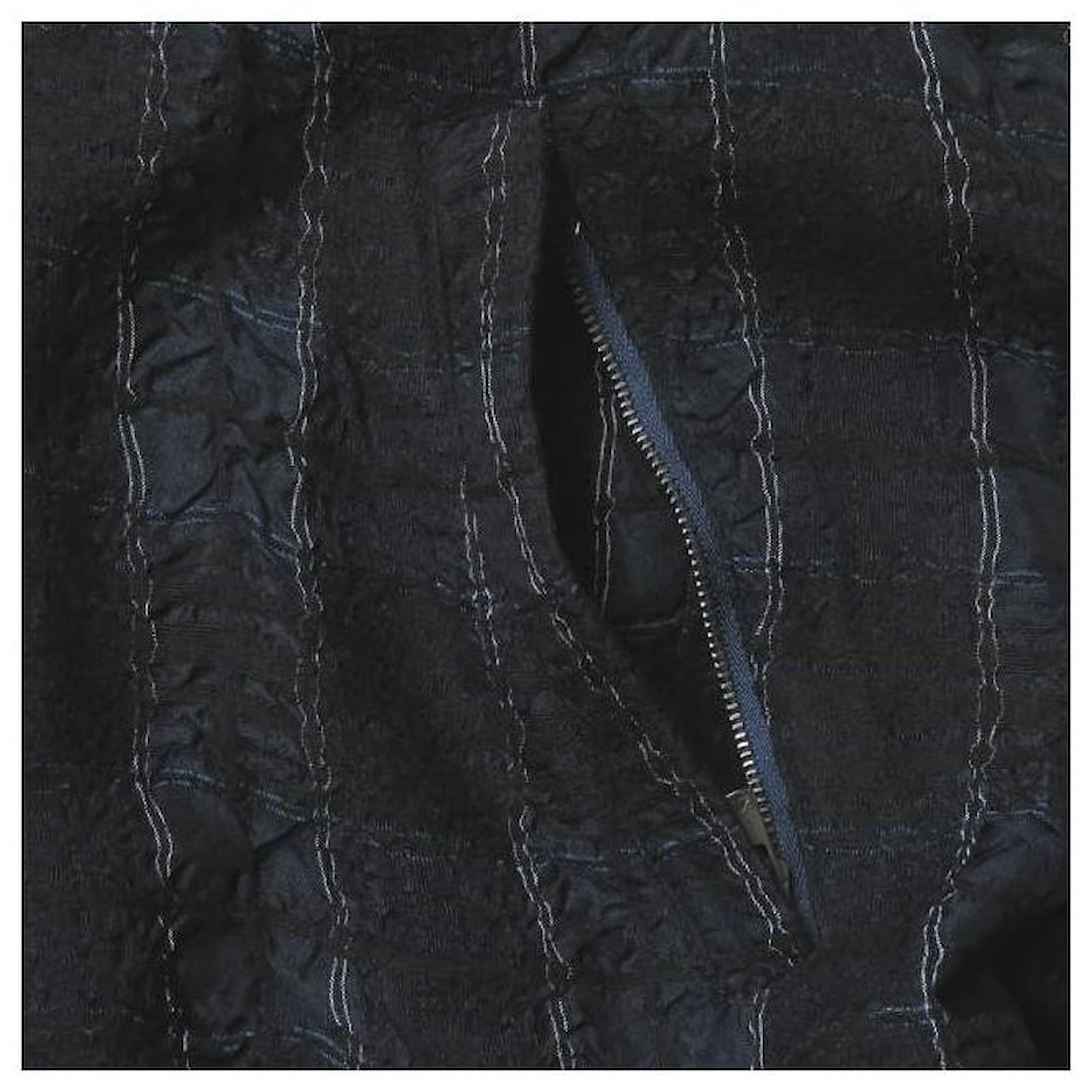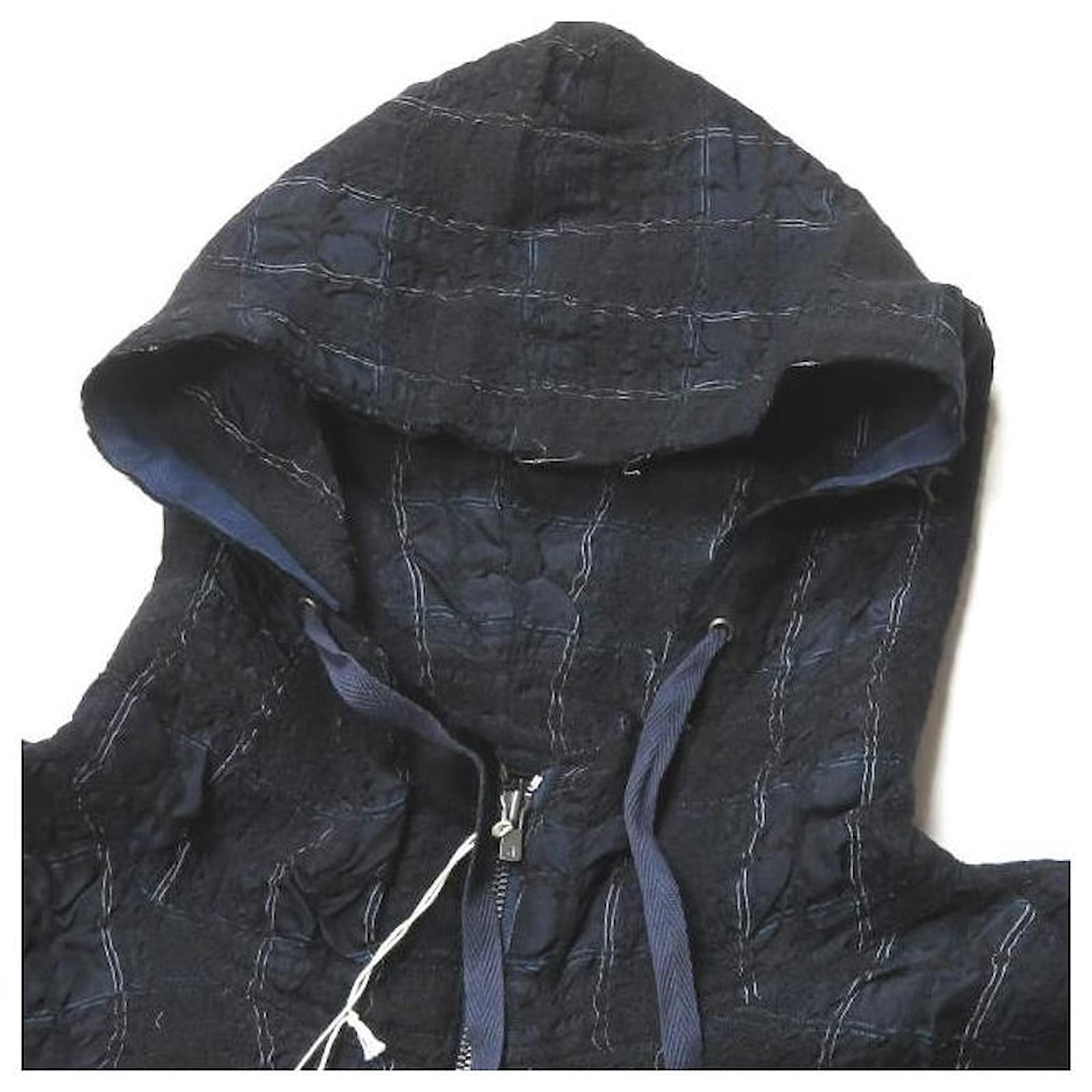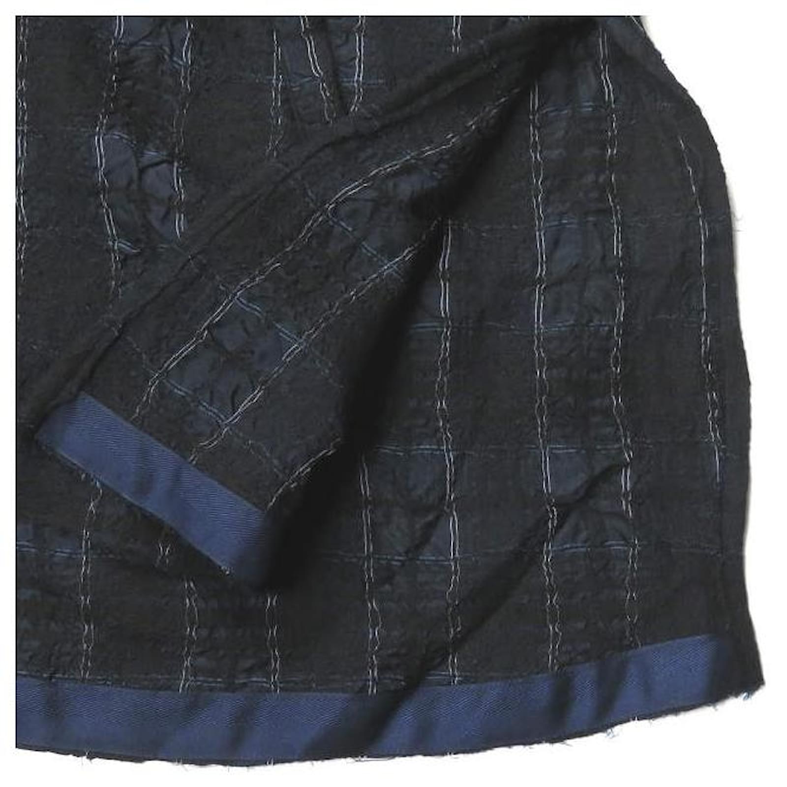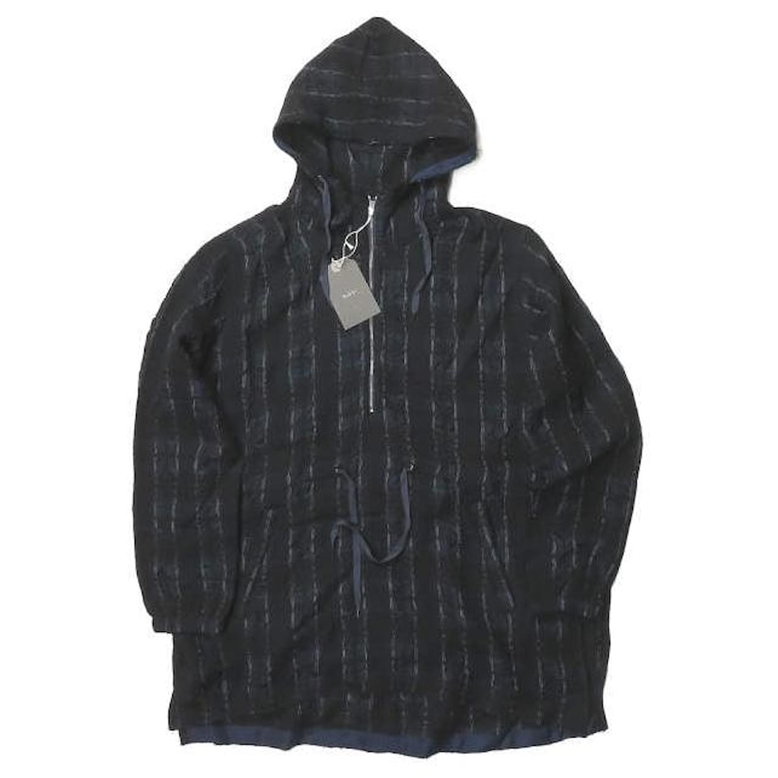 Autre Marque bukht CHECK LONG ANORAK Wool Cupro Coat Navy blue