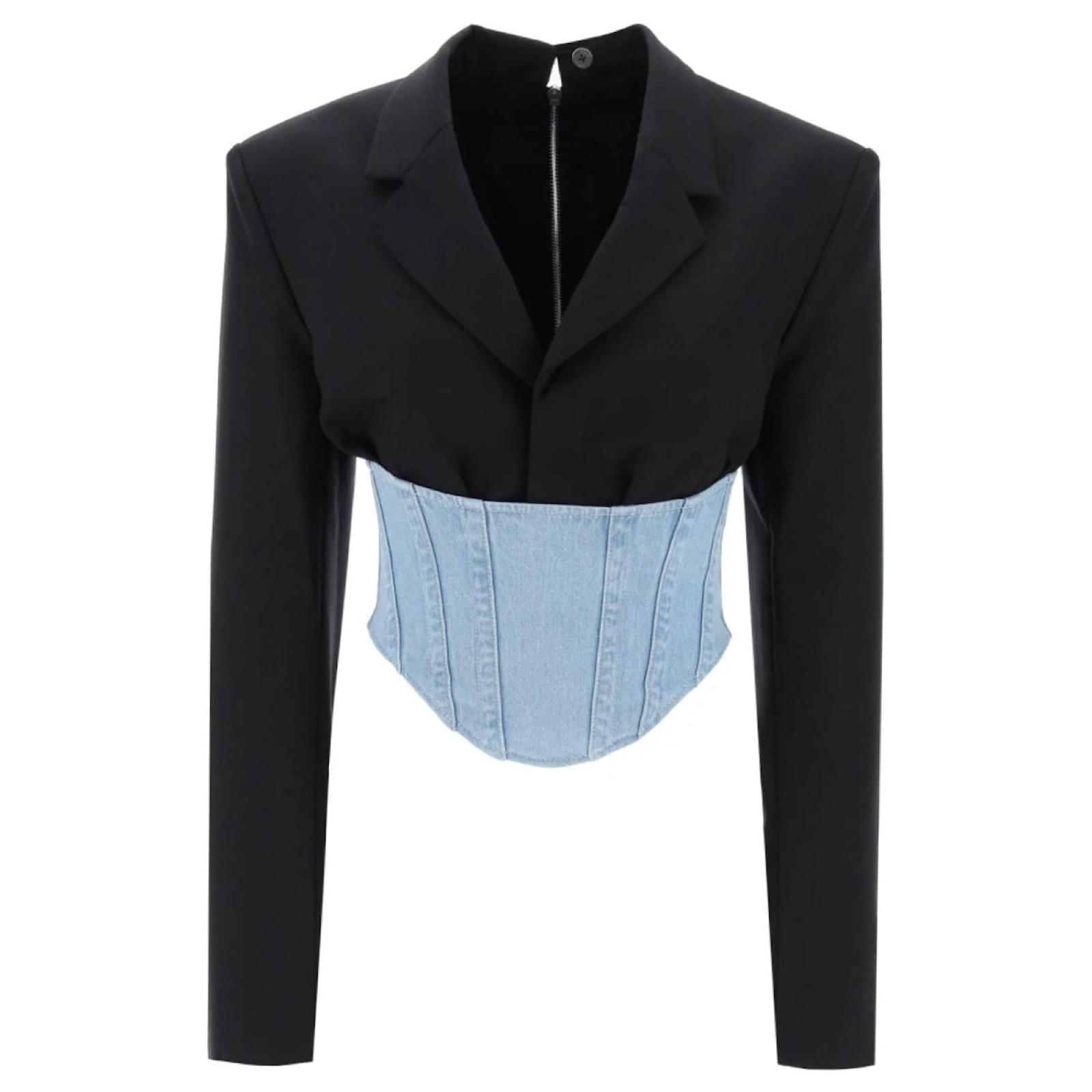 Autre Marque Dion Lee Black / Cyan Wool and Denim Float Corset Blazer