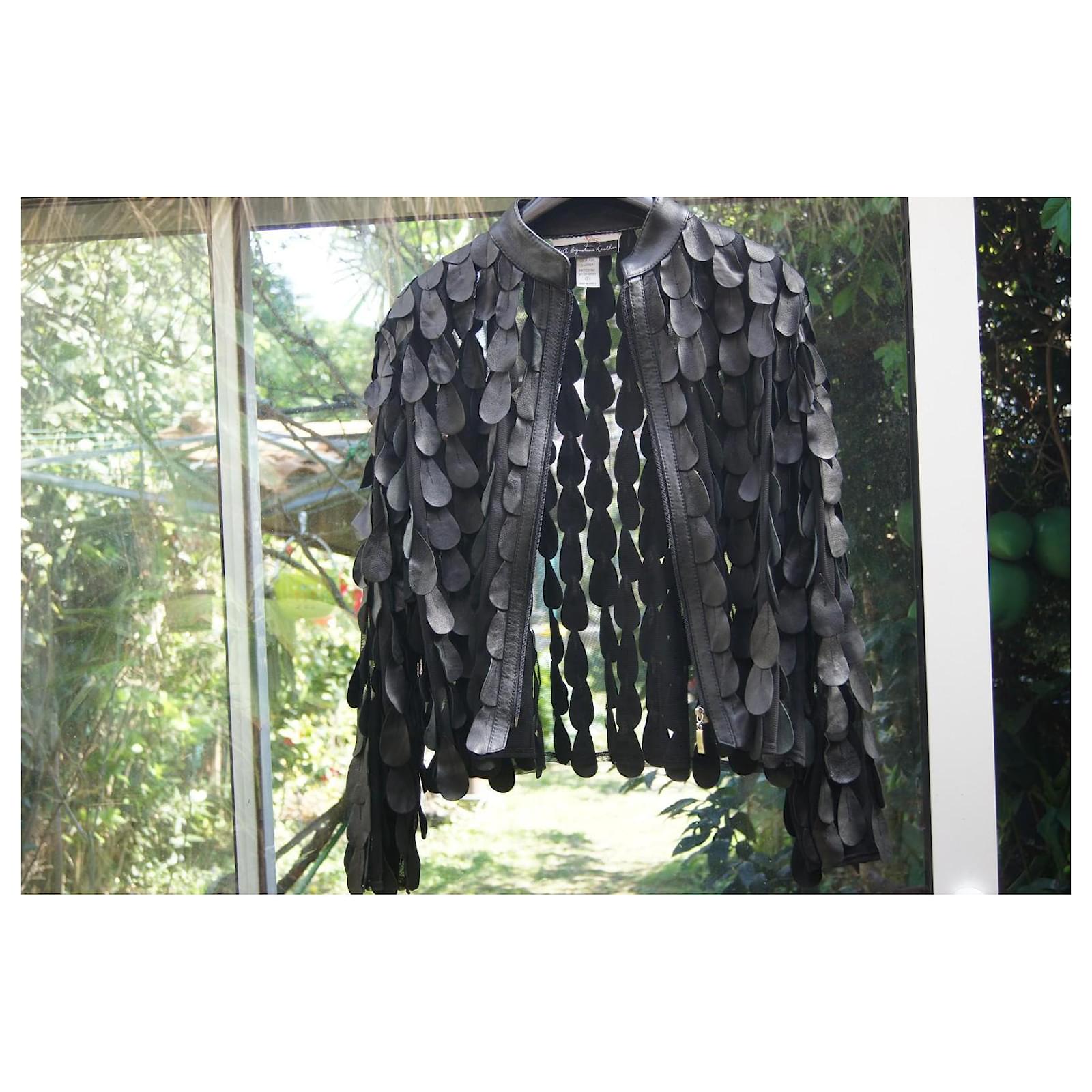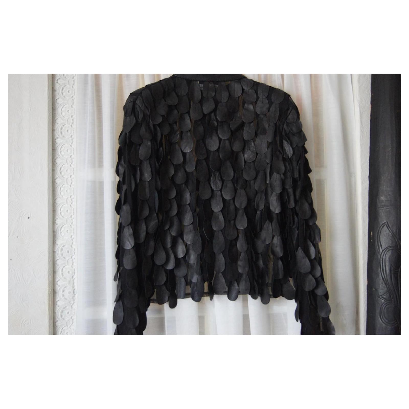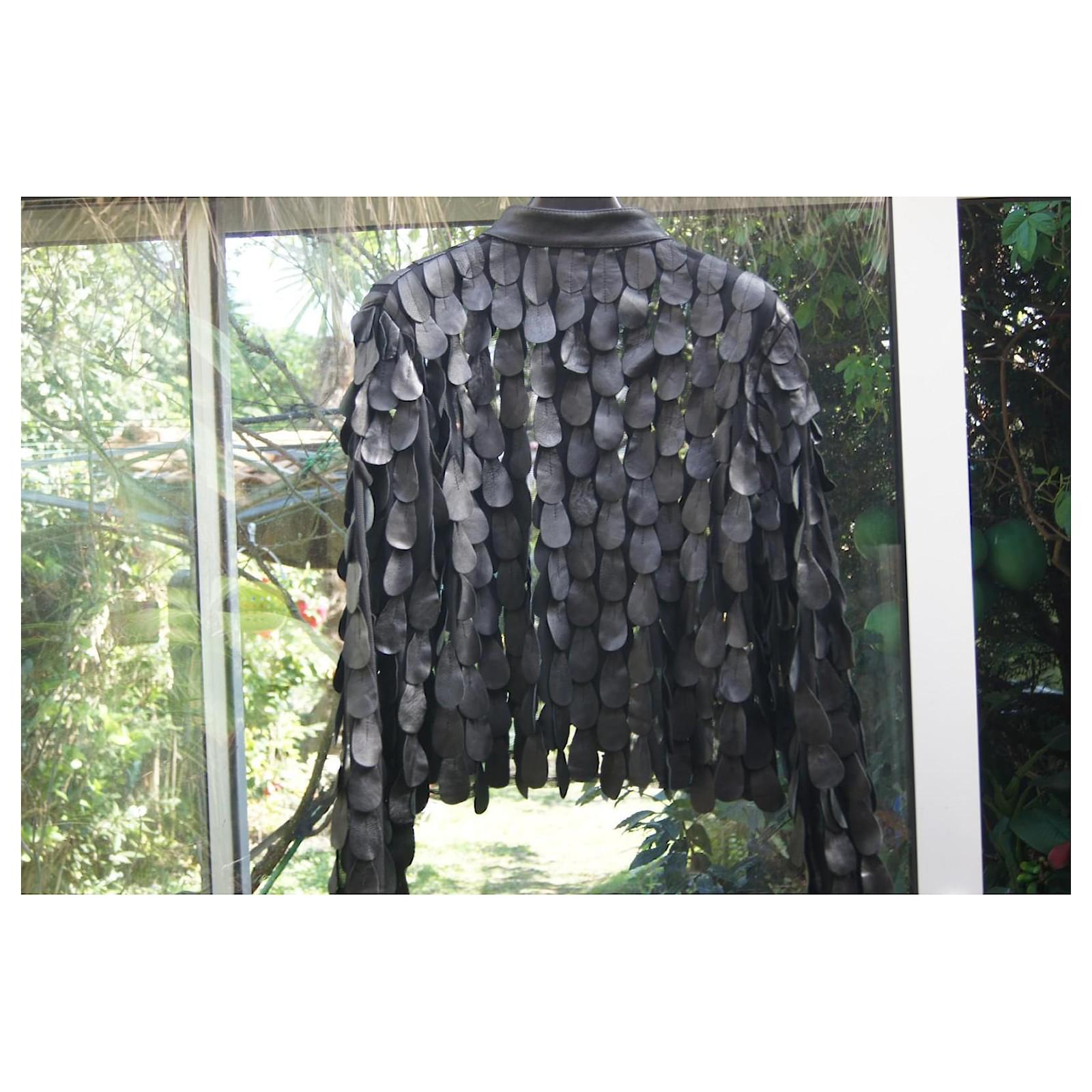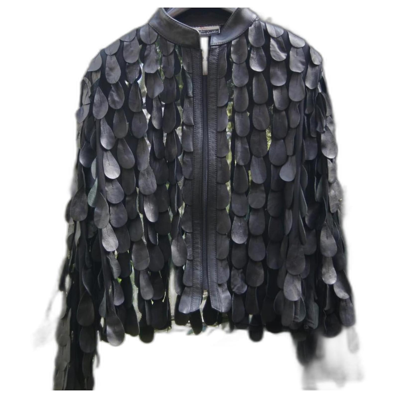 Super oversized leather jacket, vintage, very original, an extraordinary work of layering pieces of leather, one after the other, sewn onto a veil, very chic. Rare piece. Light leather smell, nothing bothersome.