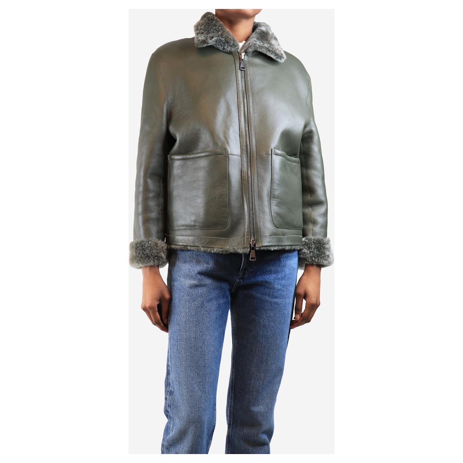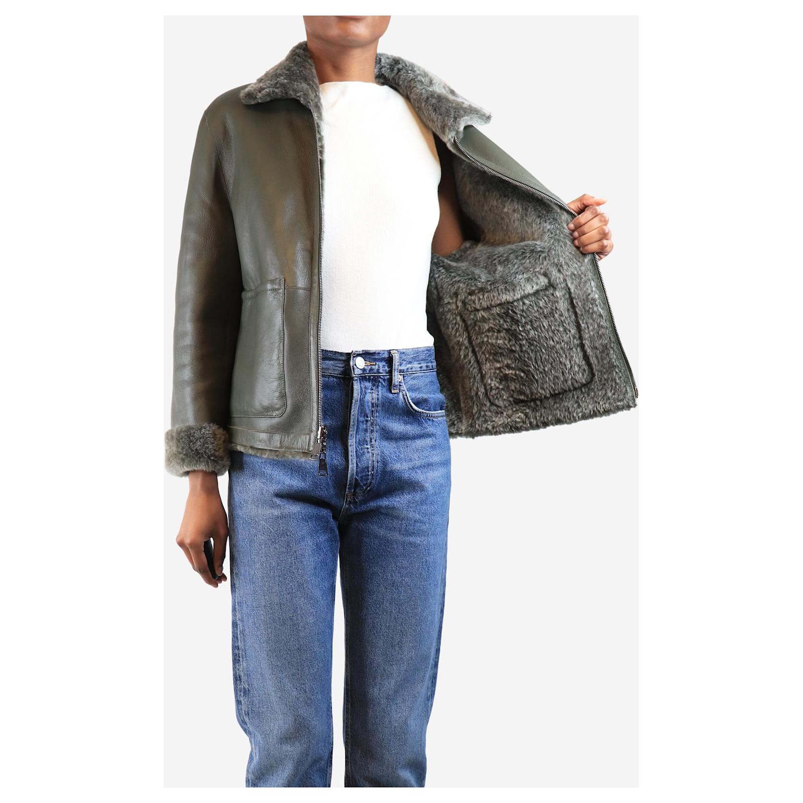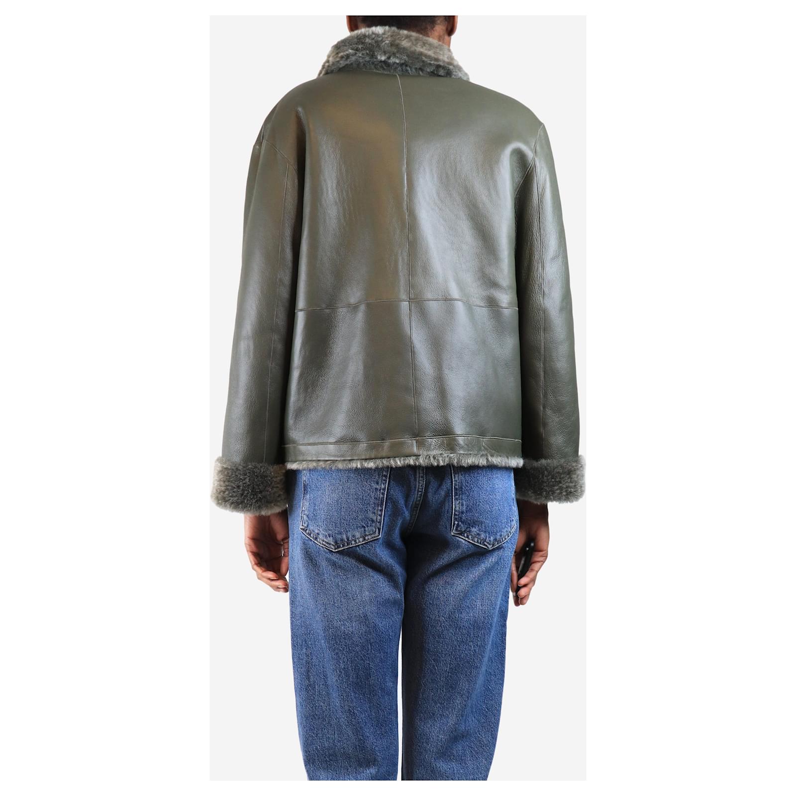 Autre Marque Olive reversible shearling jacket - size UK 6 Green