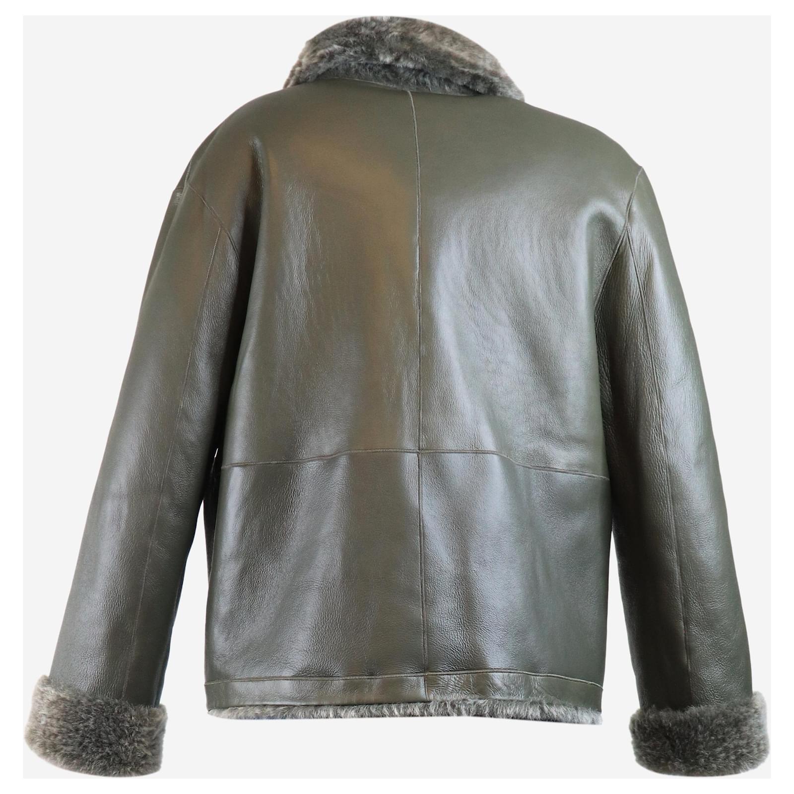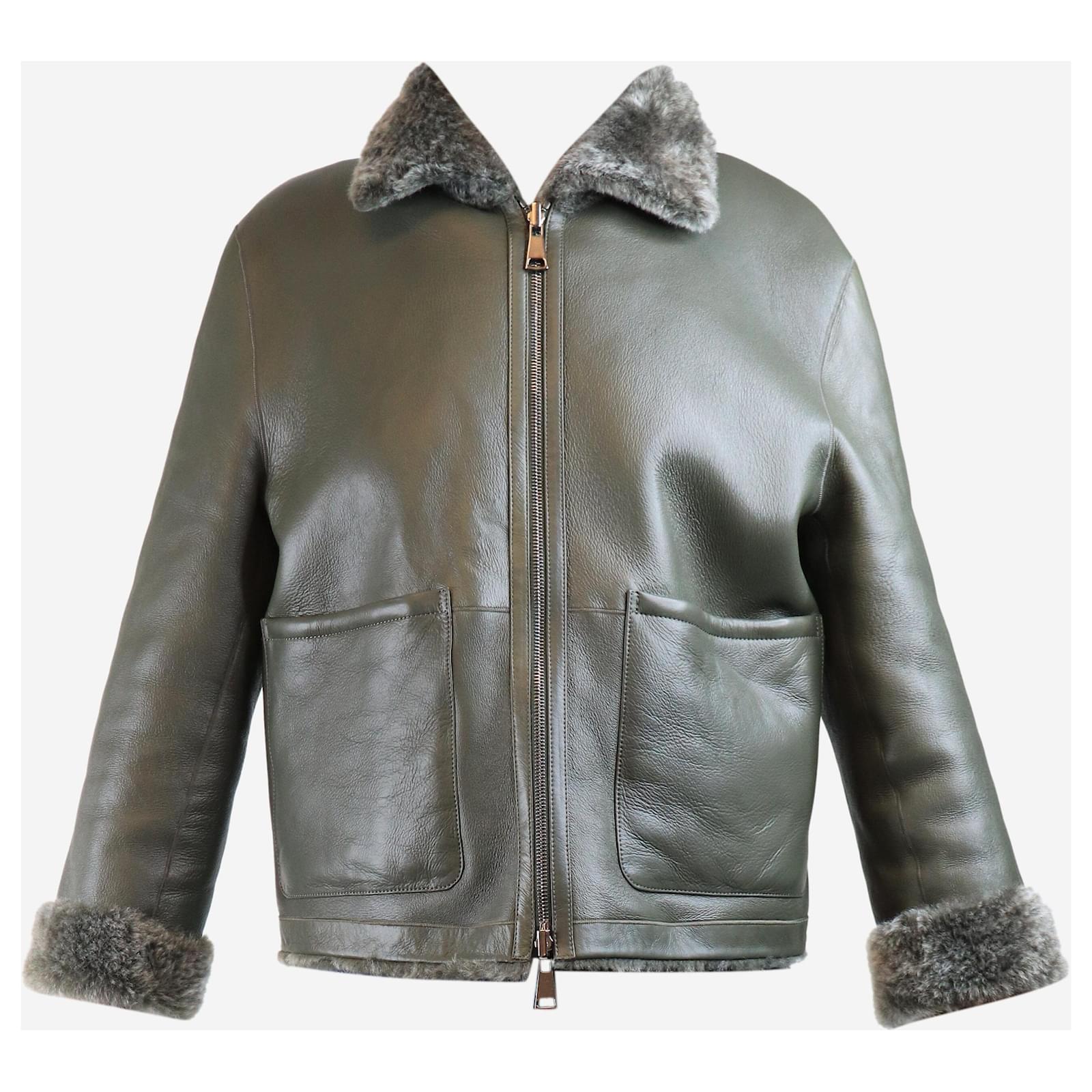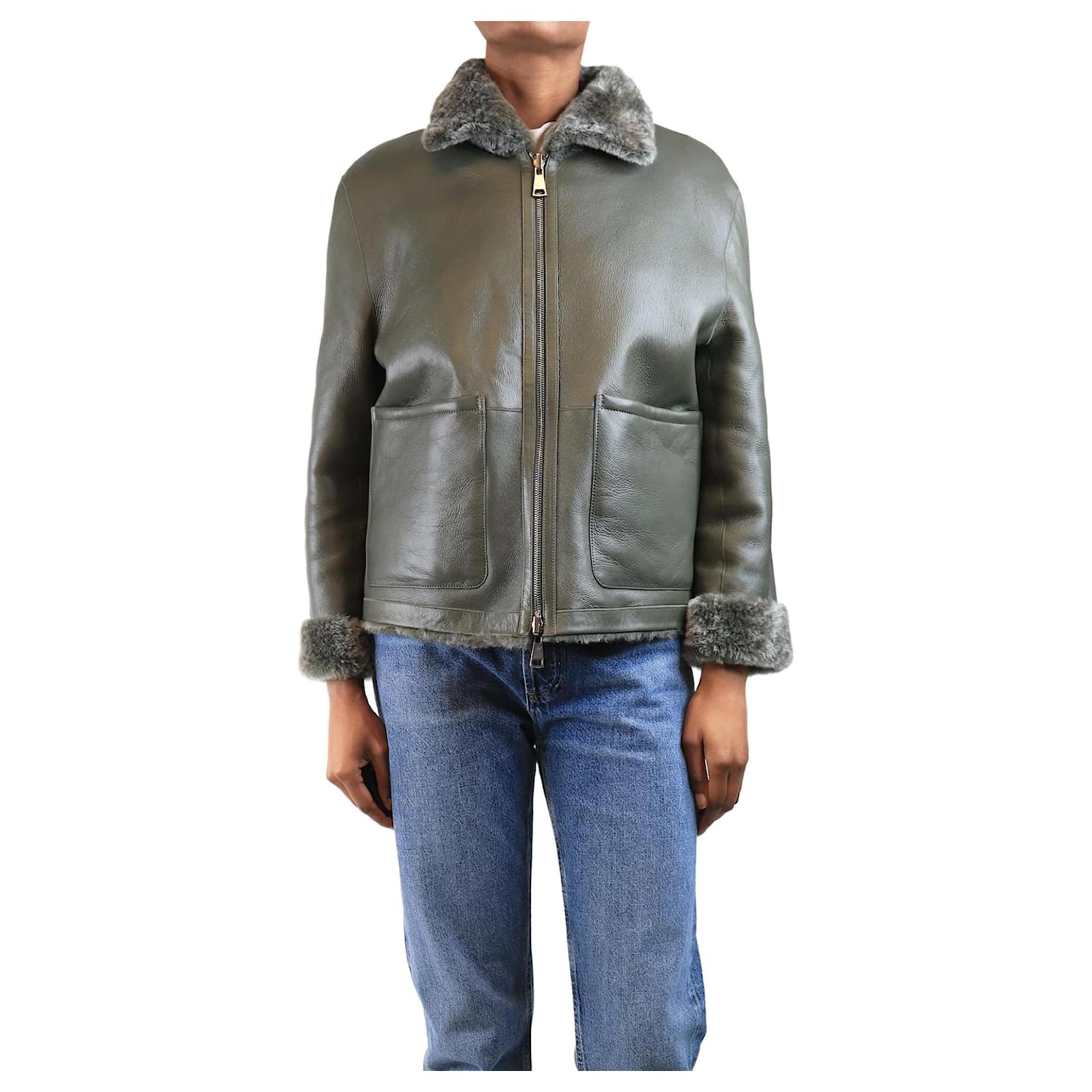 Autre Marque Olive reversible shearling jacket - size UK 6 Green