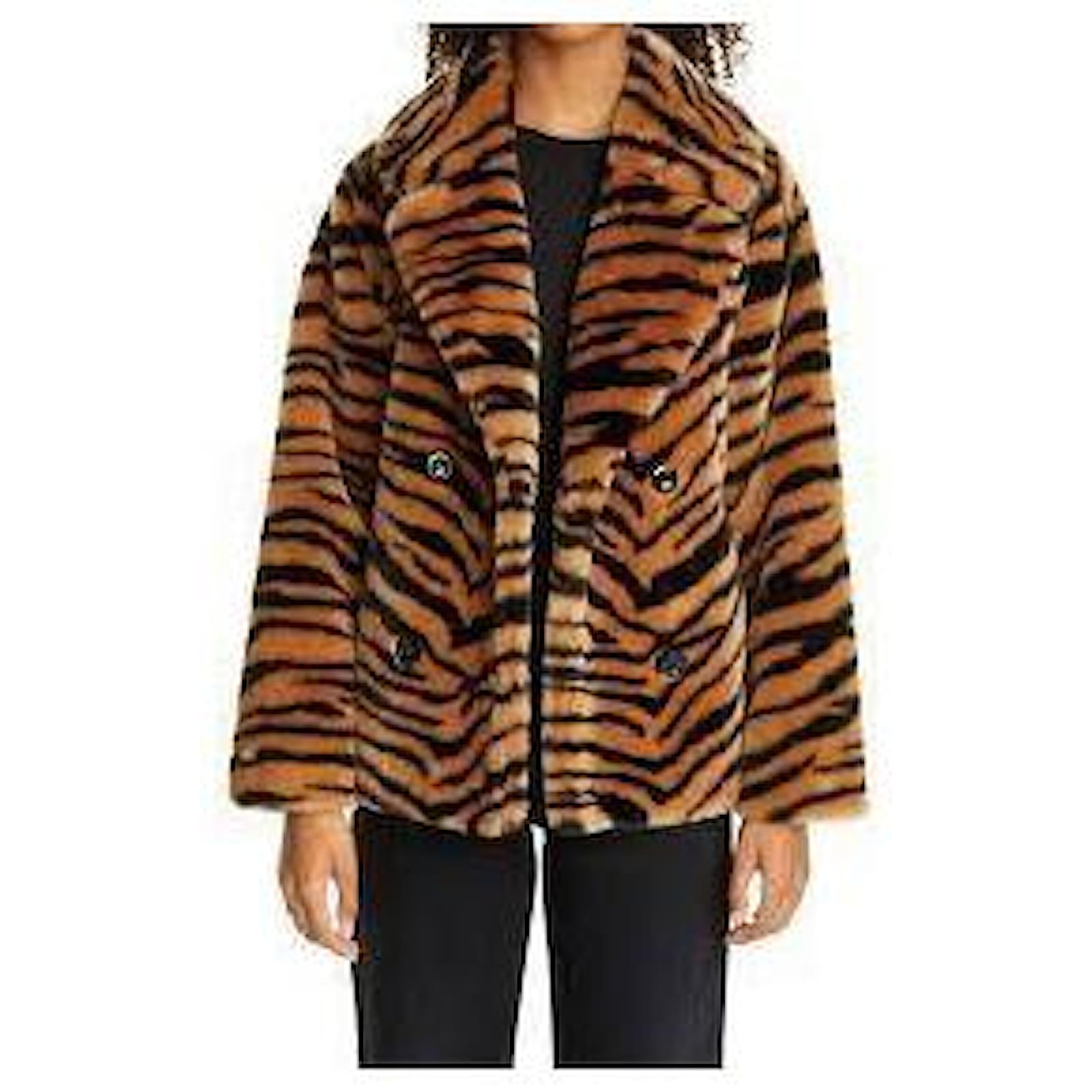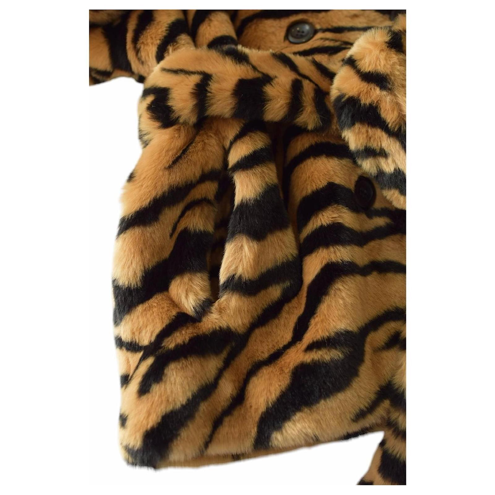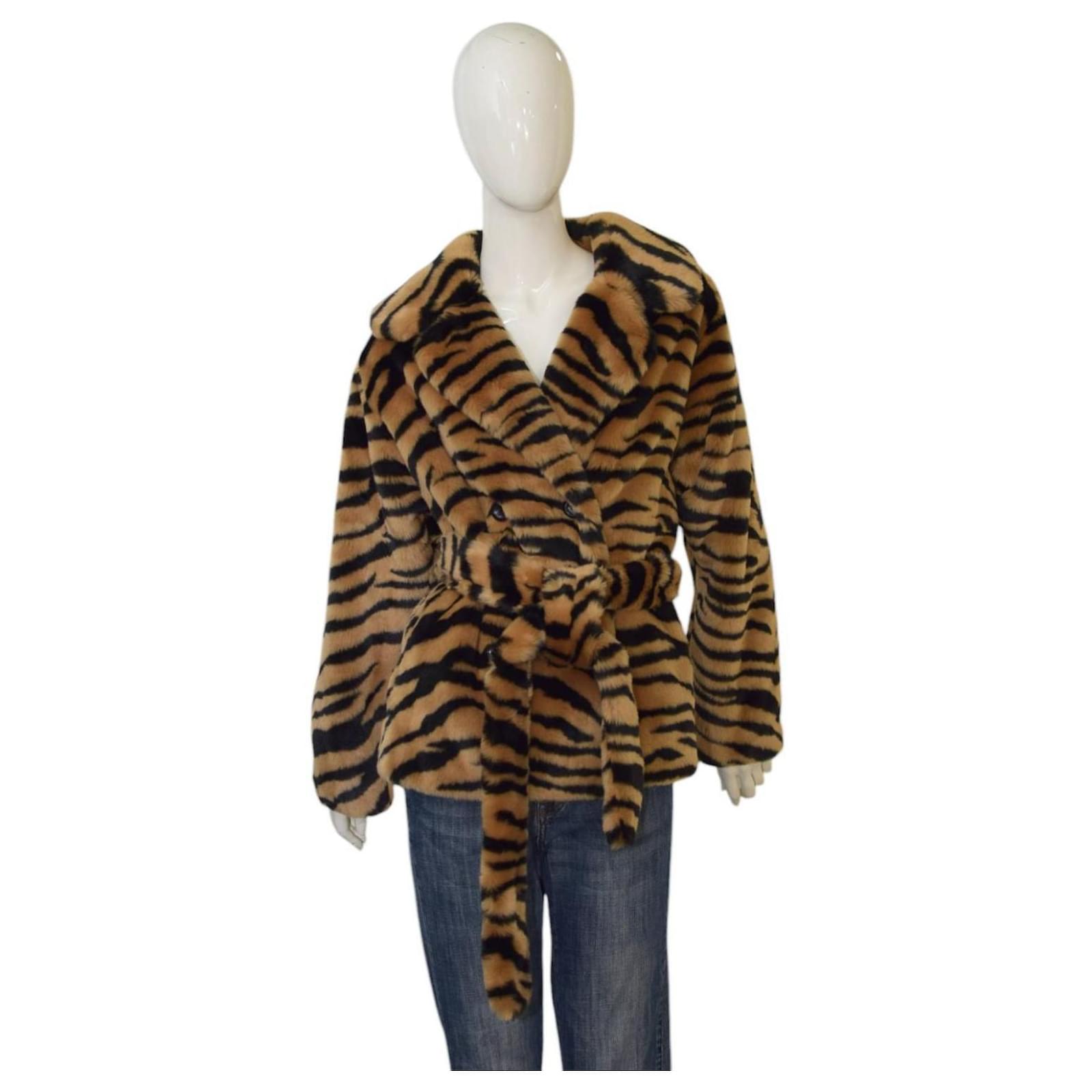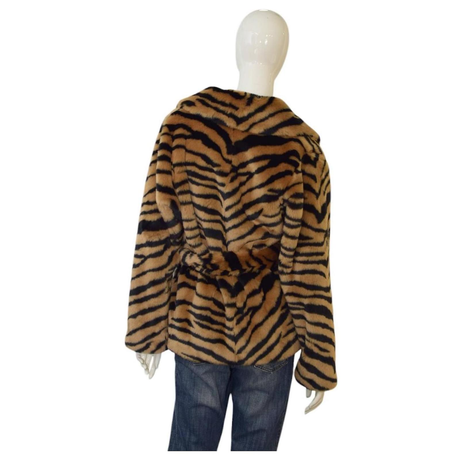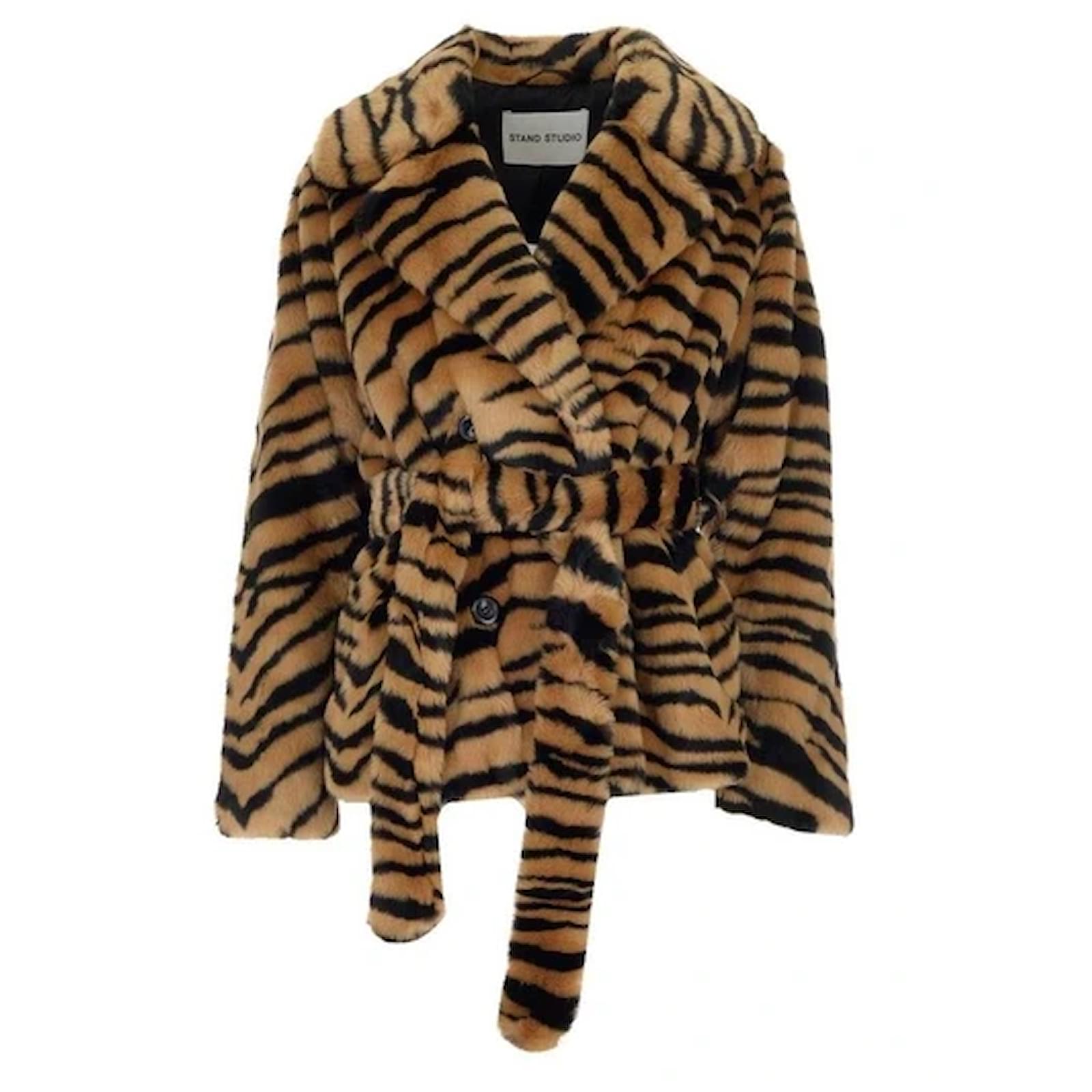Autre Marque STAND STUDIO Tiffany Short Tiger Print Faux Fur Belted Jacket In Classic Tiger Multiple colors