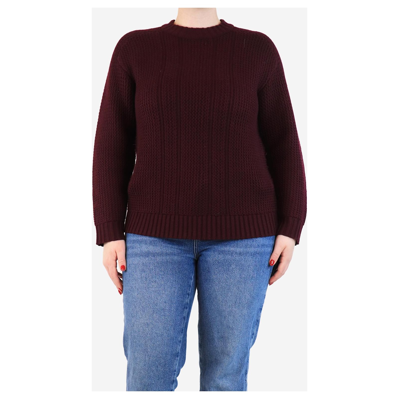 Autre Marque Burgundy cable-knit jumper - size M Dark red