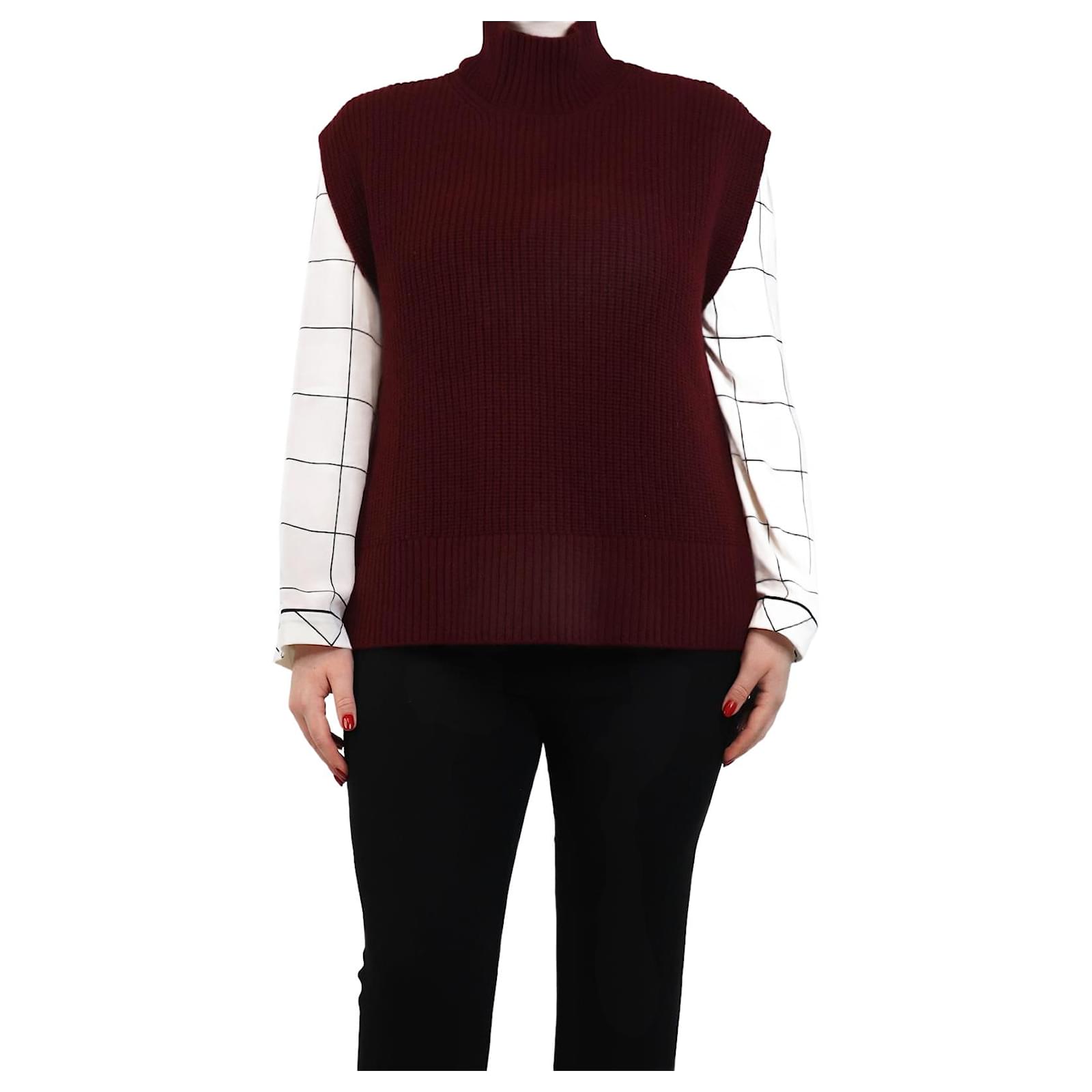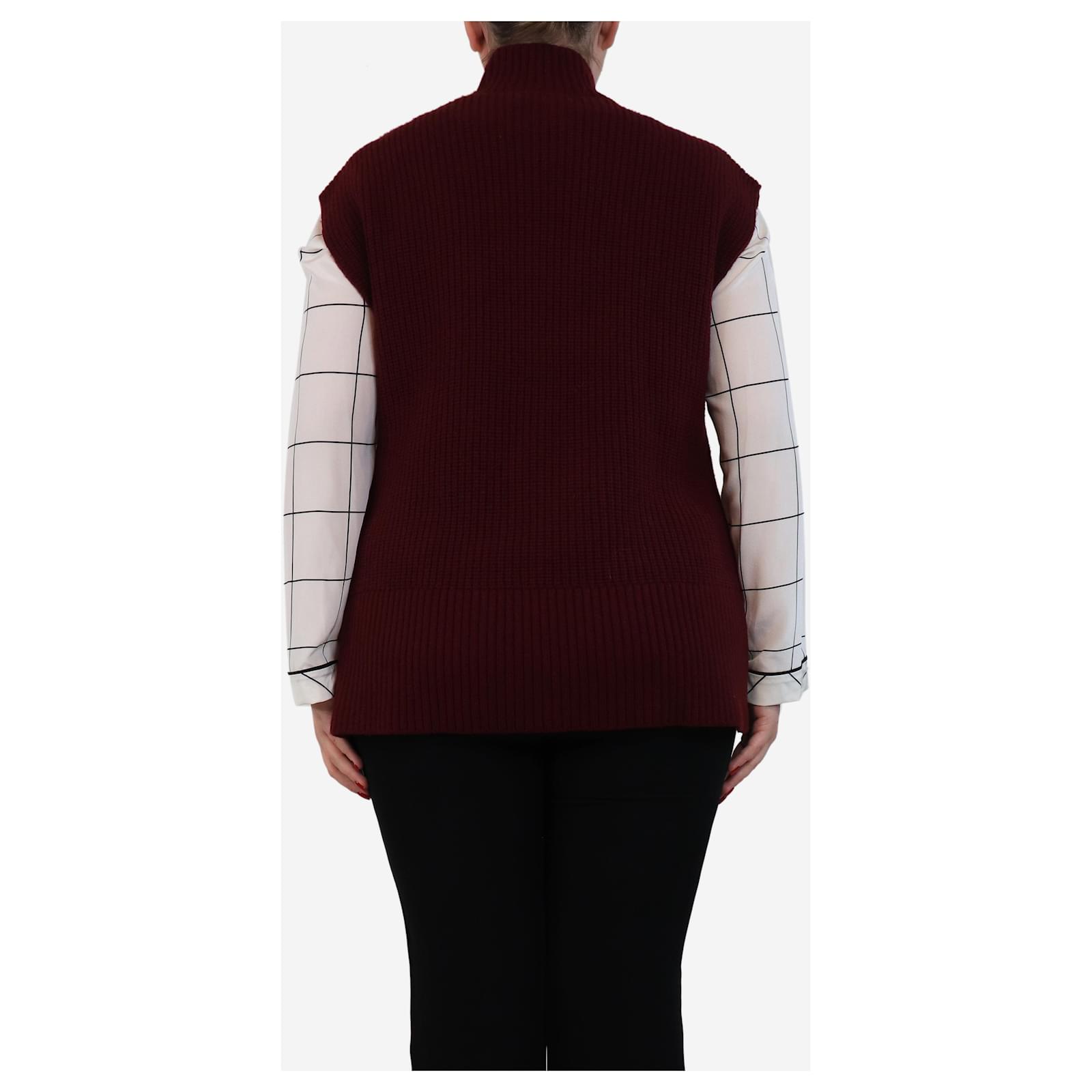 Autre Marque Burgundy ribbed high-neck jumper vest - size L Dark red