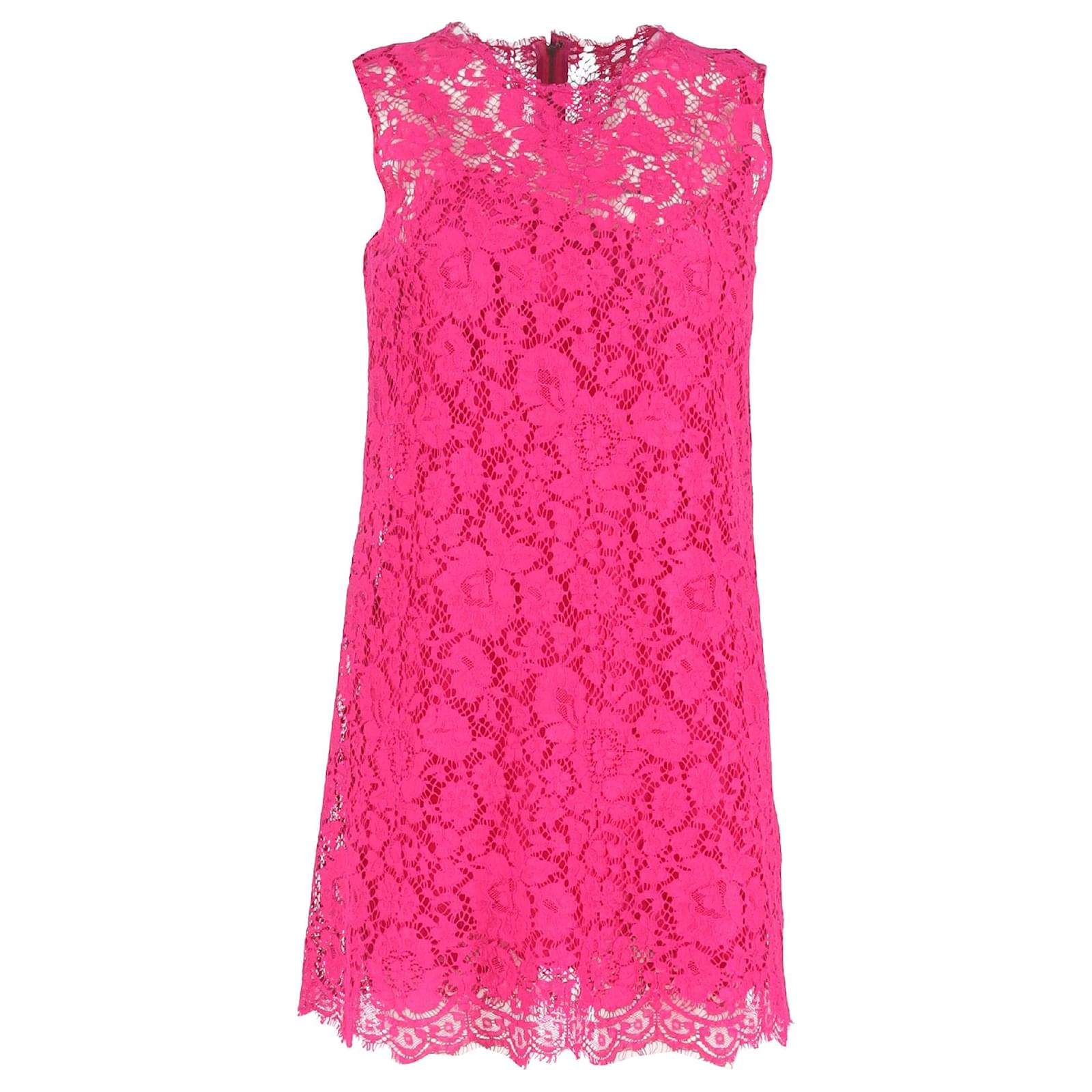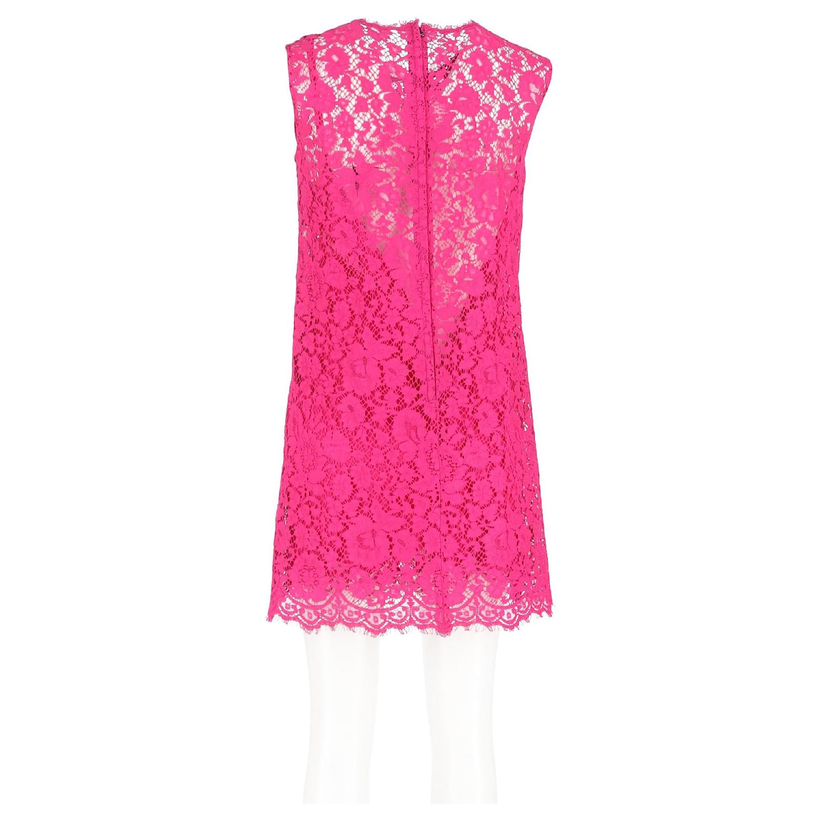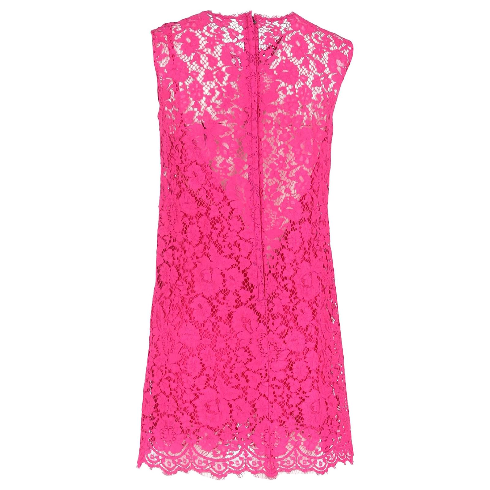 Dolce & Gabbana Lace Pattern Mini Dress in Pink Cotton