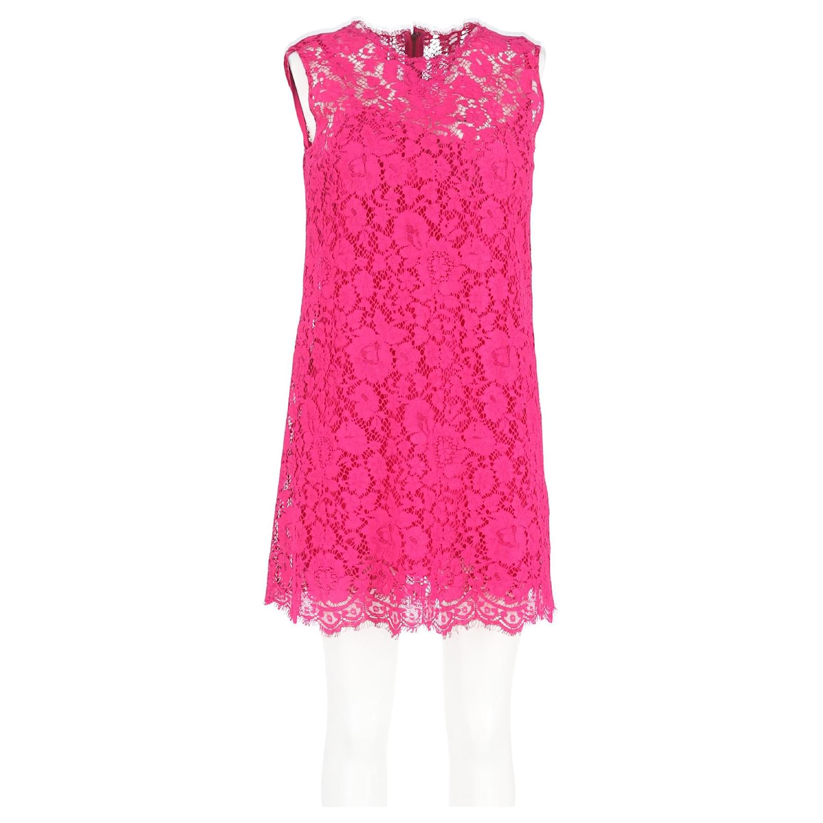 Autre Marque Dolce & Gabbana Lace Pattern Mini Dress in Pink Cotton Brown