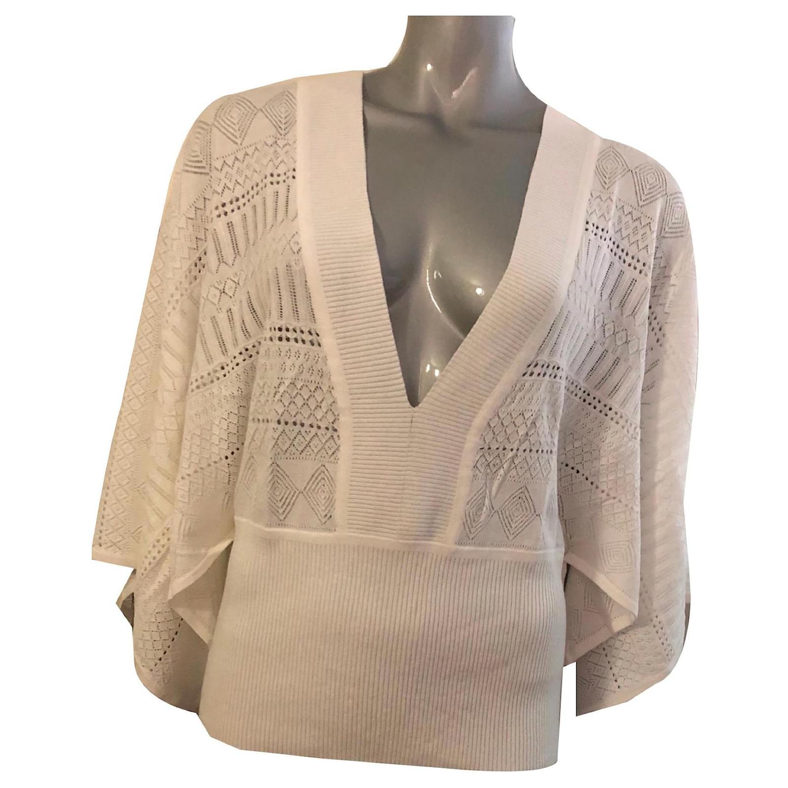 Suberbe Escada Sport white sweater with large neckline flared sleeves TL 40/42FR length 60cm 82% viscose 18% polyamide can be worn alone or with a little top under