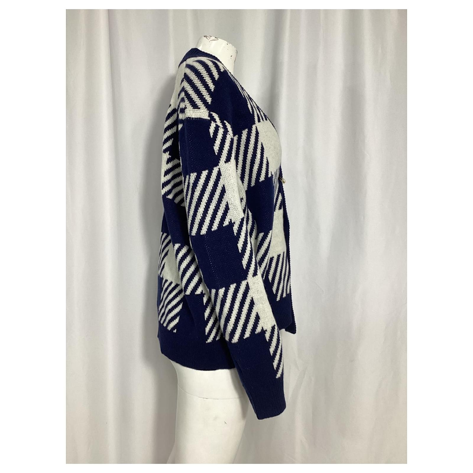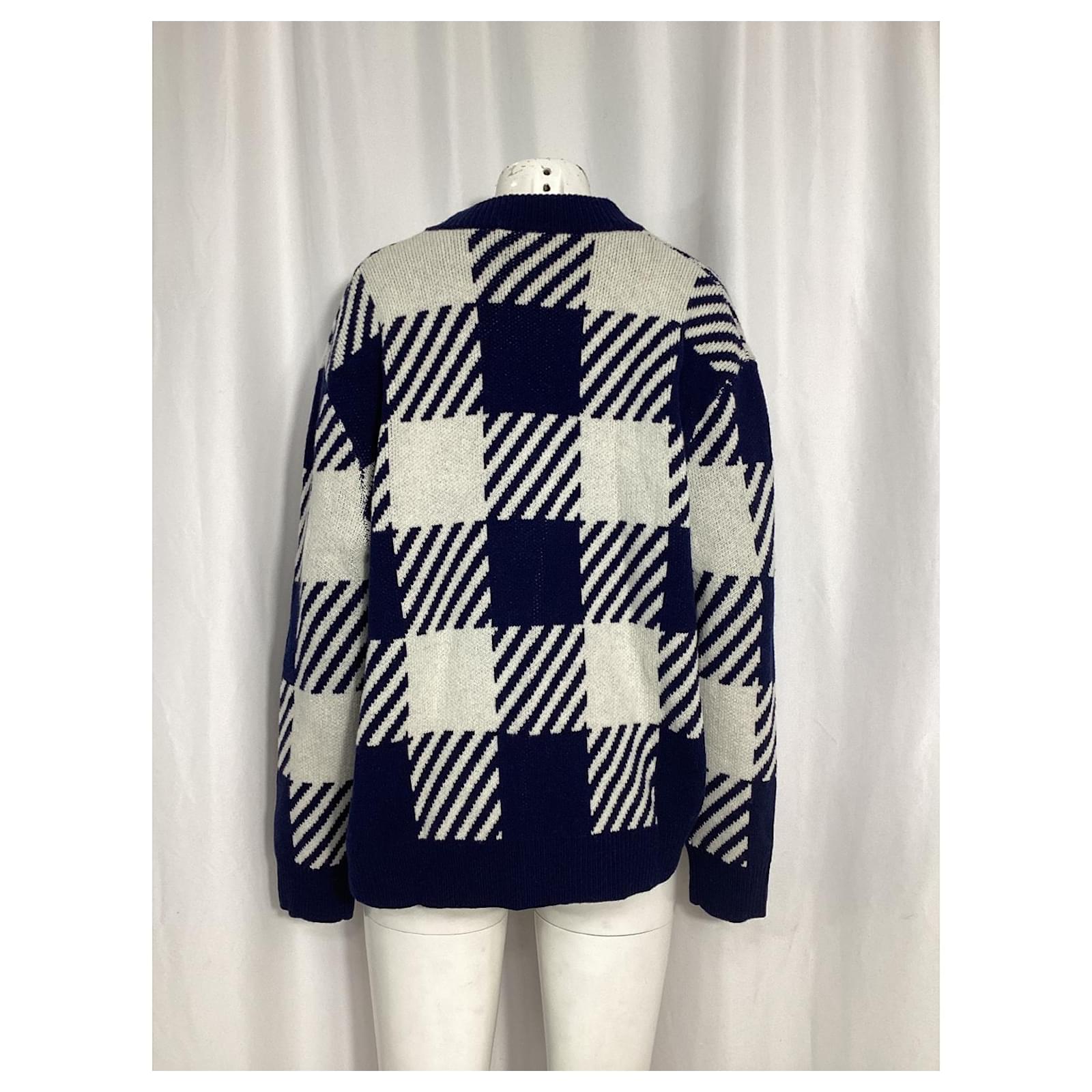 Mother of Pearl Blake Oversized Embellished Checked Cardigan in Blue Wool
