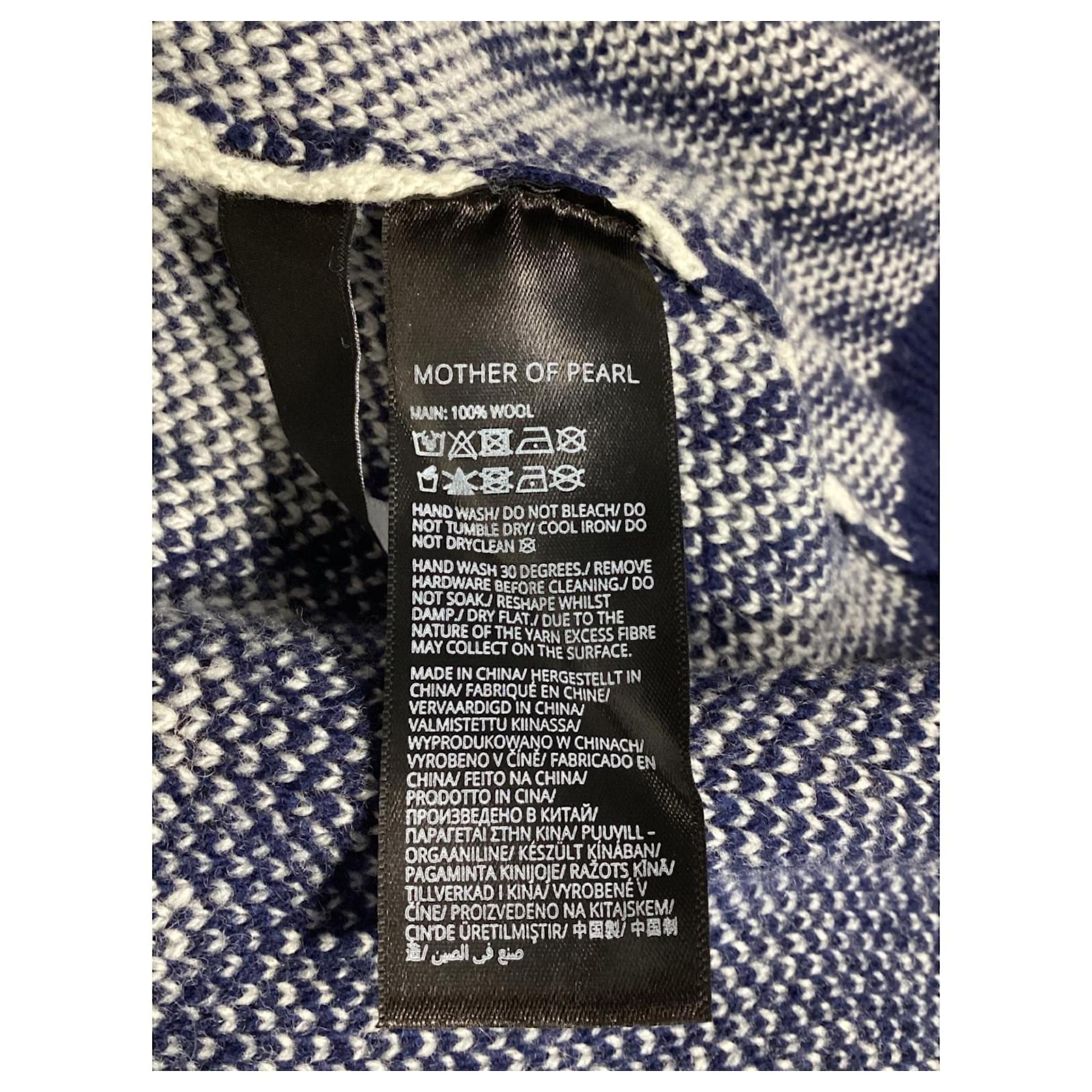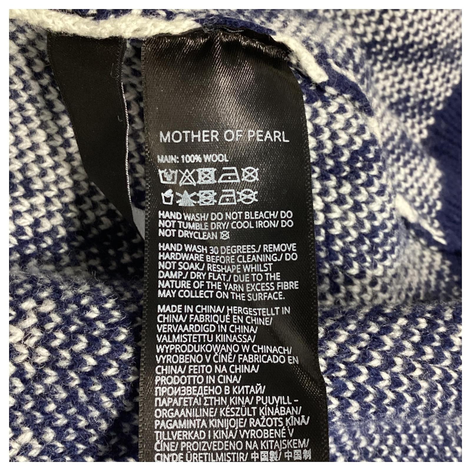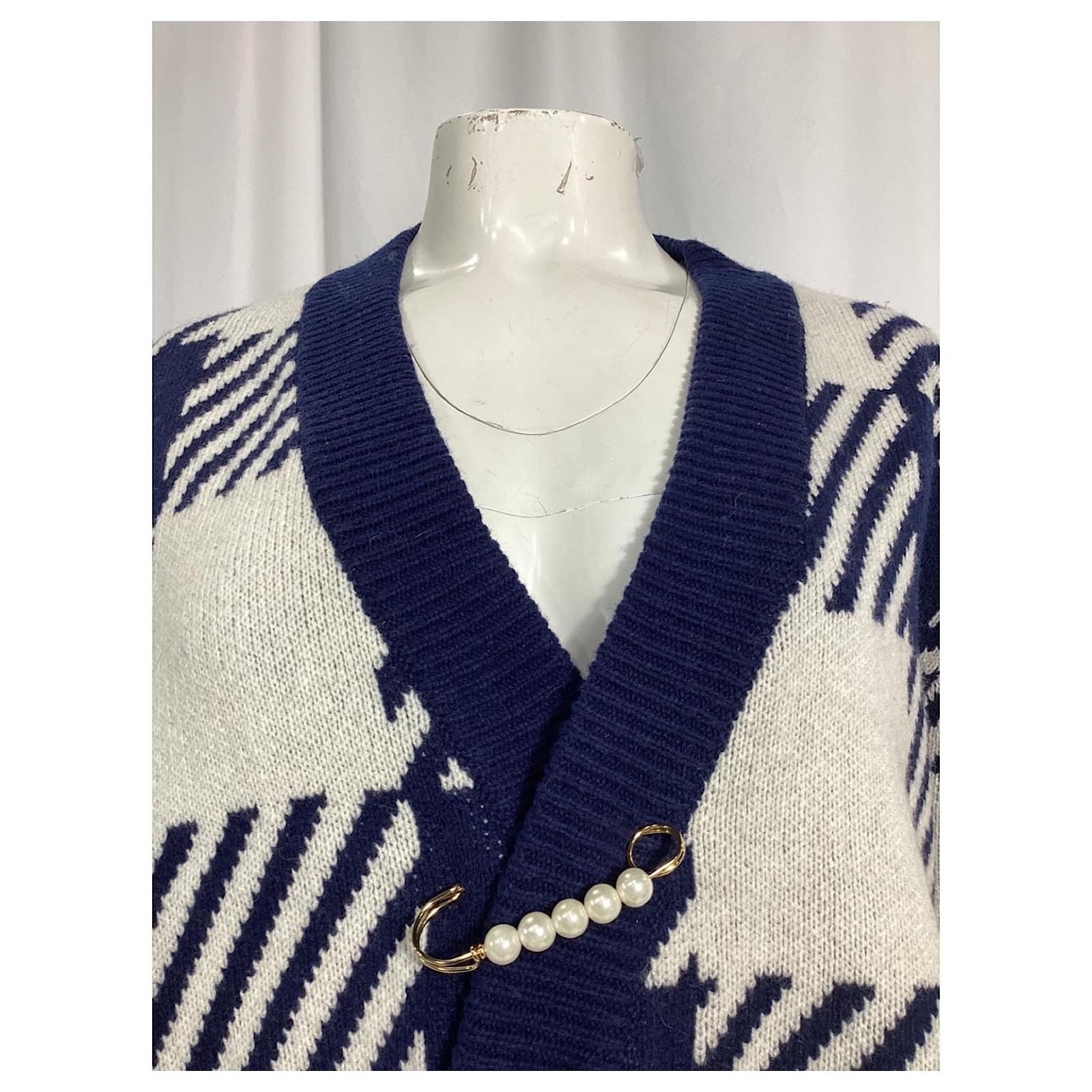 Mother of Pearl’s Blake cardigan redefines cozy with its oversized fit and bold checked pattern in navy and ivory. This luxurious piece is crafted from sustainably sourced wool, ensuring a warm and ethical option for your wardrobe. The standout feature is the signature faux pearl-studded safety pin, adding a touch of sophisticated embellishment to the classic design. This cardigan not only promises comfort but also aligns with the brand’s commitment to cruelty-free wool production, refusing to use mulesed wool.