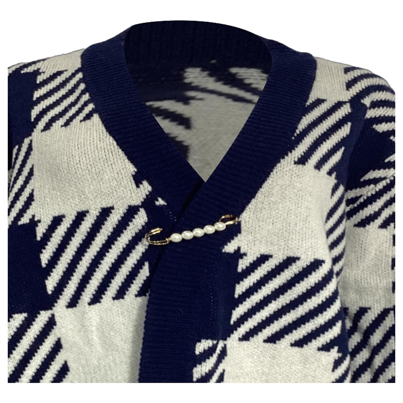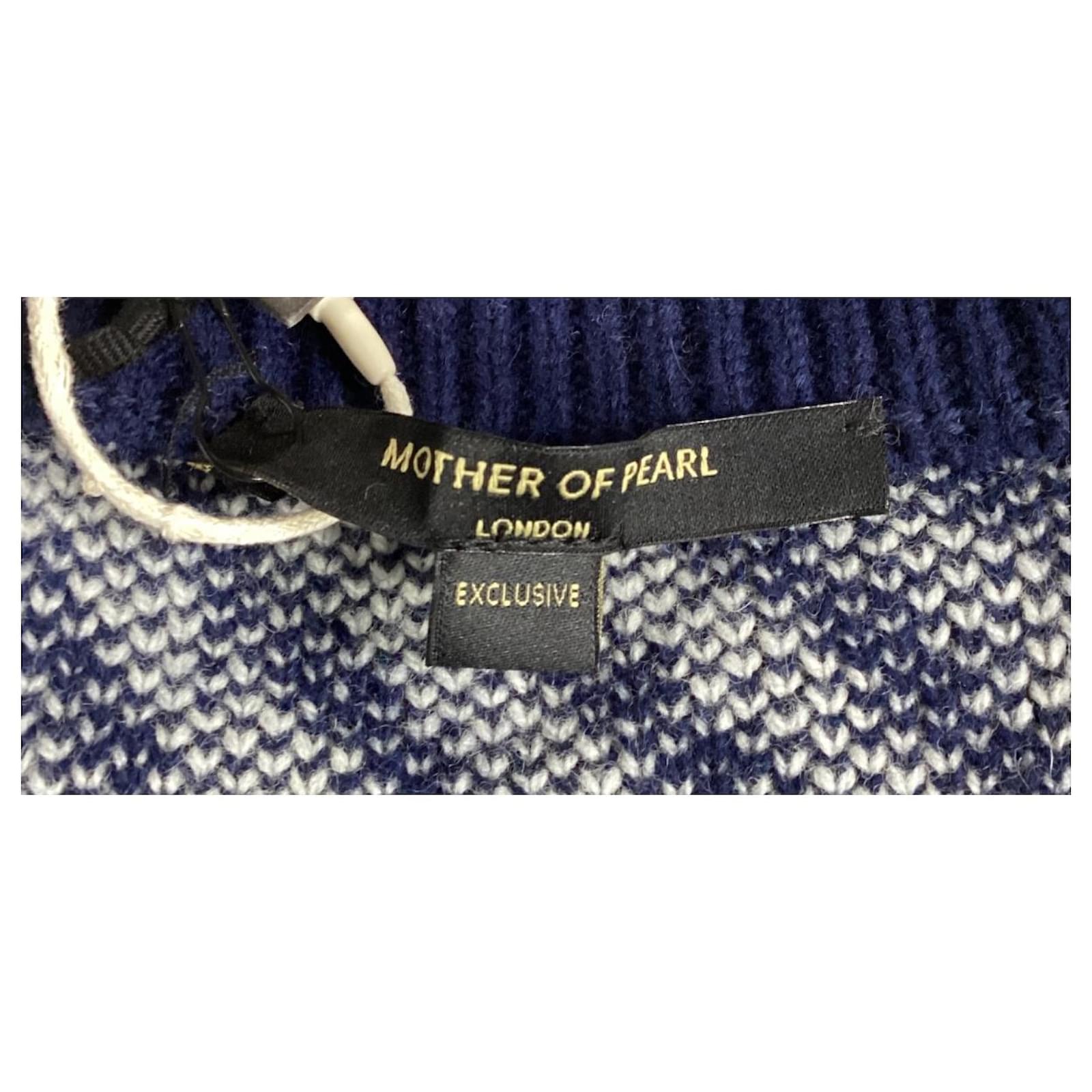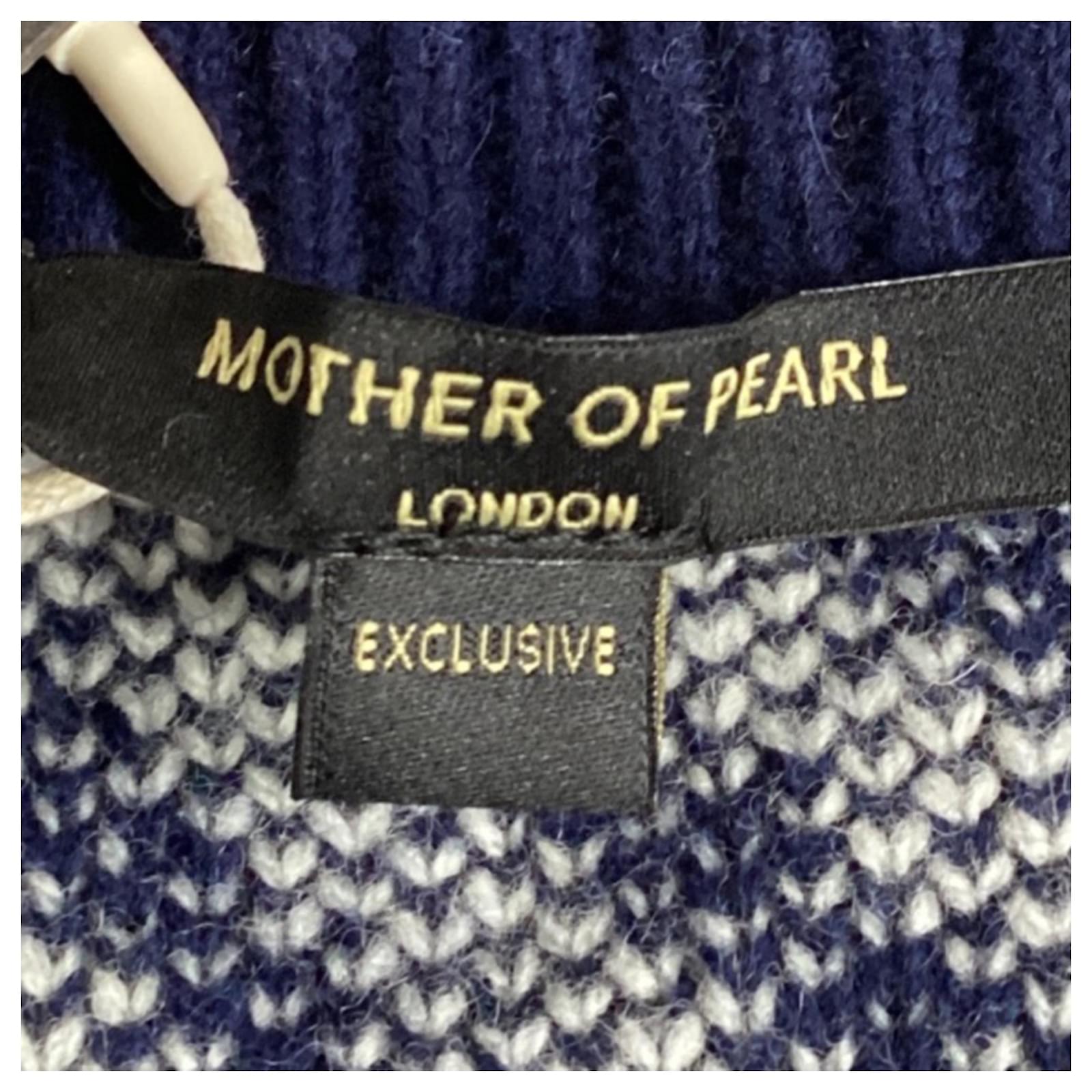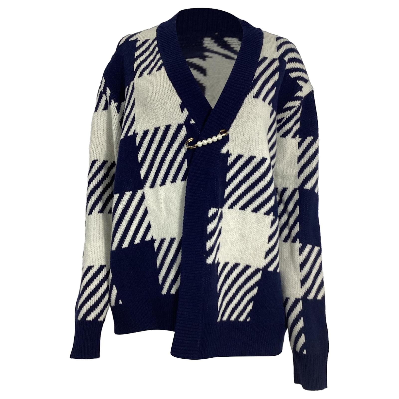 Mother of Pearl’s Blake cardigan redefines cozy with its oversized fit and bold checked pattern in navy and ivory. This luxurious piece is crafted from sustainably sourced wool, ensuring a warm and ethical option for your wardrobe. The standout feature is the signature faux pearl-studded safety pin, adding a touch of sophisticated embellishment to the classic design. This cardigan not only promises comfort but also aligns with the brand’s commitment to cruelty-free wool production, refusing to use mulesed wool.
