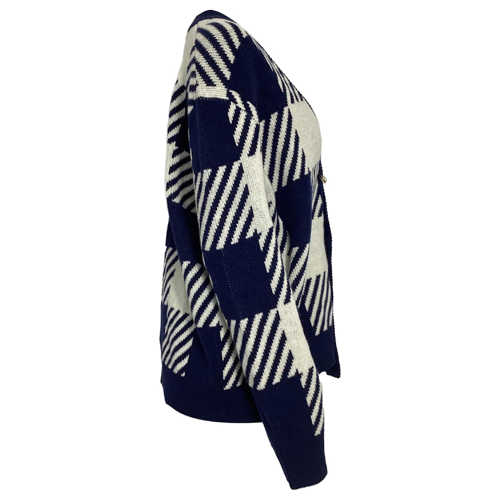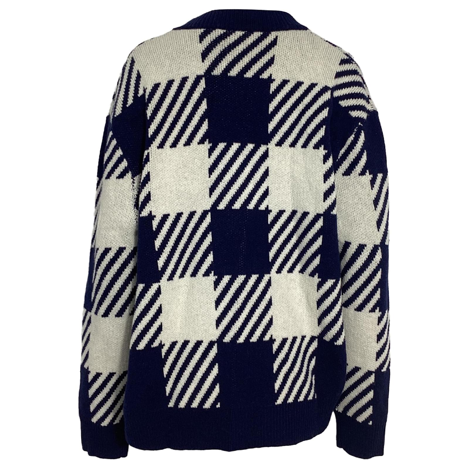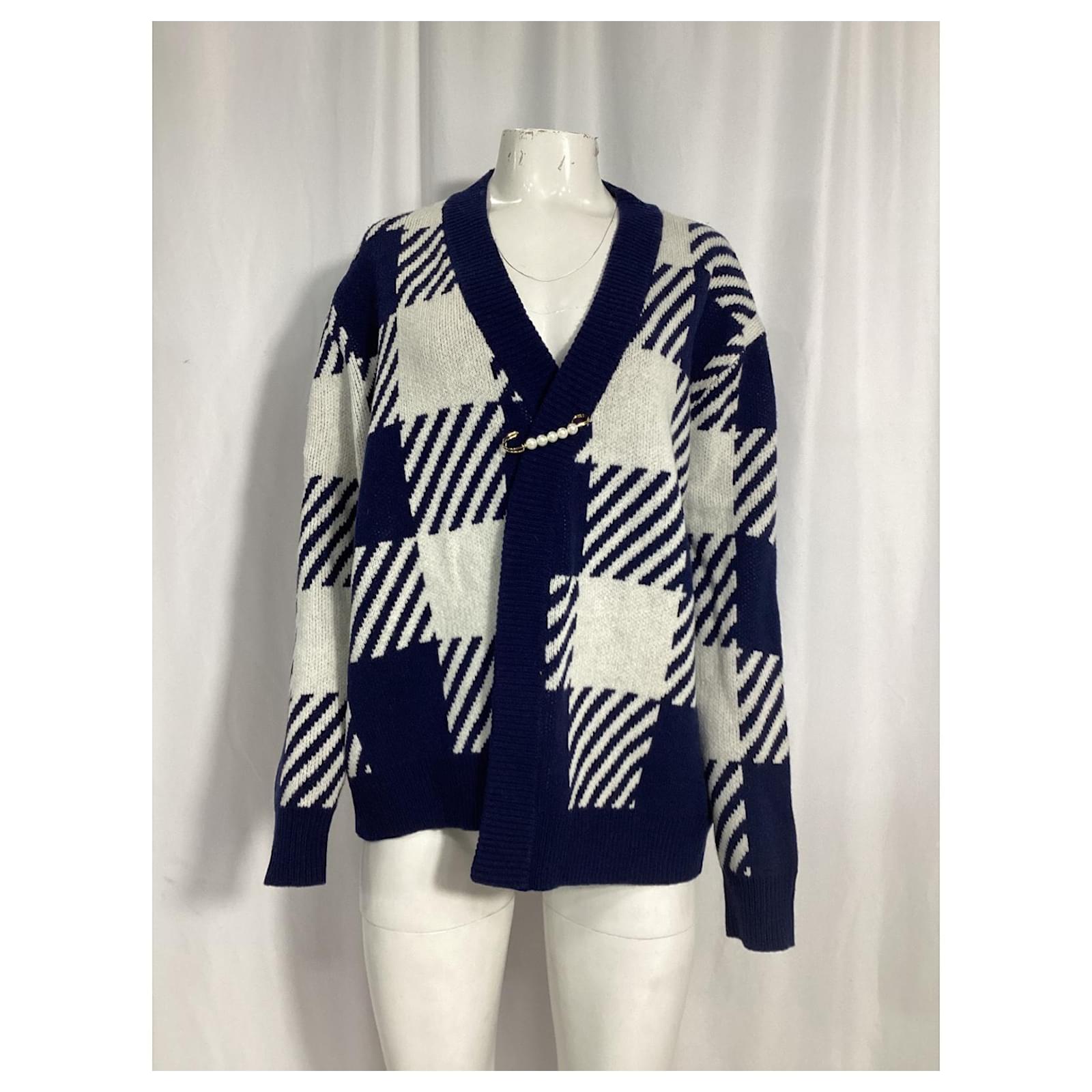Autre Marque Mother of Pearl Blake Oversized Embellished Checked Cardigan in Blue Wool