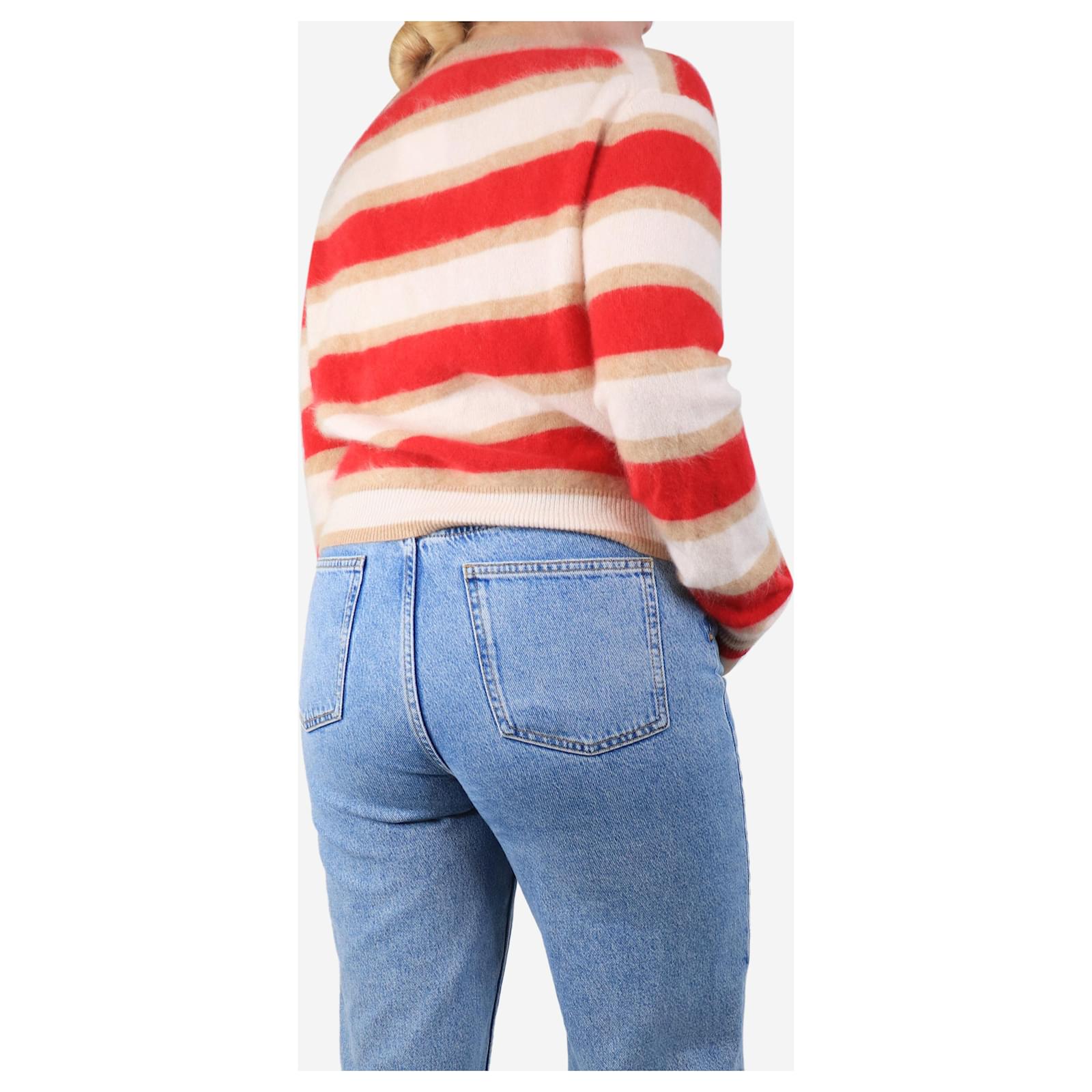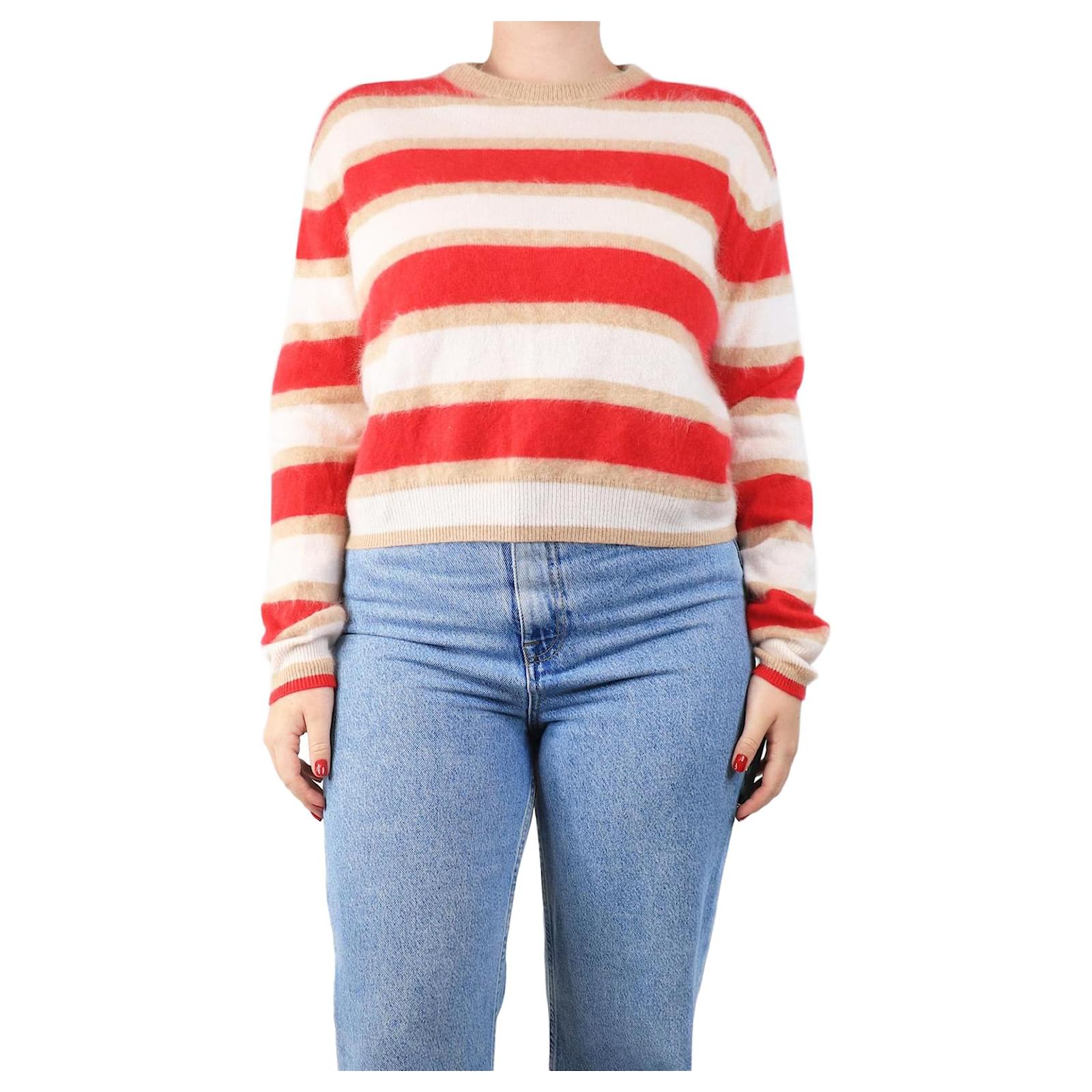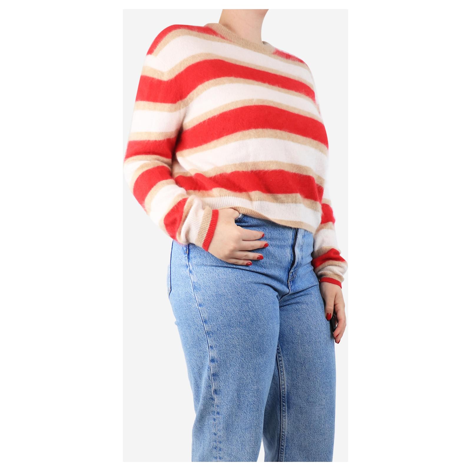 Autre Marque Red and cream striped cashmere jumper - size M