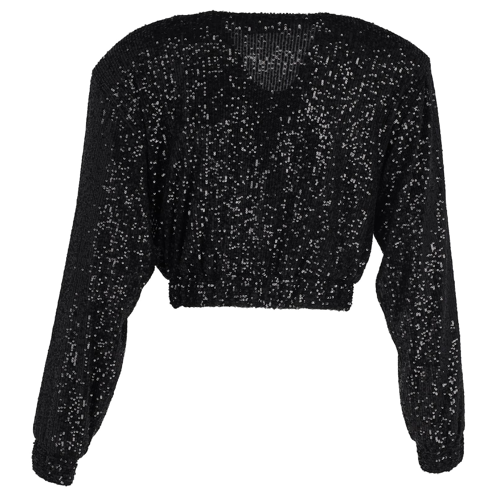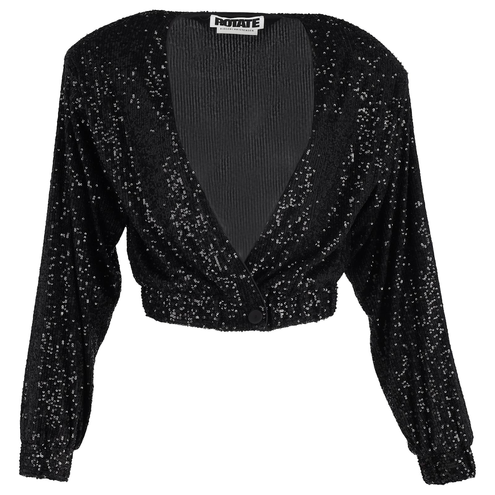 Rotate Birger Christensen Deep V-Neck Sequin-Detailed Jacket in Black Polyester