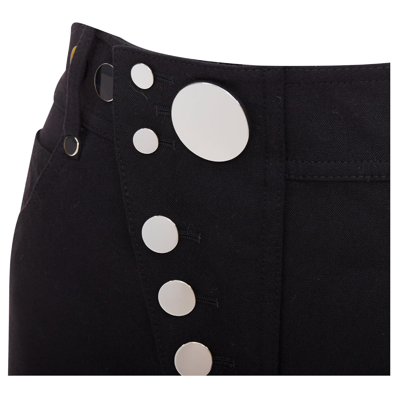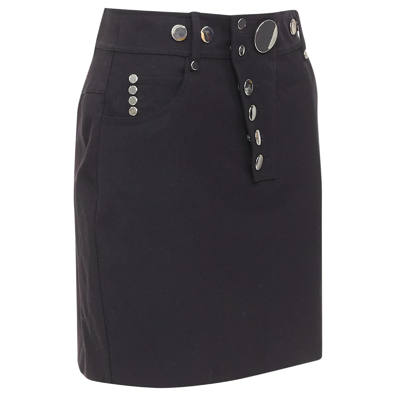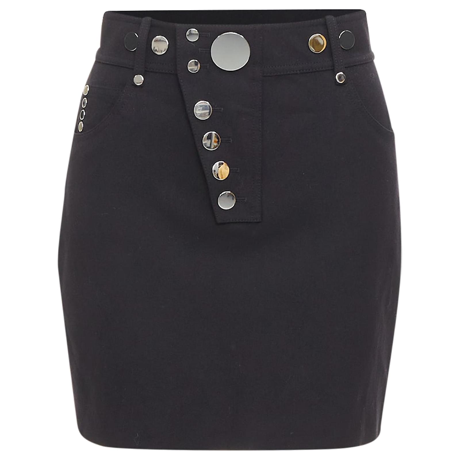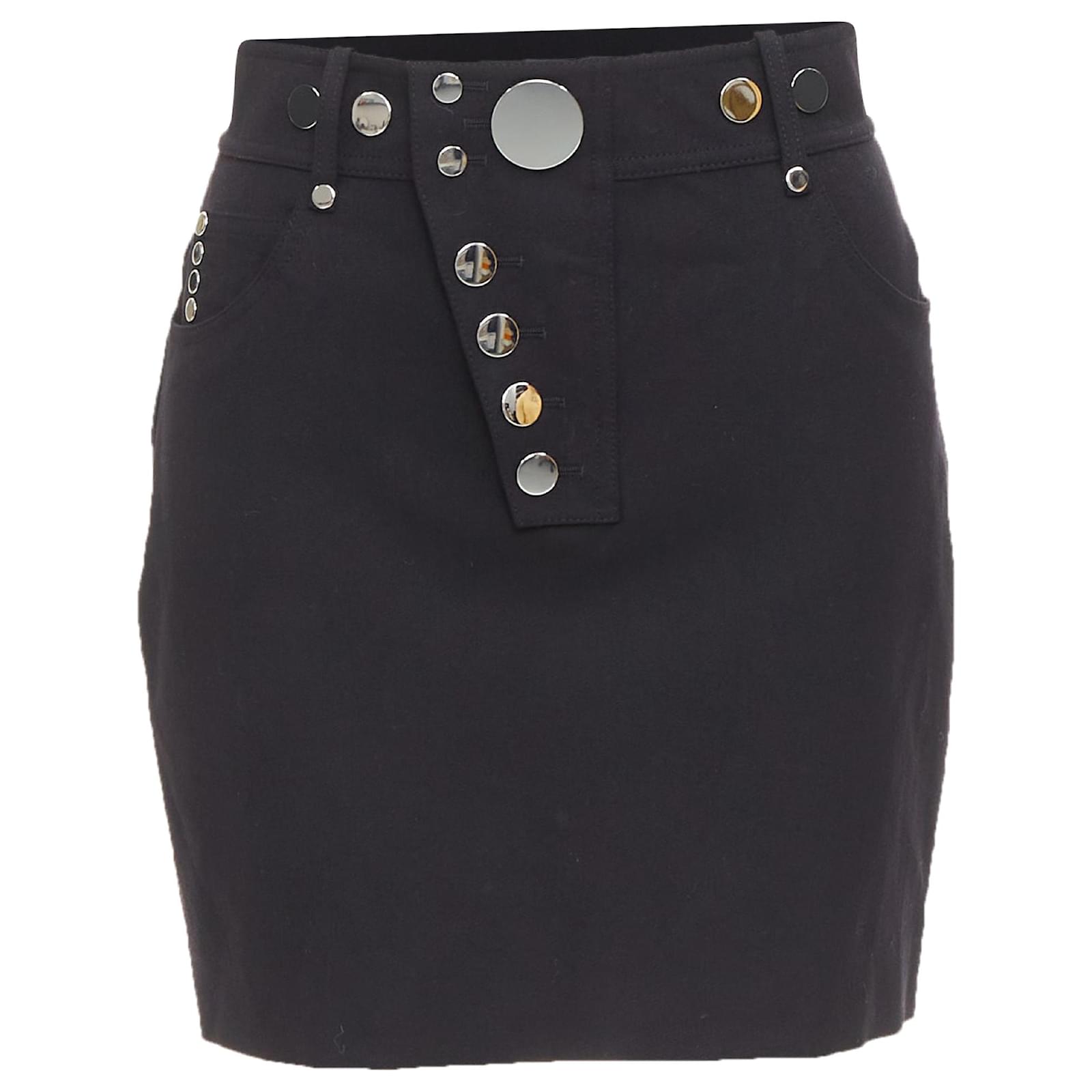 Autre Marque ALEXANDER WANG black virgin wool mirrored silver snap buttons skirt US2 S