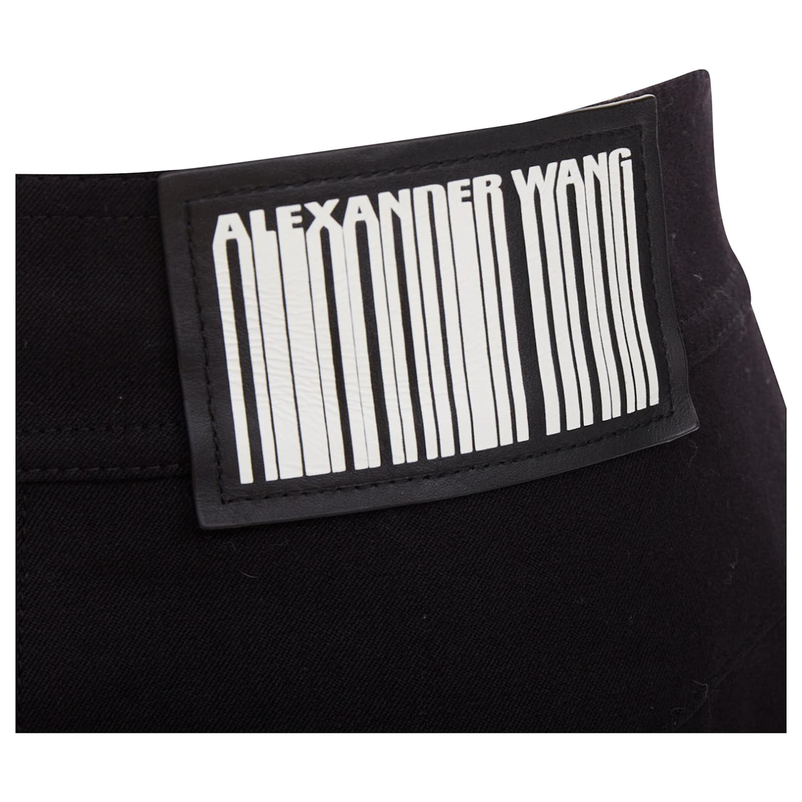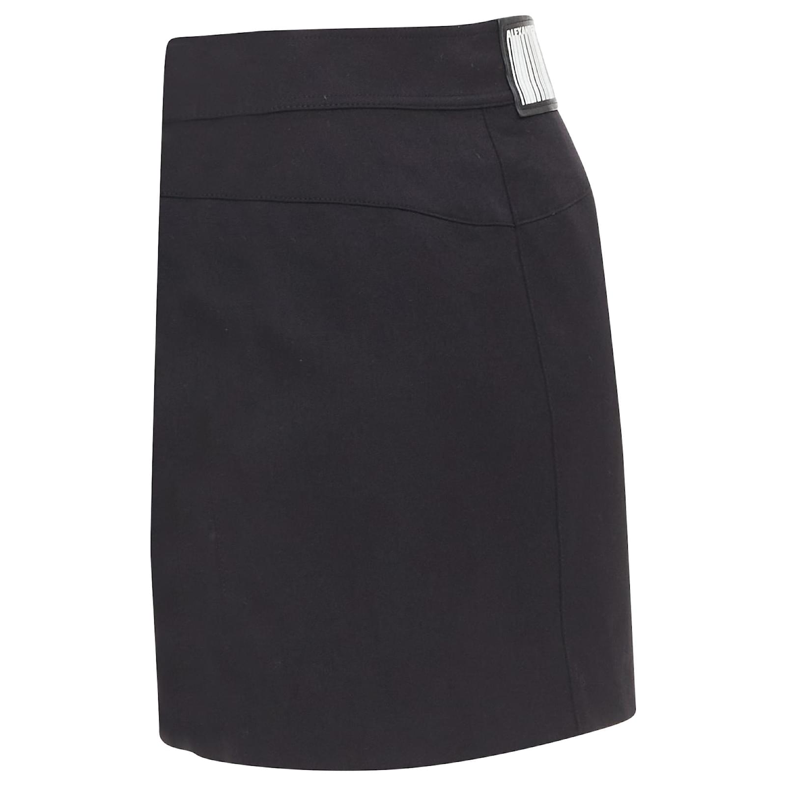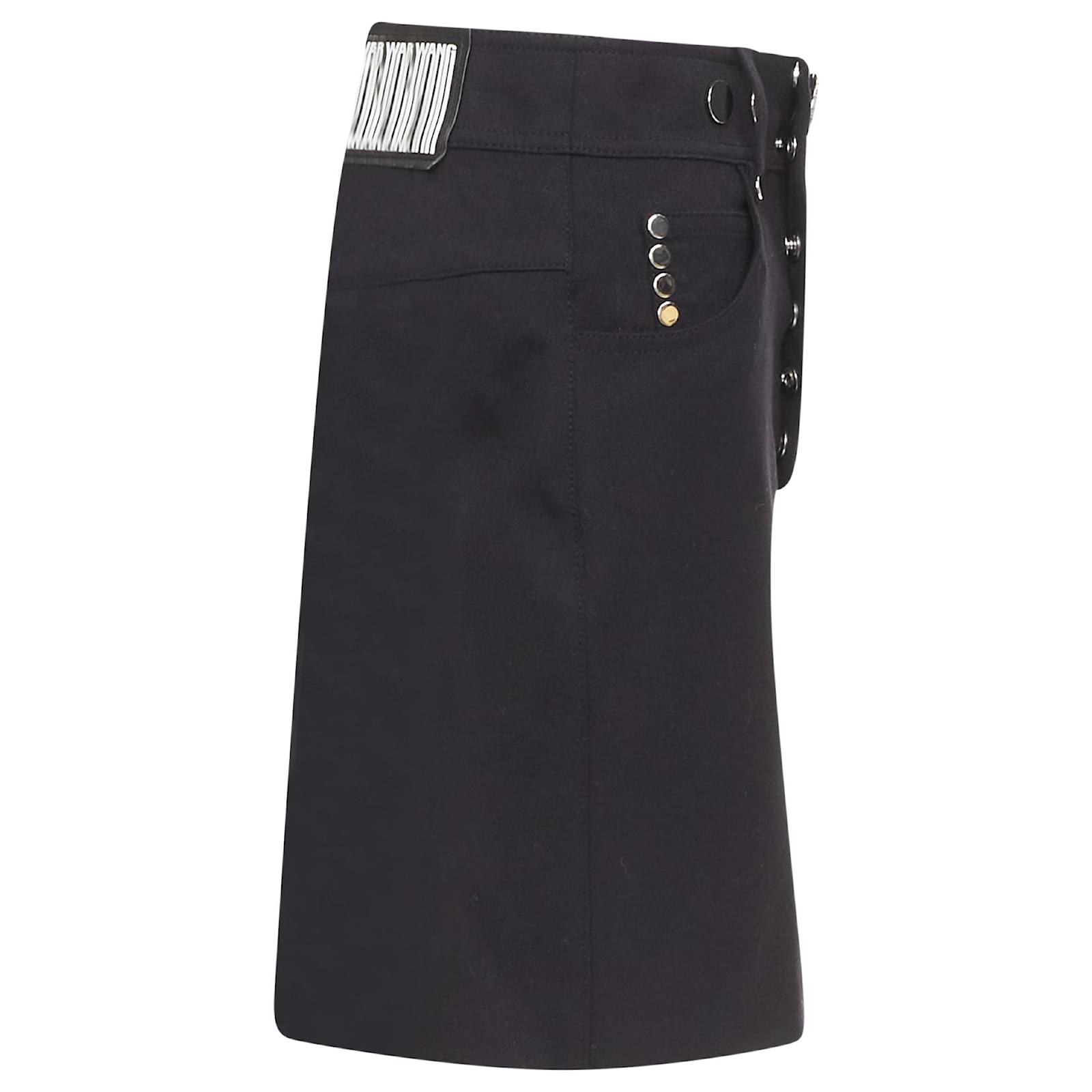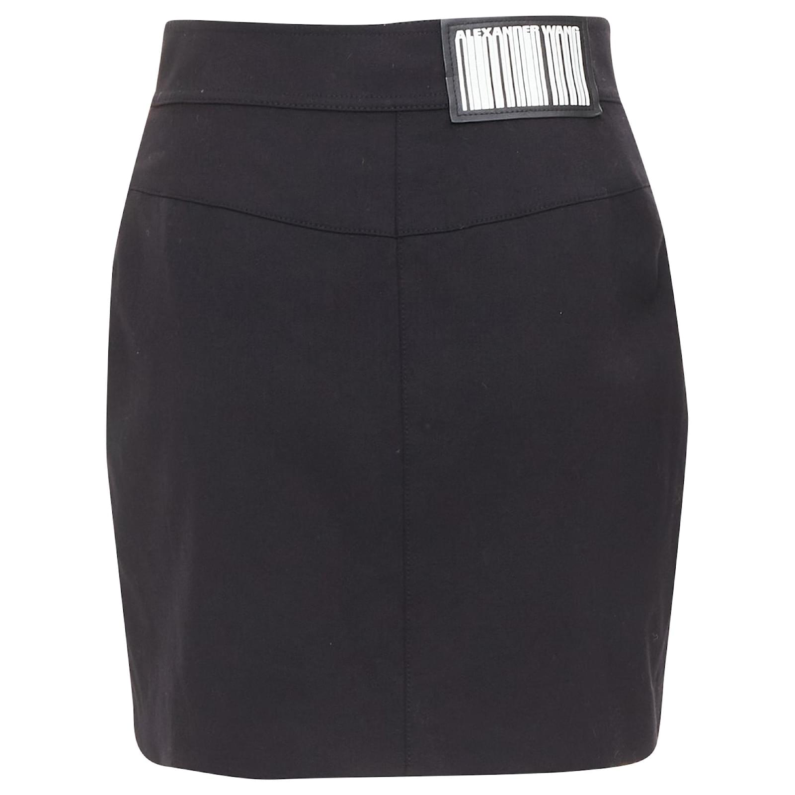 Autre Marque ALEXANDER WANG black virgin wool mirrored silver snap buttons skirt US2 S