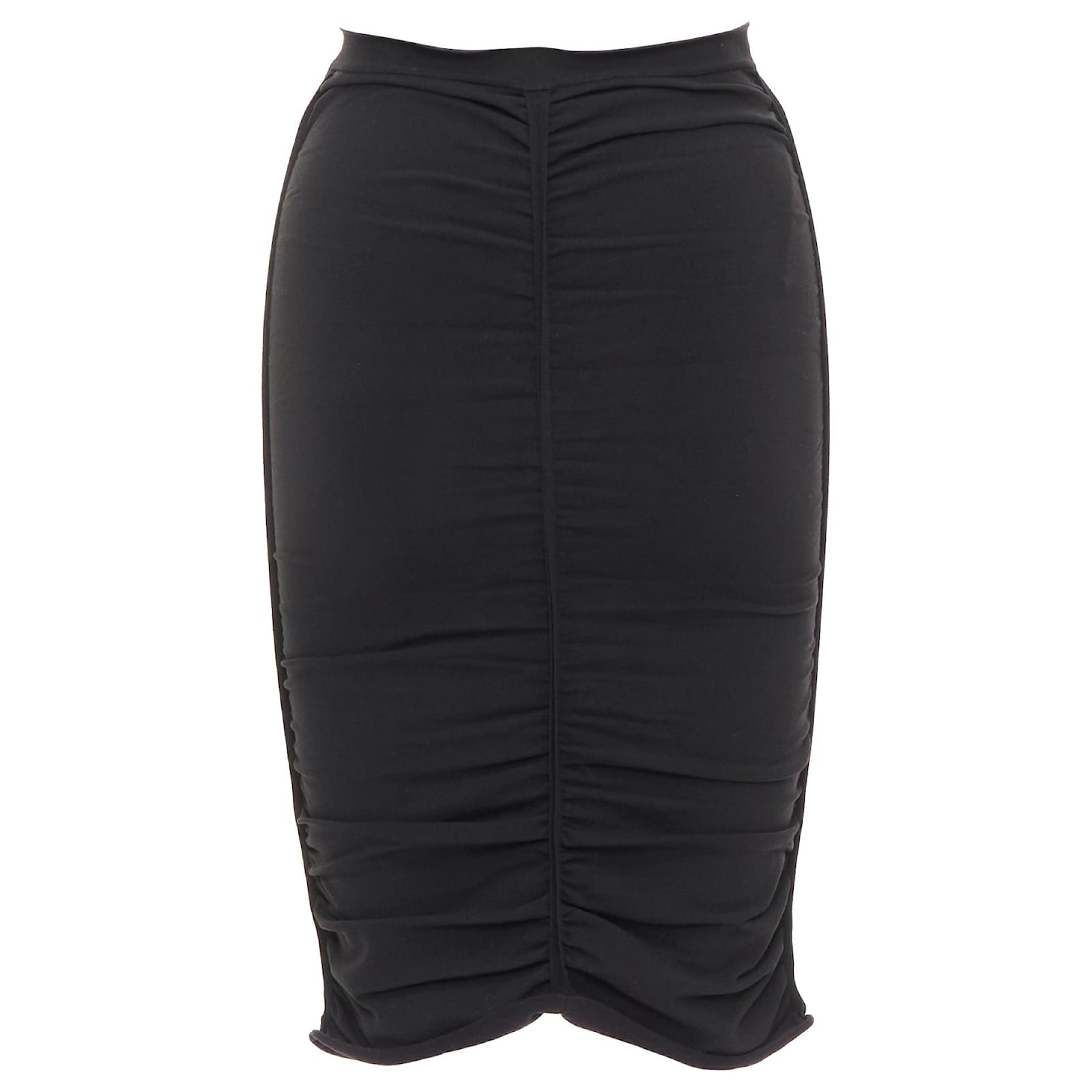 ALEXANDER WANG black ruched gathered high waisted pencil skirt SReference: CC/A00443Brand: Alexander WangDesigner: Alexander WangMaterial: Polyamide, BlendColor: BlackPattern: SolidClosure: ElasticatedMade in: ChinaCONDITION:Condition: Excellent, this item was pre-owned and is in excellent condition. Comes with: Style code present (Generic) SIZINGDesigner size: SSize reference: US2-4 / UK8 / IT40 / FR36 / XS-SMEASUREMENTS: Waist: 30cm / 11.7"Hip: 36cm / 14"Length: 44cm / 17.2"
