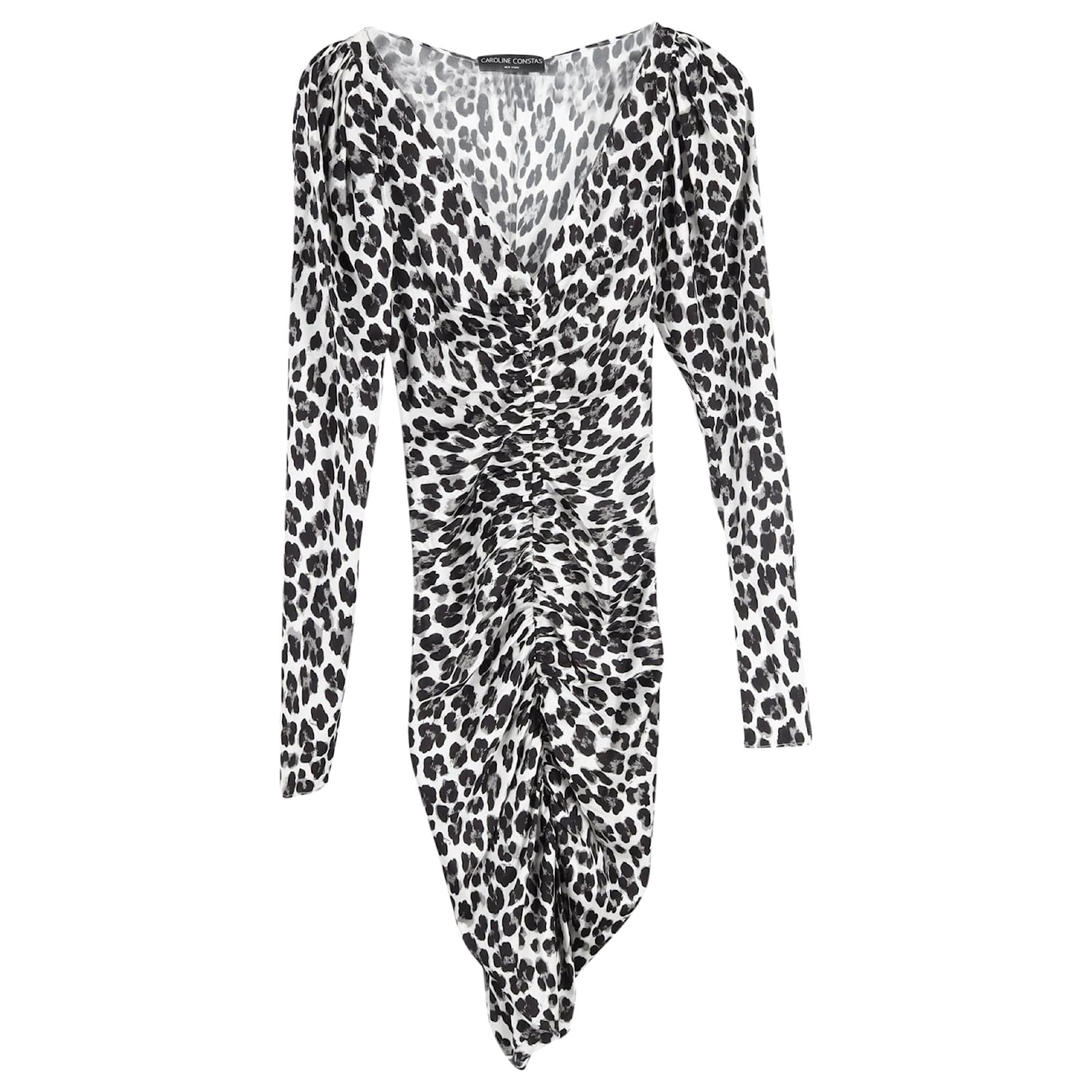 Indulge in the allure of the Caroline Constas Colette Mini Dress, a captivating ensemble that effortlessly combines wild glamour with sophisticated allure. Crafted from luxurious silk with a hint of spandex, this dress boasts a graceful V neckline and elegant long sleeves, offering a graceful silhouette that exudes timeless charm. The body-conscious silhouette flatters the figure, while the hem falling below the knee adds a touch of refined elegance. Imported with the utmost attention to detail, this dress is a testament to the unparalleled artistry and luxury craftsmanship synonymous with the Caroline Constas brand. Embrace an air of modern elegance and unleash your wild side with this statement animal print mini dress.