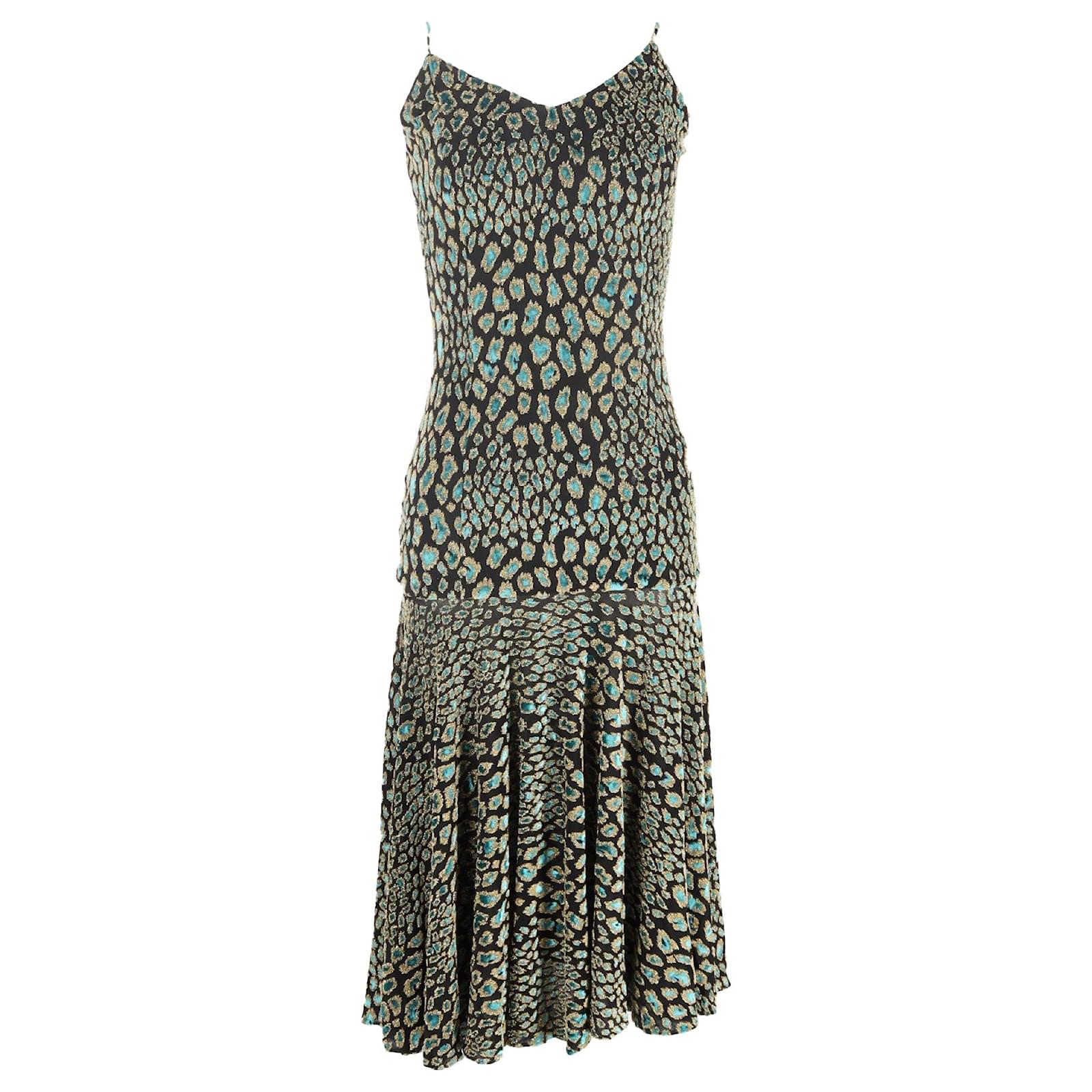 Channel sleek, modern glamour with this Caroline Constas Midi Slip Dress in a striking black and metallic animal print. Crafted from lightweight viscose with delicate embroidered accents, it features a flattering V-neckline, slim fit, and a concealed side zip for a seamless silhouette. The midi length adds refinement, while the shimmering print keeps things bold and eye-catching — perfect for evening events or upscale dinners.