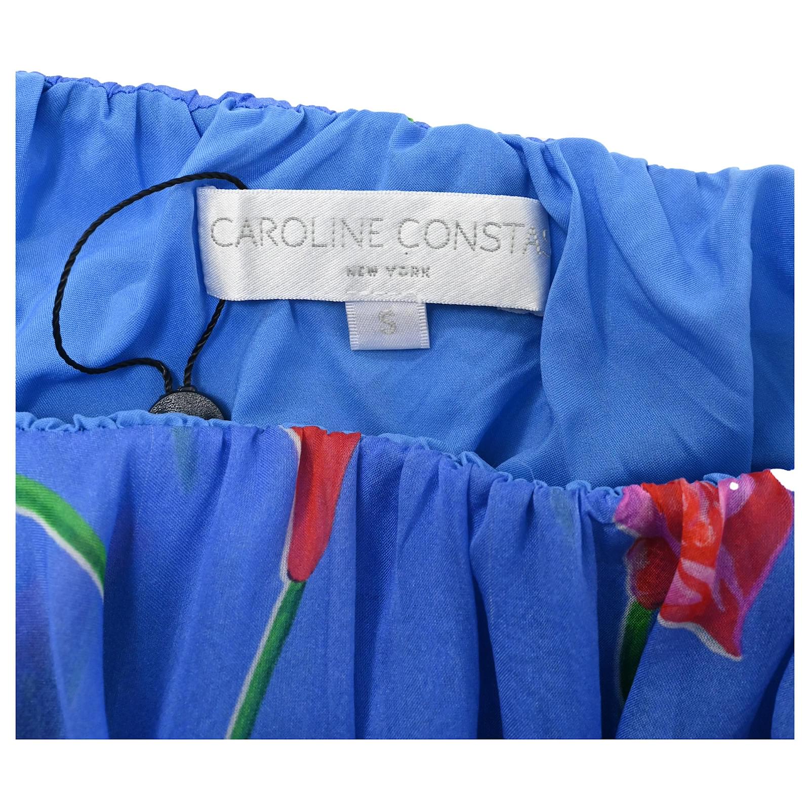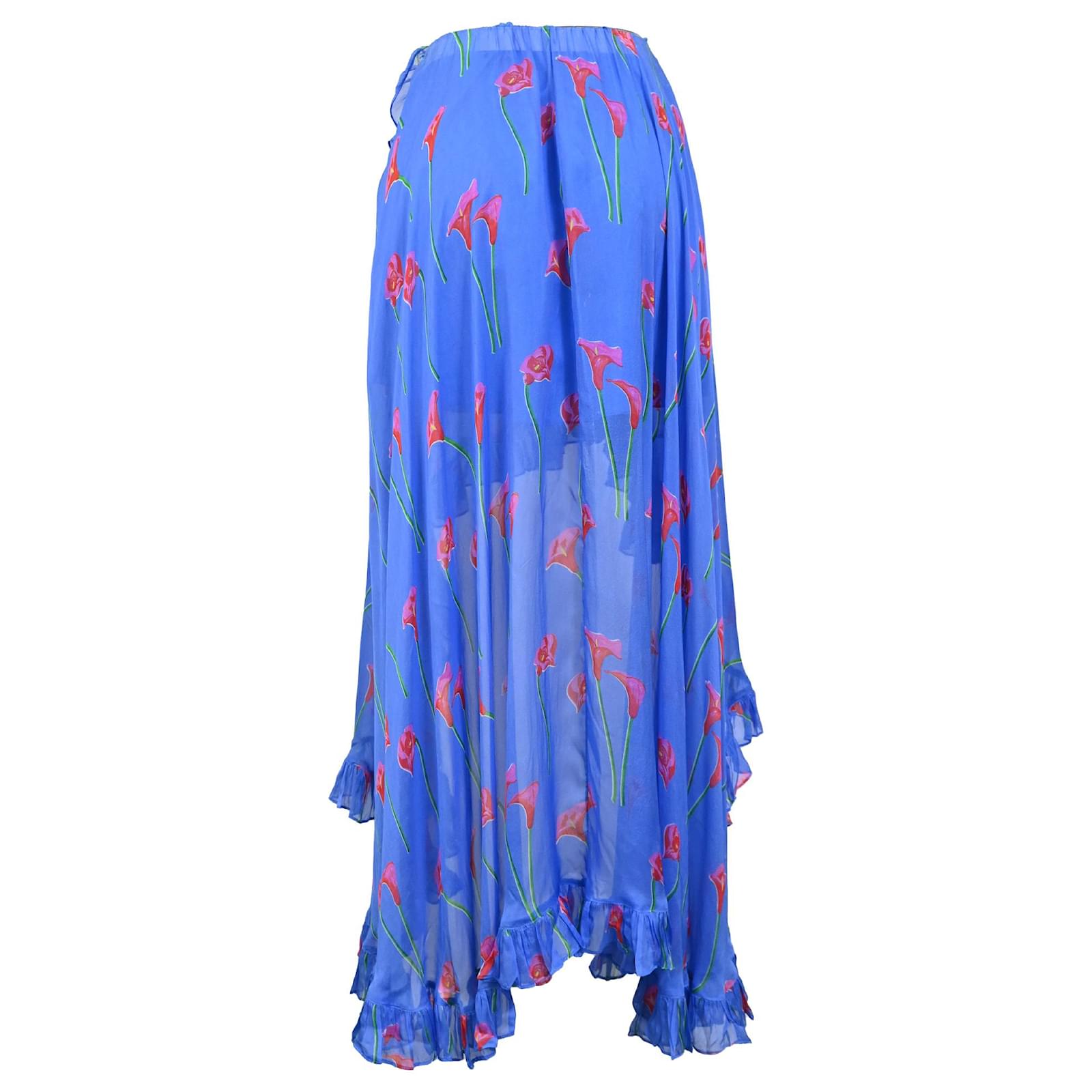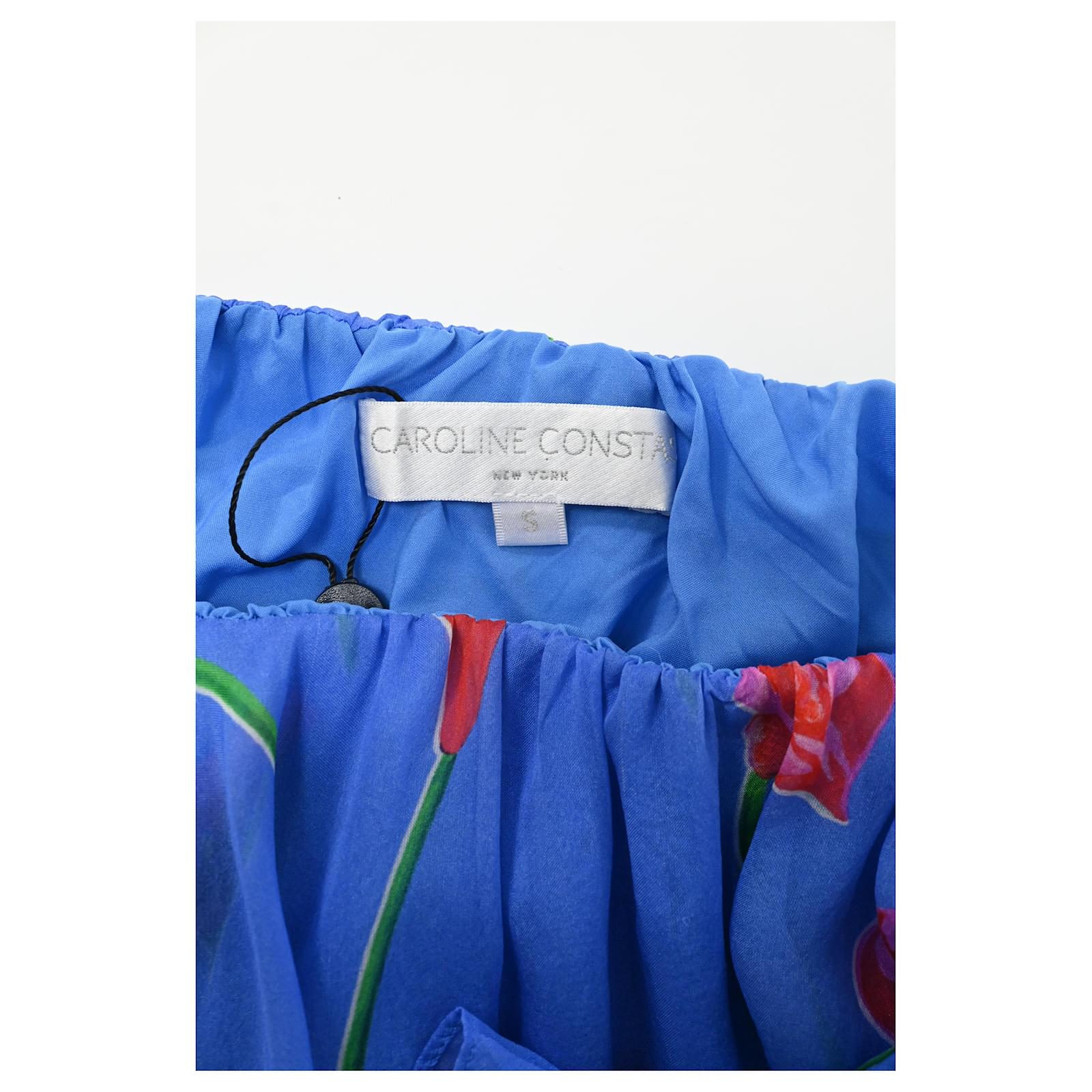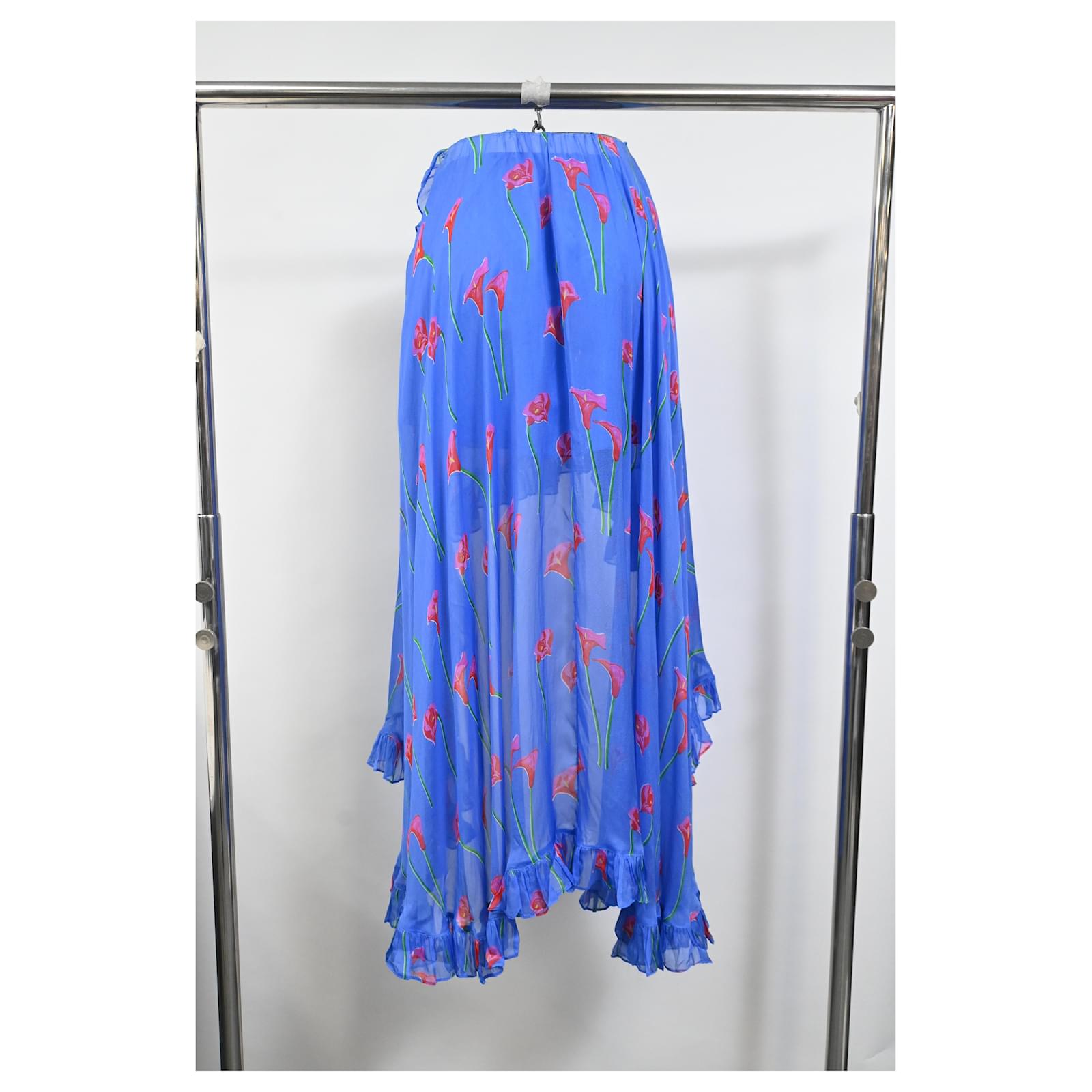 Autre Marque Caroline Constas Printed Ruffled Asymmetric Hem Adelle Midi Skirt in Blue Silk