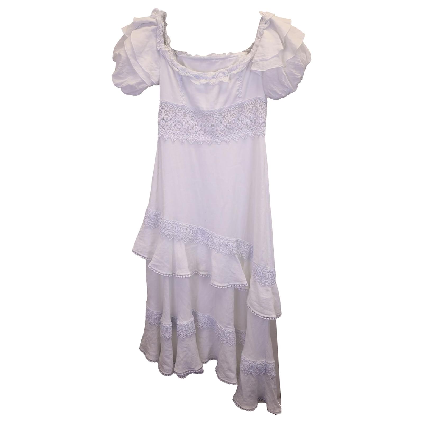 Autre Marque Charo Ruiz Carmen Asymmetric Off-the-Shoulder Midi Dress in White Cotton Cream