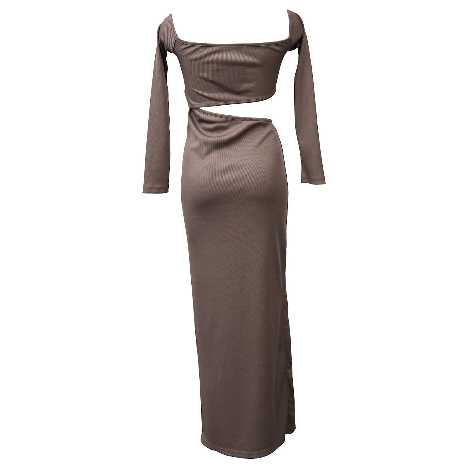 Autre Marque Christopher Esber Distort Quartz Off-Shoulder Maxi Dress in Brown Polyester Red